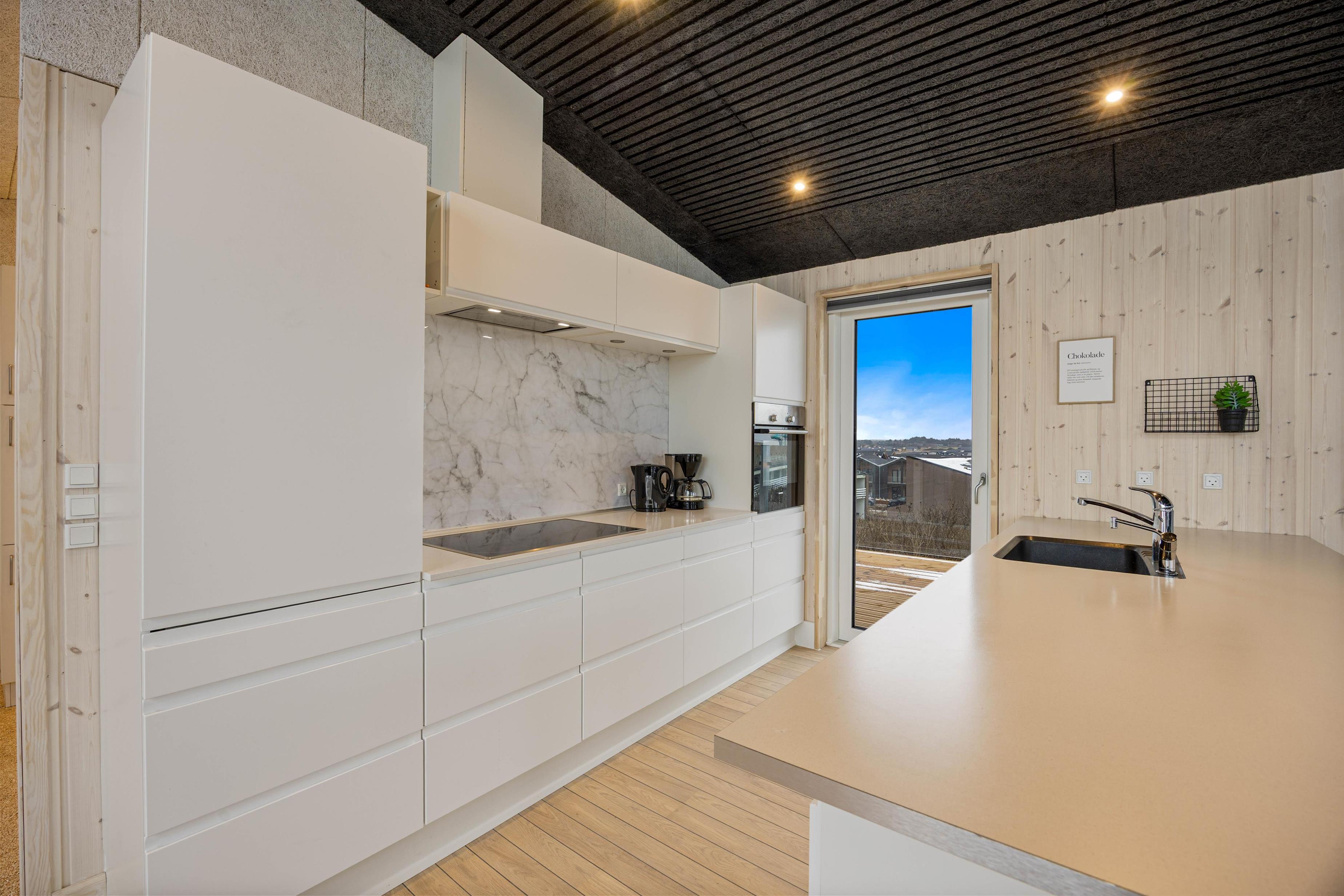 Det moderne og funktionelle køkken er veludstyret og opfylder alle behov. Her er god plads til, at I kan samles om madlavningen og hjælpe hinanden med at trylle lækre måltider frem. Når maden er nydt, klarer opvaskemaskinen resten, så I kan bruge tiden på afslapning og samvær.
