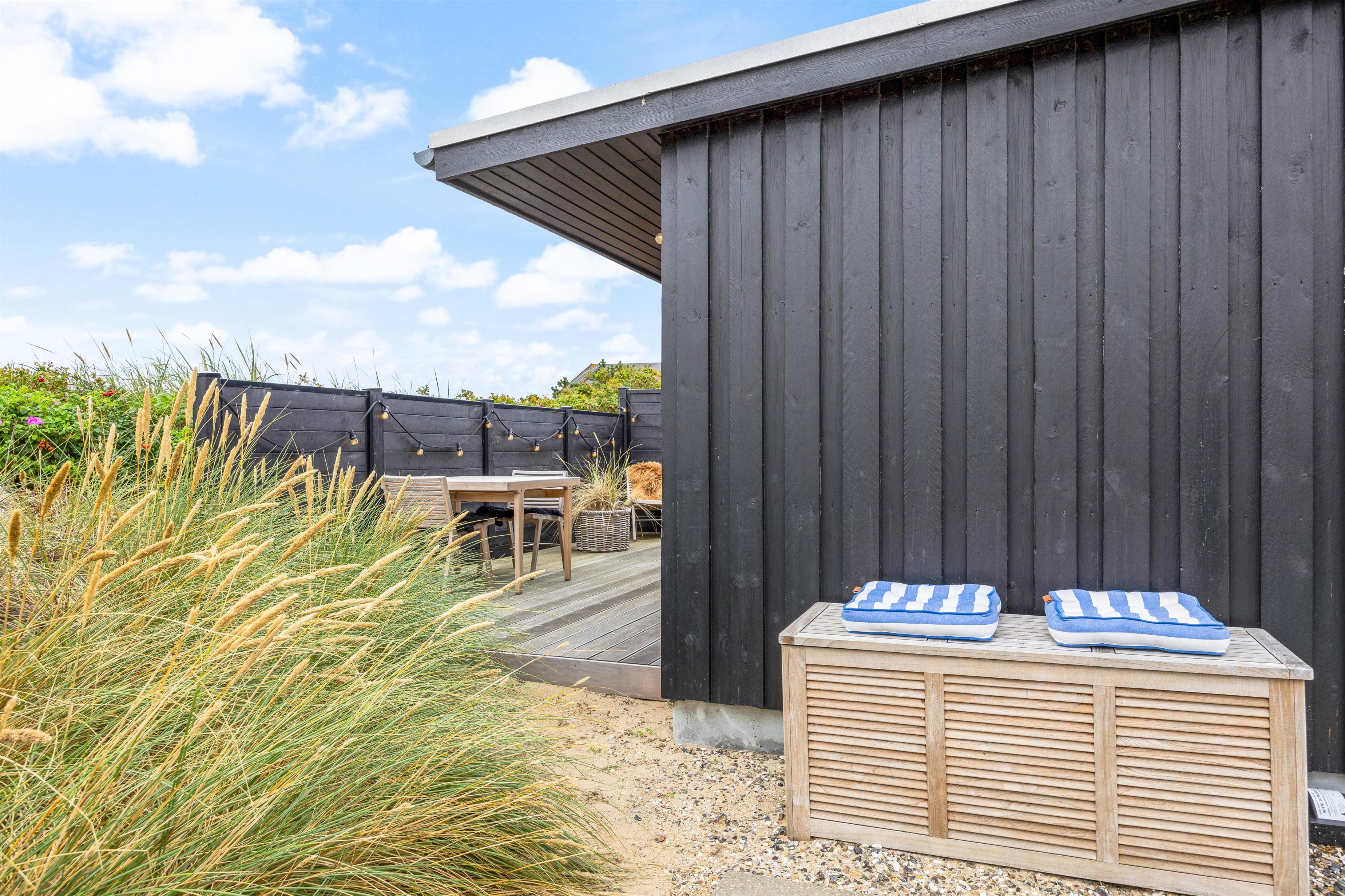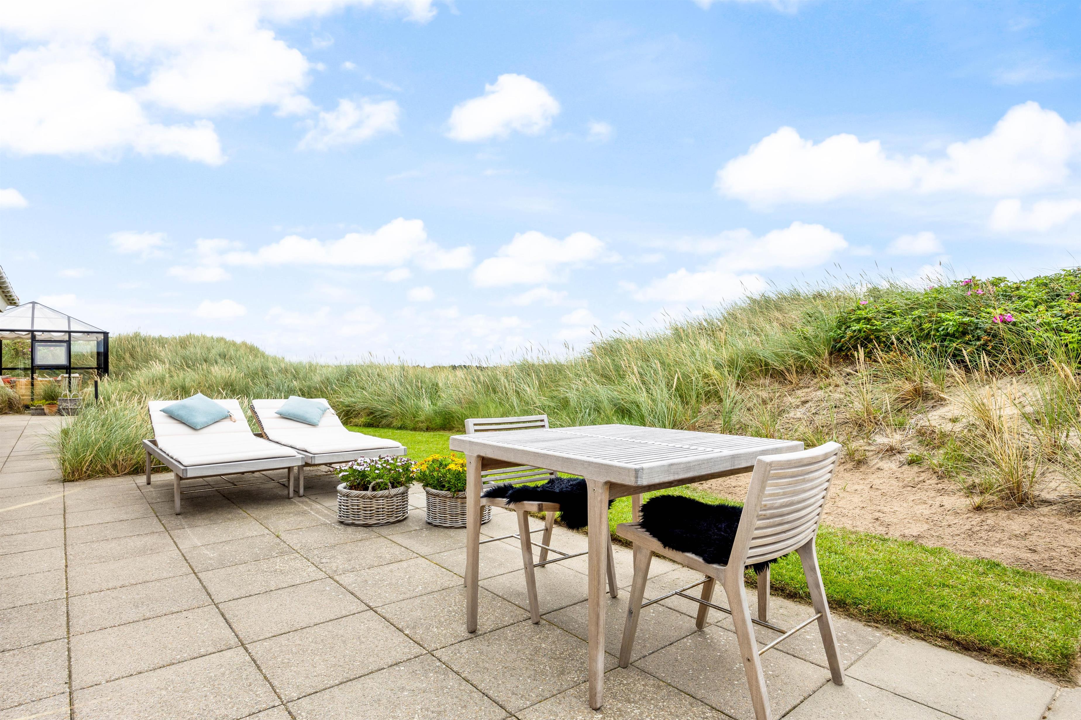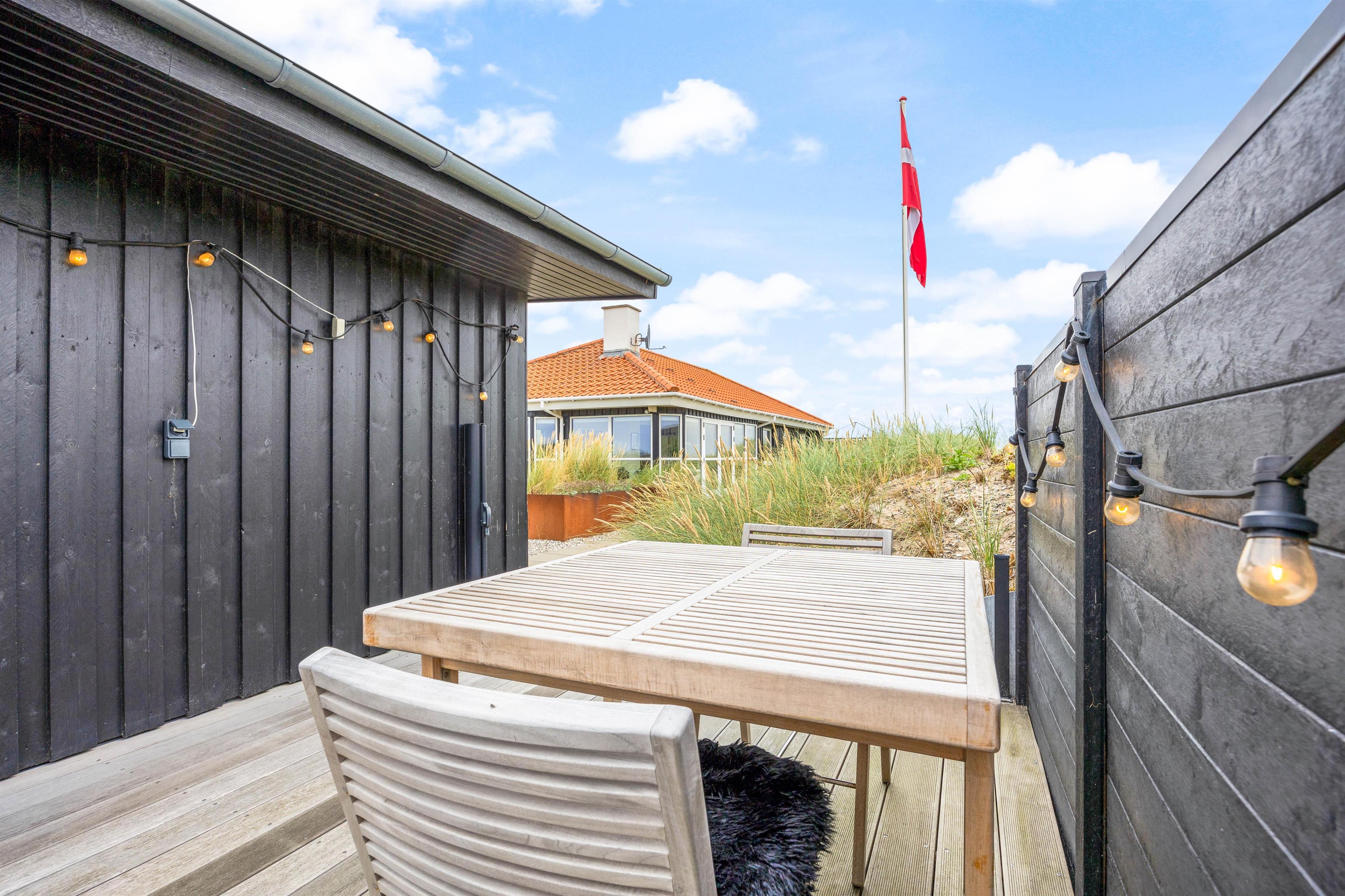 Foruden at have en lækker terrasse, hvor I kan nyde de dejlige solskinsdage på, er der også ganske kort vej til stranden, som I hurtigt kan nå til fods. Her kan I dyppe tæerne i vandkanten på de varme dage, hvor børnene kan få lov at lege. Stranden har sin charme, selv på de blæsende dage, hvor I kan betragte de mægtige bølger boltre jer.