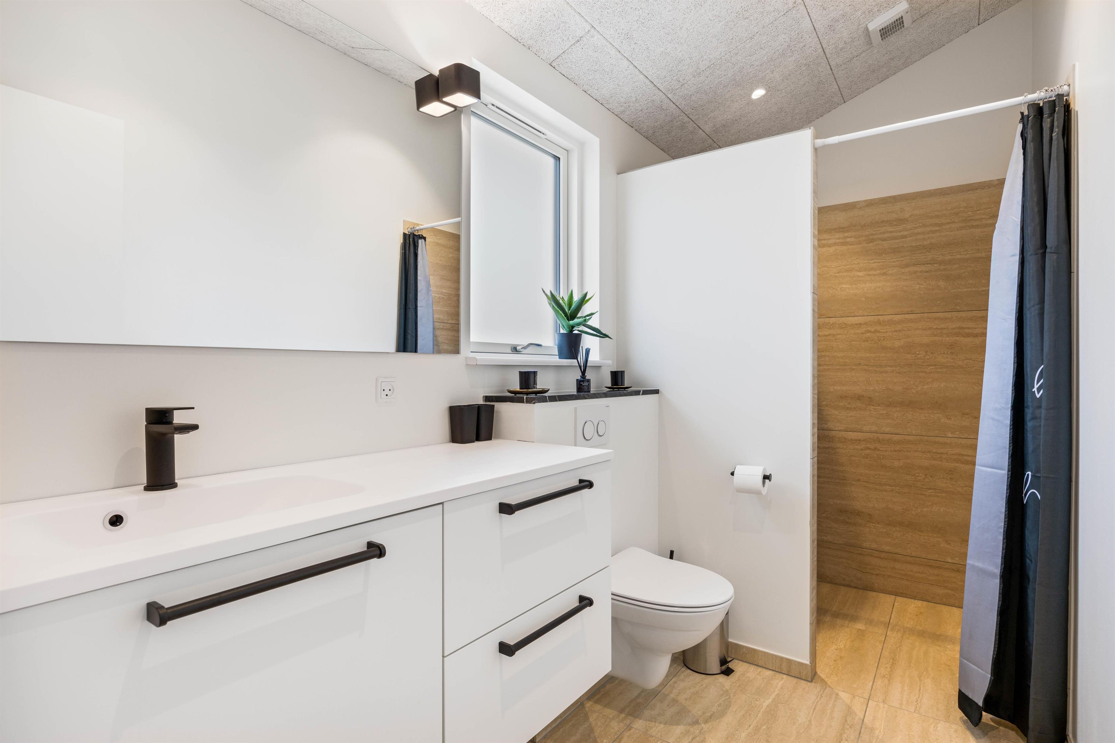 Sommerhuset indeholder to dejlige badeværelser, hvilket er en ekstra bekvemmelighed, når I er flere gæster. Med moderne faciliteter og elegant design vil badeværelserne tilføje et strejf af ekstra velvære og tilpashed til jeres ferieoplevelse. En vaskemaskine og tørretumbler er også tilgængelige i sommerhuset.