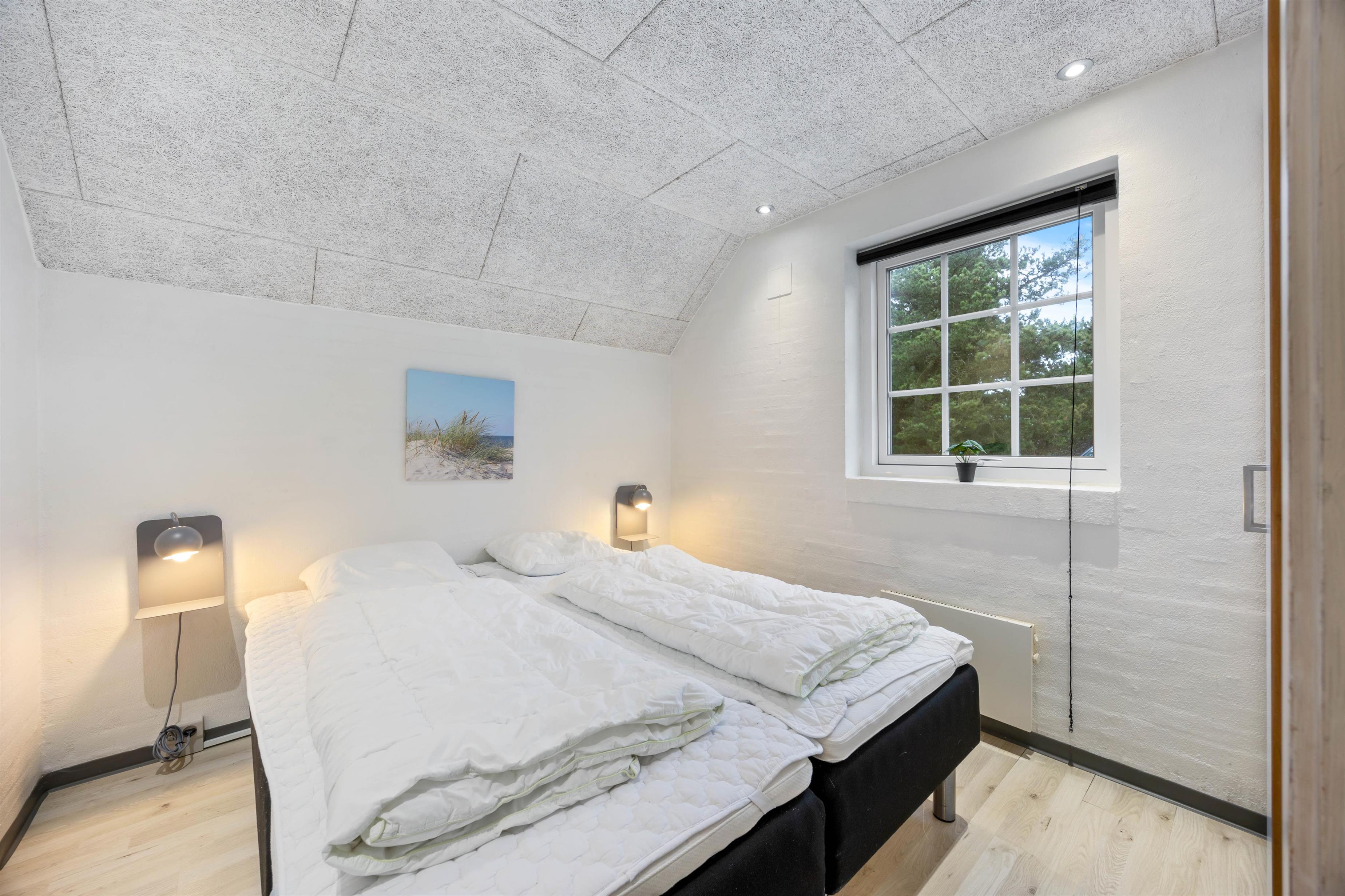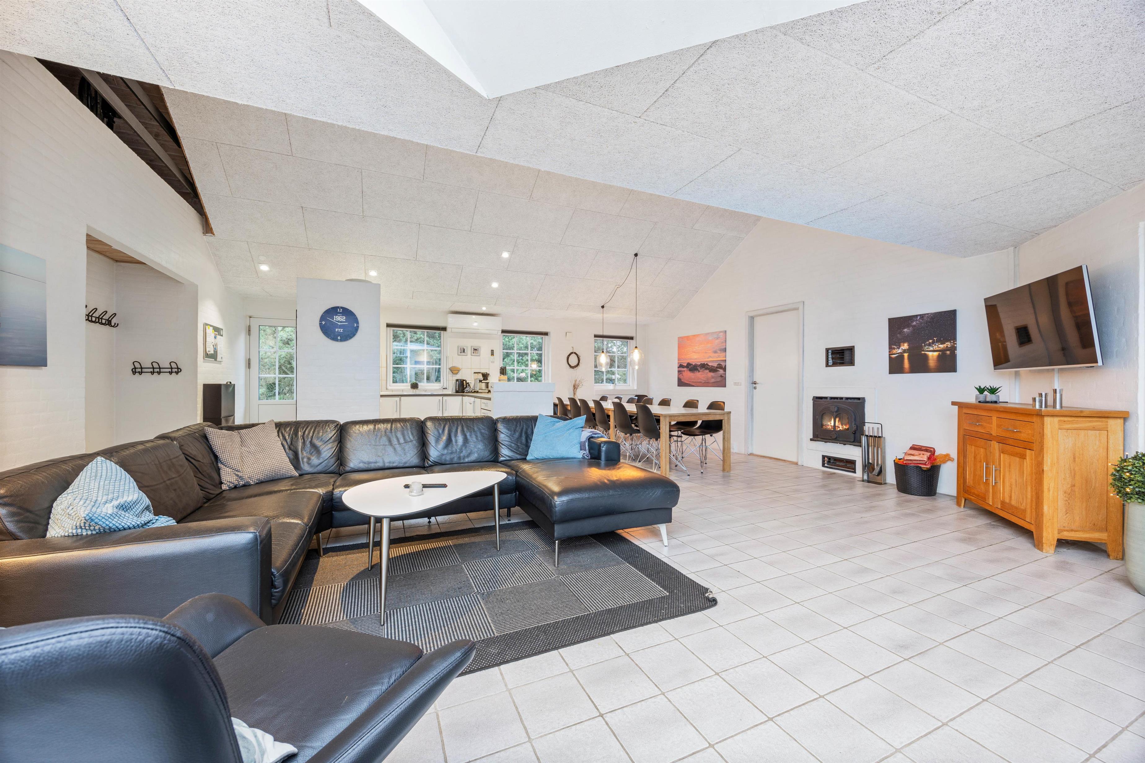 Sommerhuset fremstår lyst og velholdt med store gode lyse rum med højt til loftet. Opholdsrummet er stort og rummeligt, så hele familien kan være samlet. Her er højt til loftet, lyse farver på væggene og et stort vinduesparti, der giver et dejligt lysindfald. Der er stort fladskærms-TV, gratis internet og ellers alt, hvad der skal til for at holde en perfekt familieferie. Huset har 6 skønne soveværelser og en hems med 4 sovepladser, hvor ungerne vil elske at sove.