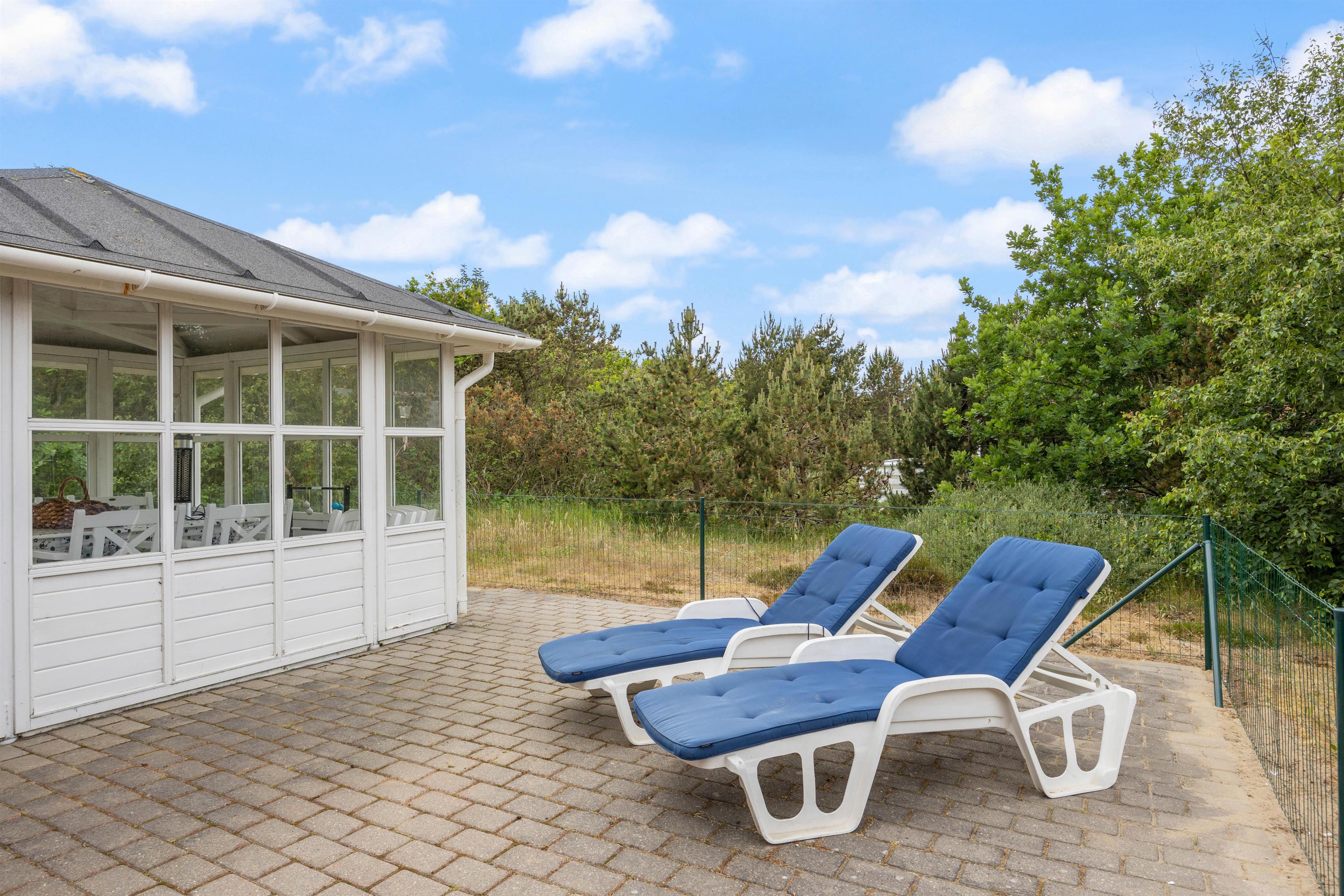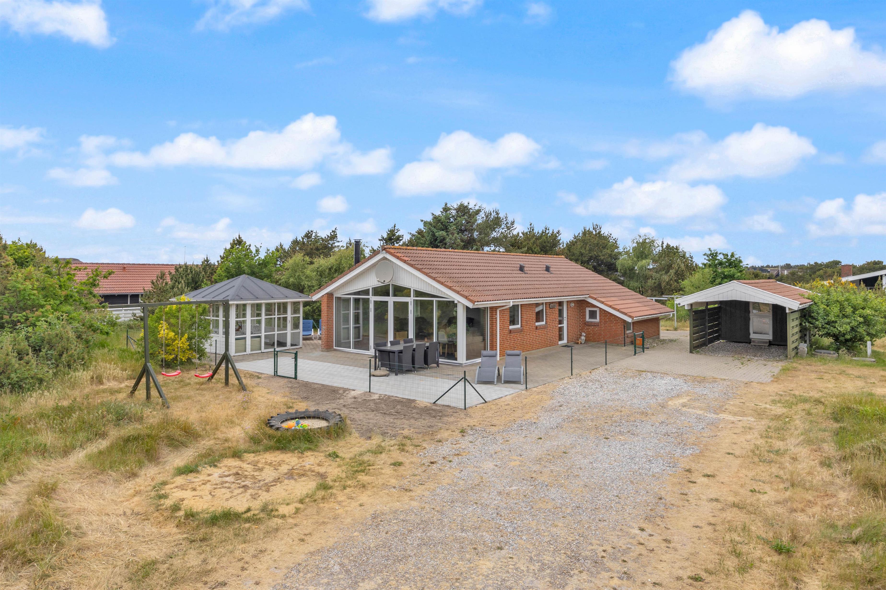 Feriehuset på P Snejkers Vej 20 ligger i et dejligt, attraktivt ferieområde tæt ved Vesterhavet og midt i et utroligt flot klitlandskab. Udover beliggenheden i et naturskønt område byder sommerhuset også på et ganske særligt udemiljø, hvor der er gjort meget for at forlænge udesæsonen. Feriehuset har en dejlig overdækket terrasse og en flot pavillon, som gør, at I kan sidde ude allerede fra det tidlige forår og til langt ud på sæsonen. Der hører naturligvis havemøbler, liggestole og grill med til udearealet, så I kan nyde ferien i fulde drag.