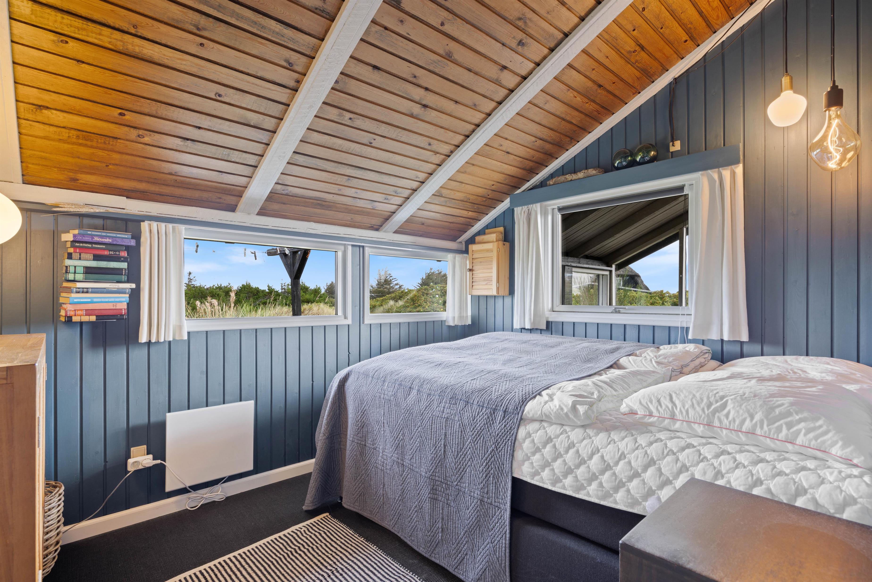 Med til sommerhuset hører et anneks med to soveværelser og eget badeværelse. Annekset har desuden sine egne terrasser, hvorfra I har den fineste udsigt ud over sommerlandet og hele vejen til Ringkøbing Fjord. Her er det virkelig oplagt, at nyde en masse udetid hvis vejret ellers tillader det.