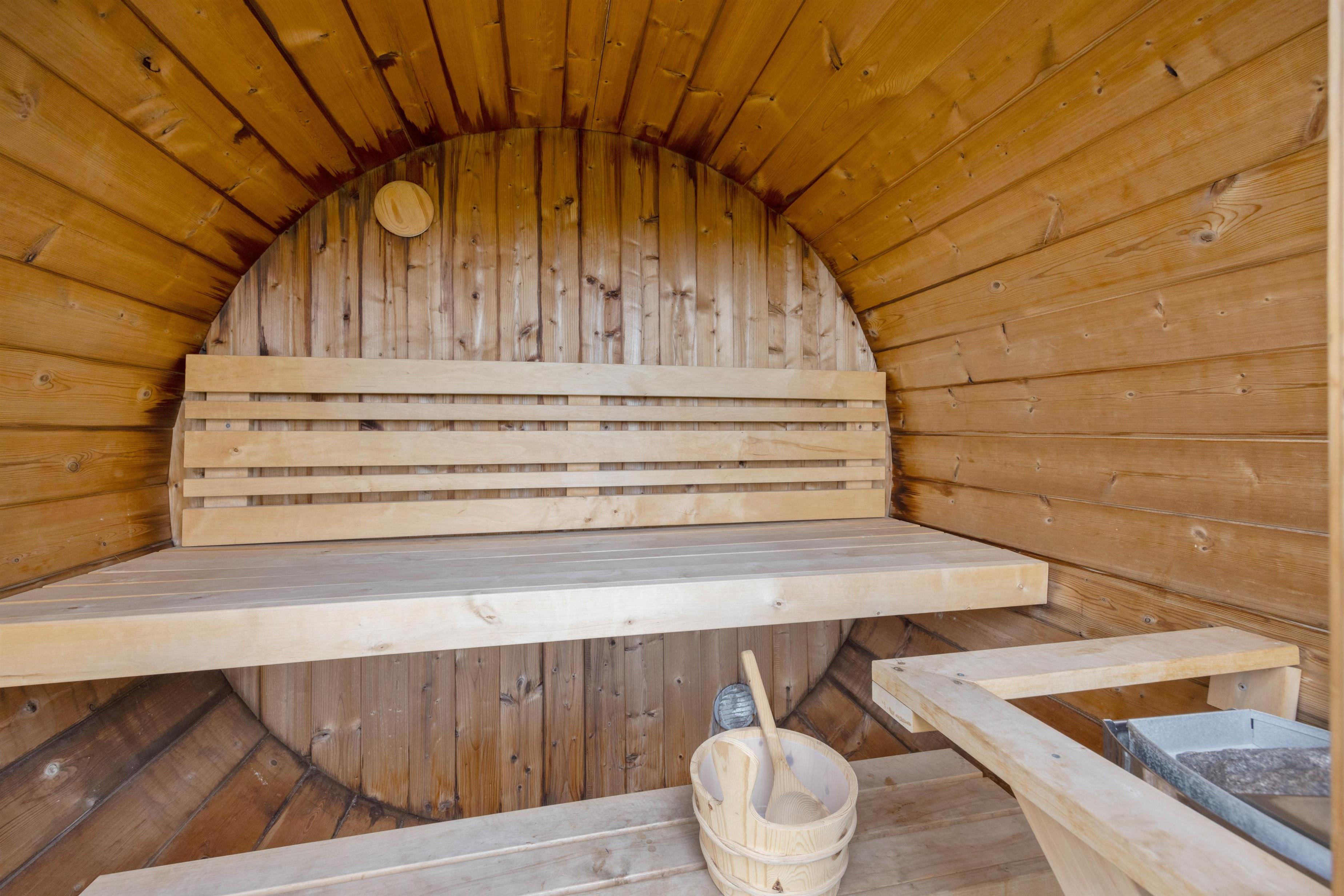 Ved siden af annekset ligger sommerhusets sauna. Her kan I nyde en lækker wellness-session, mens I nyder den flotte udsigt.