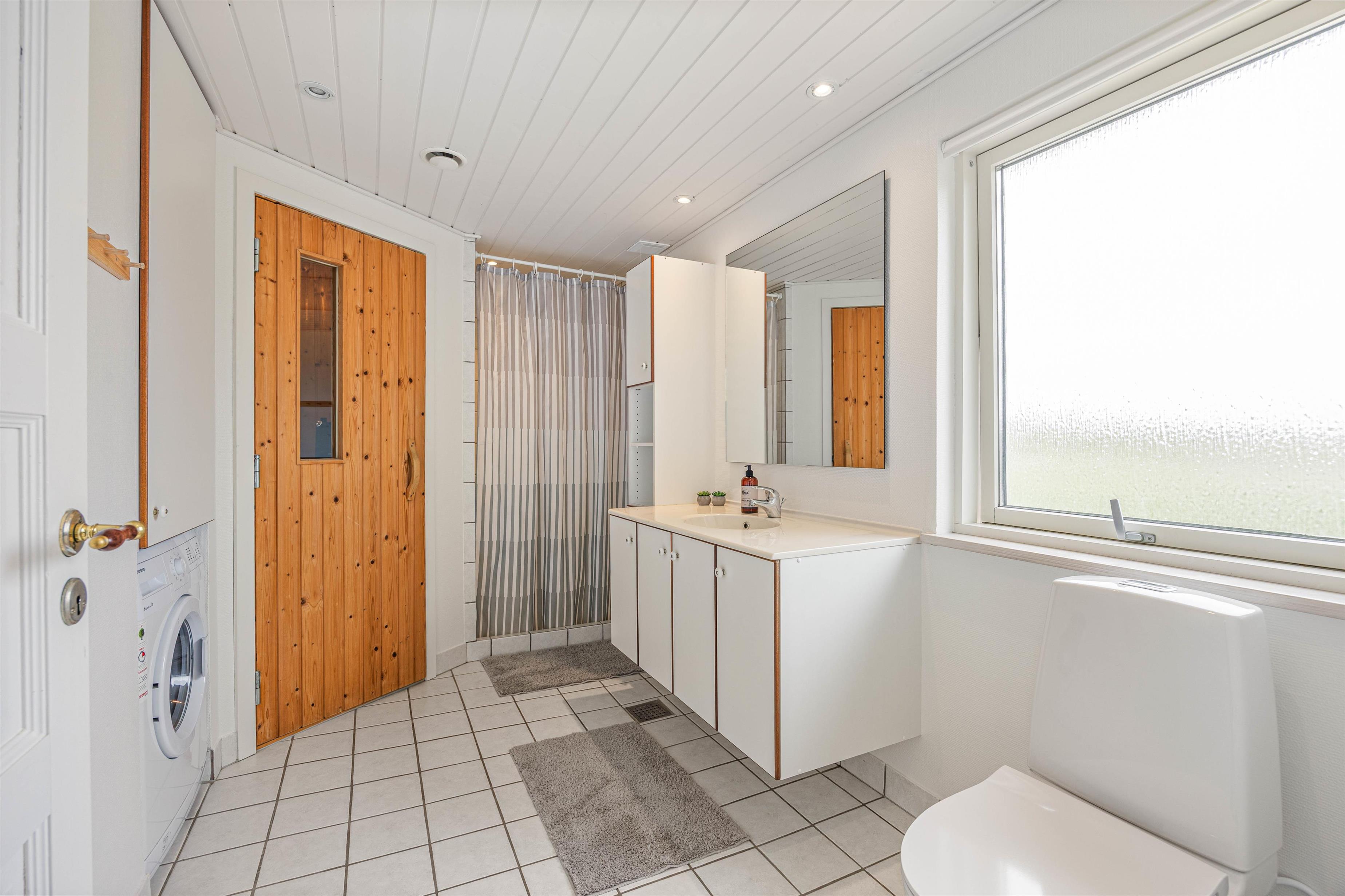 Derudover er der 2 badeværelser, der begge er udstyret med gulvvarme, så I undgår kø og kolde fødder om morgenen. I et af badeværelserne er der også en sauna, hvor I kan blive rigtig gennemvarmet.