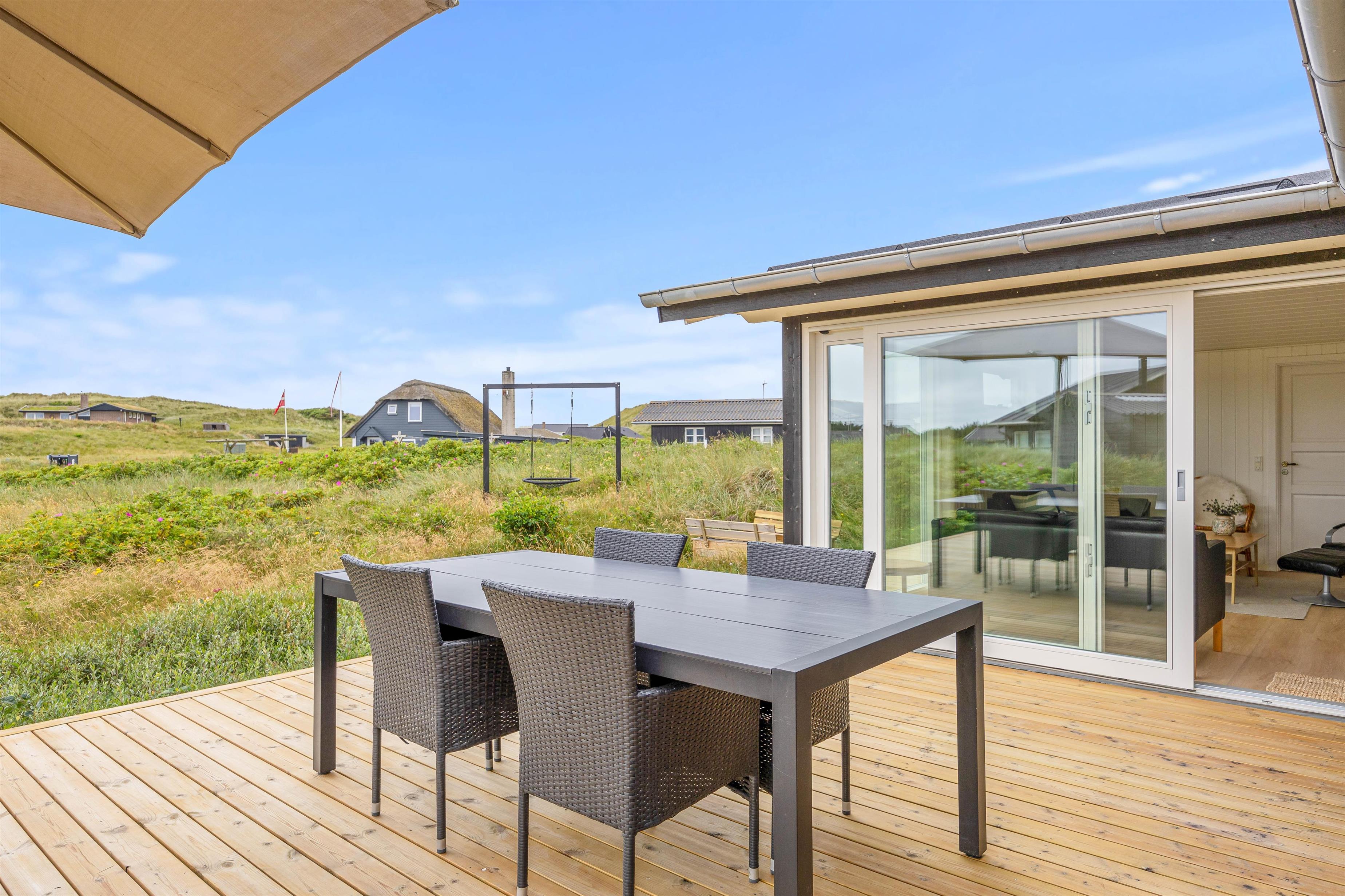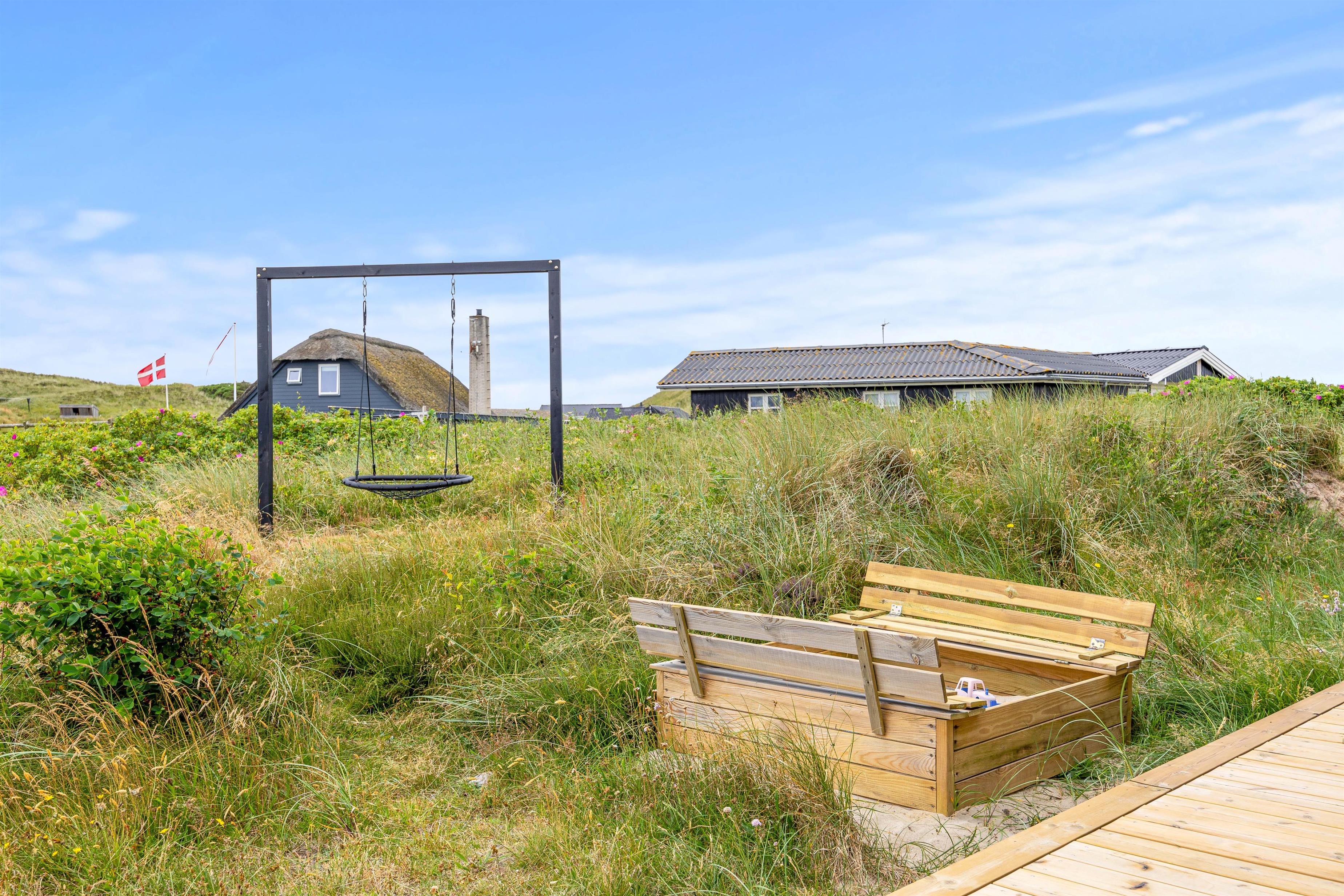 Børnene vil elske dette sommerhus i Søndervig, hvor de kan lege på gyngen og i sandkassen. På terrasse kan I nyde familietid og et godt måltid tilberedt over gasgrillen. Der er god plads til, at børnene kan lege sikkert og alle kan nyde den friske luft. Trænger I til en skyller efter en dejlig dag på stranden, kan I benytte jer af udebruseren, som er tilgængelig fra april til og med oktober.