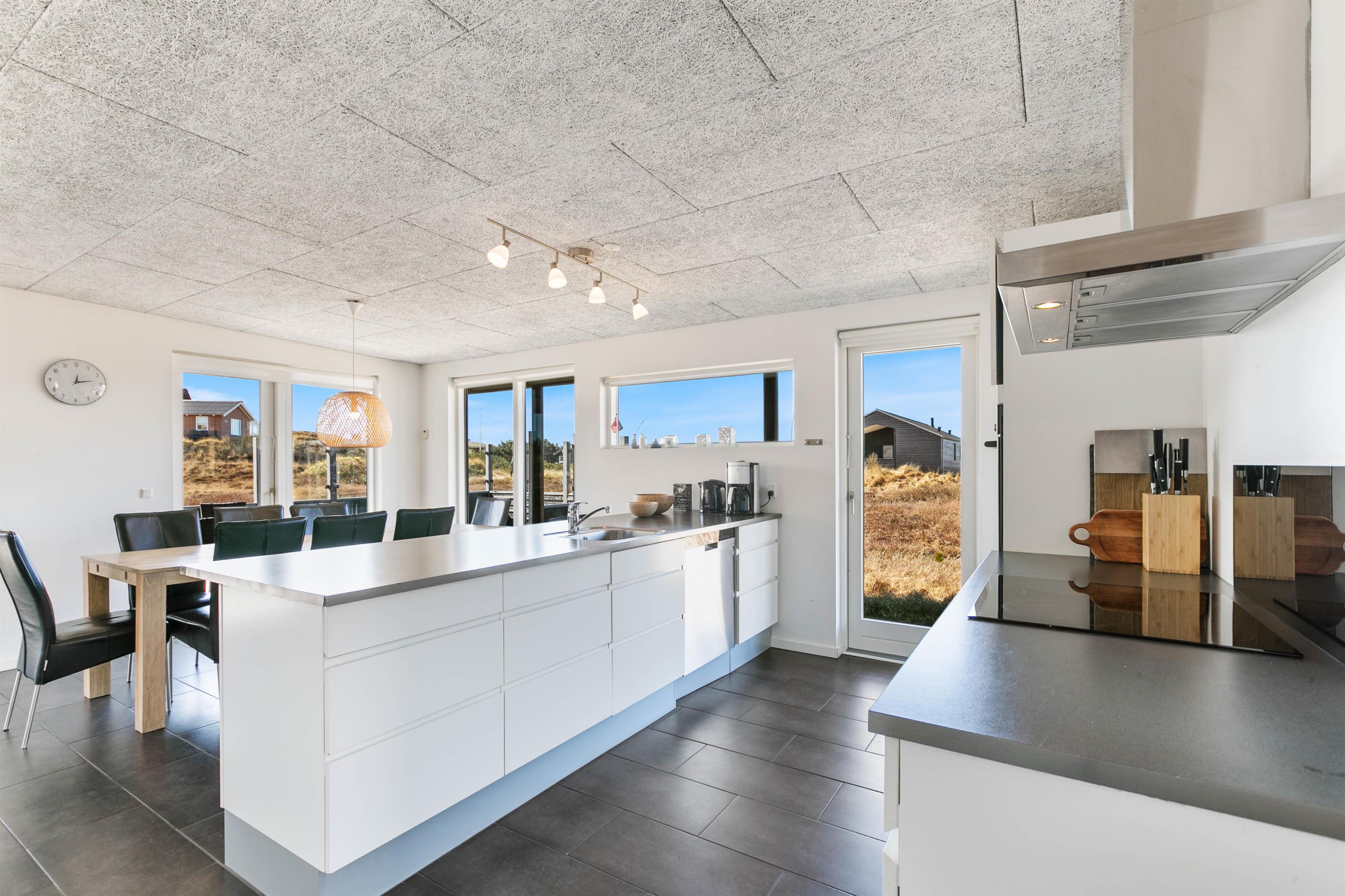 De store vinduer i huset sørger for et godt lysindfald uanset årstiden. I dette moderne og stilfulde feriehus kan du tilbringe en afslappende ferie med din familie eller dine bedste venner. Huset er yderst veludstyret og råder både over vaskemaskine, tørretumbler og opvaskemaskine, der alle er med til at gøre din ferie så bekvem så mulig.