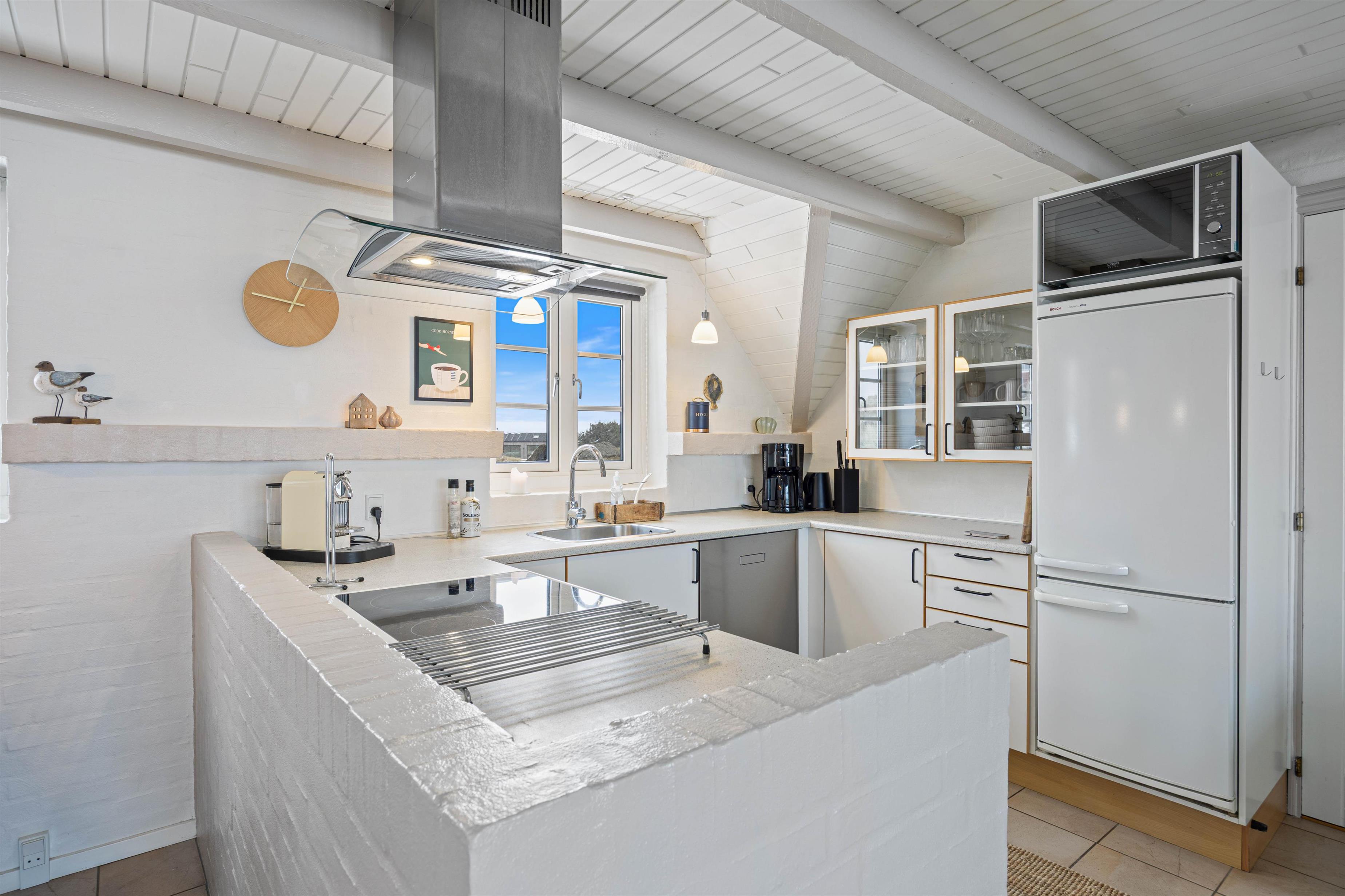 Ydermere er sommerhuset udstyret med en opvaskemaskine og en vaskemaskine, der begge sørger sommerhuset for at de praktiske gøremål nemt overstås, så I kan bruge tiden på at slappe af og nyde ferien. Tilføjelsen af en 50 L separat fryser giver jer mulighed for at opbevare madvarer, så I kan nyde længere ophold uden bekymringer. En luft-til-luft varmepumpe sikrer behageligt indeklima hele året rundt, og I får det bedste ud af teknologien med moderne faciliteter som Chromecast til rådighed.