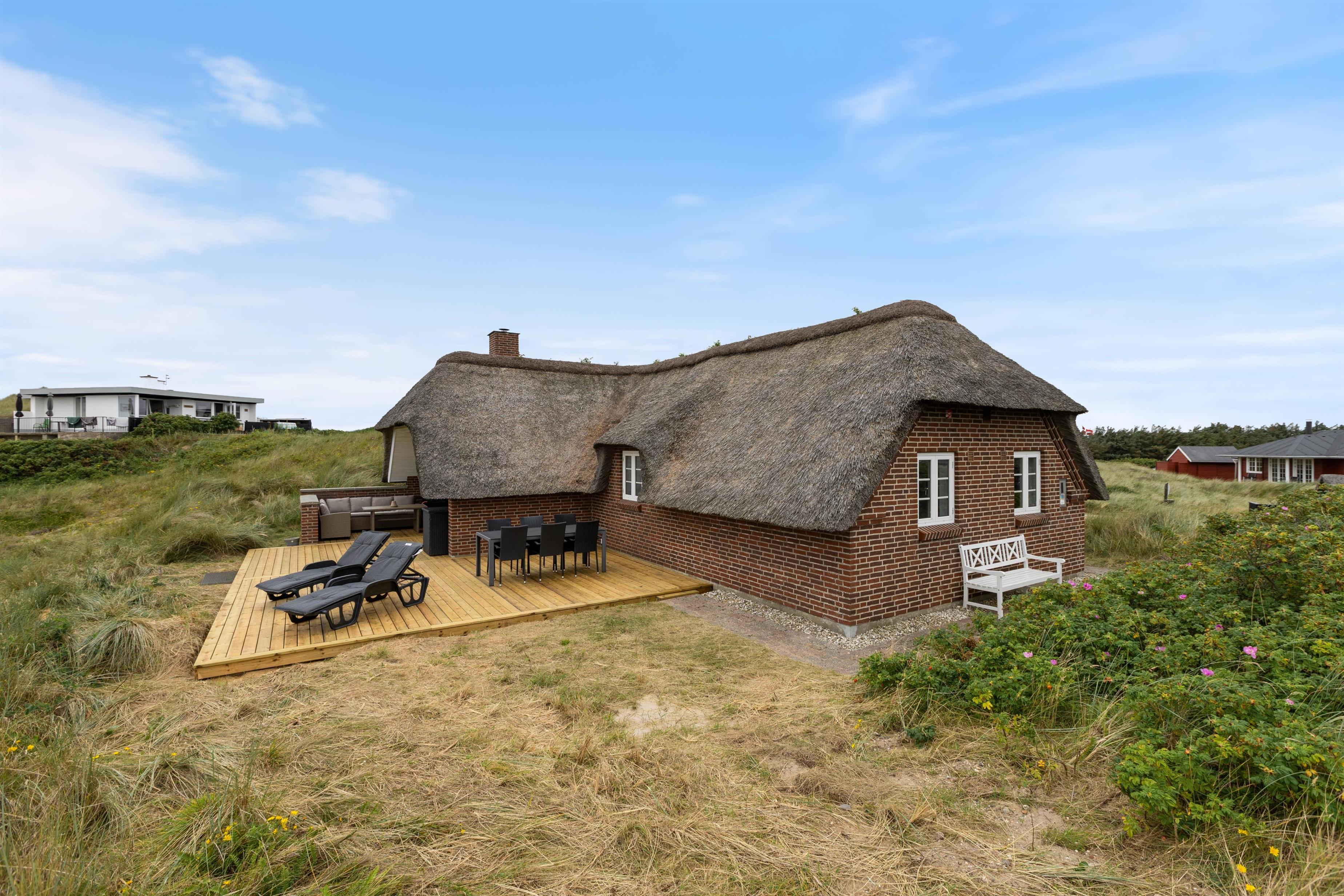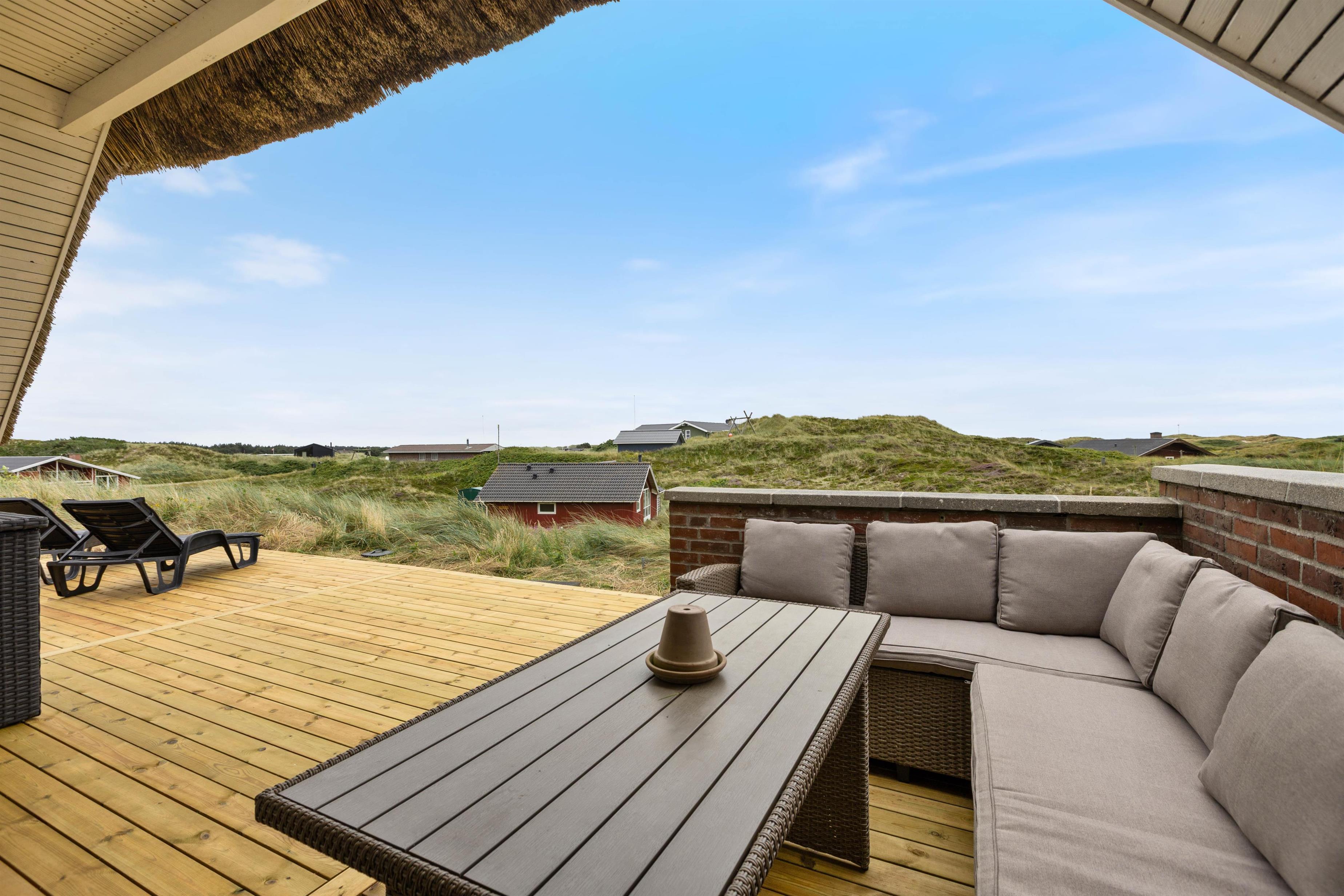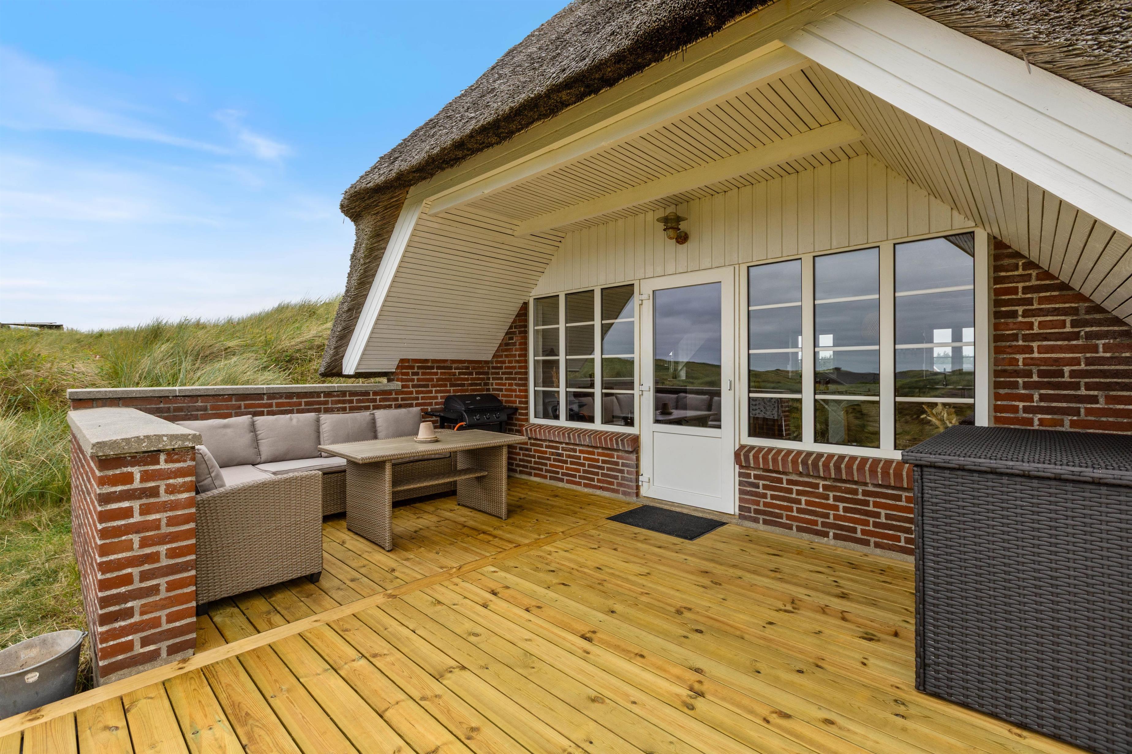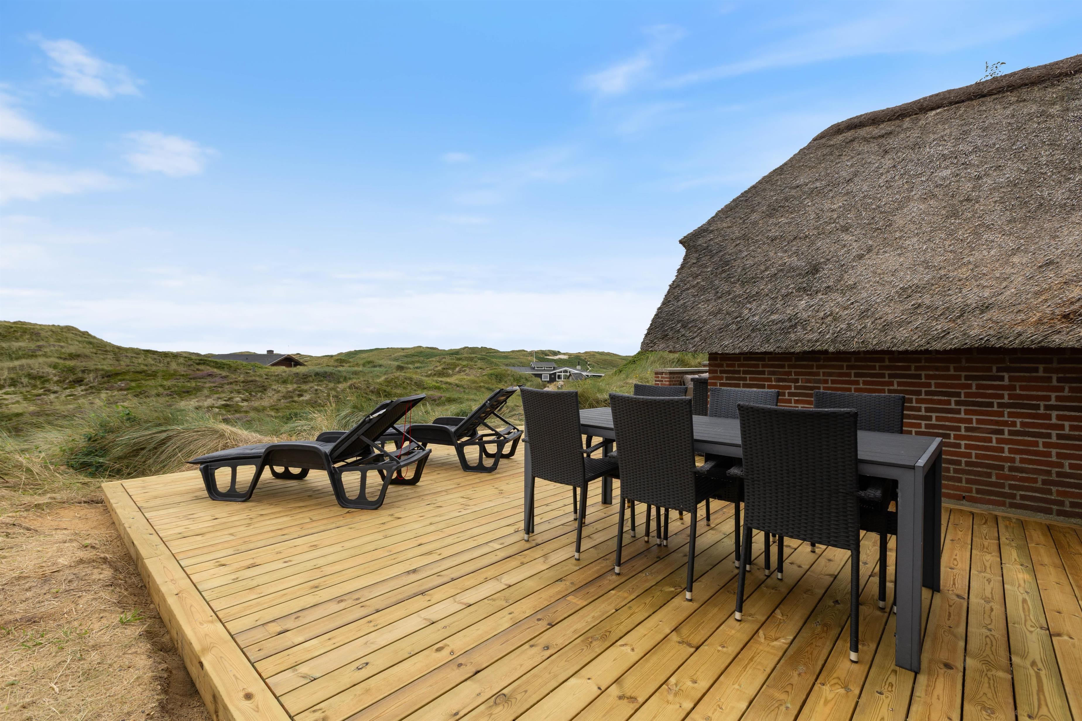 Sommerhuset har en afskærmet terrasse, der giver jer mulighed for at nyde grillretter på de inkluderede havemøbler, mens I suger den storslåede panoramaudsigt til jer. Huset er beliggende på en skøn klitgrund, der understøtter en følelse af privatliv og nærhed til naturen. Her kan I have familiens bedste ven med, da op til én hund er tilladt, hvilket gør det nemt at inkludere alle medlemmer i ferien.