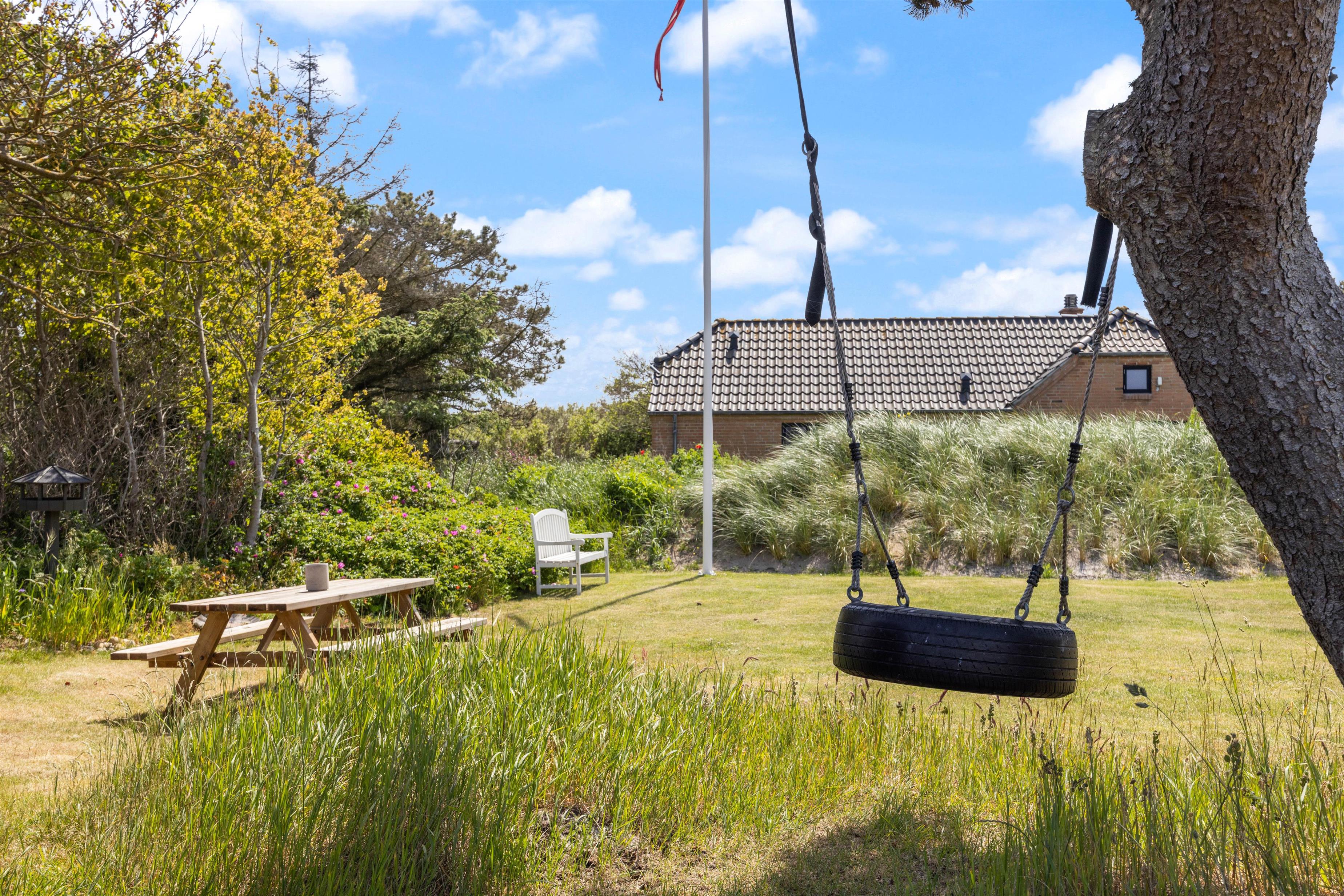 Feriehuset ligger på en plænegrund på ca. 2180 m2, hvor jeres børn og hund har masser af plads til at lege og boltre sig. Foran feriehuset er der en grusbelagt terrasse, hvor I finder passende havemøbler og liggestole, så I kan gøre det behageligt i solen, mens børnene leger på græsplænen. Et højdepunkt for jeres børn vil være gyngen i træet. Fra terrassen er der også adgang til feriehusets skur, hvor I finder vaskemaskine og tørretumbler, så I ikke behøver at tage så meget bagage med jer på ferien.