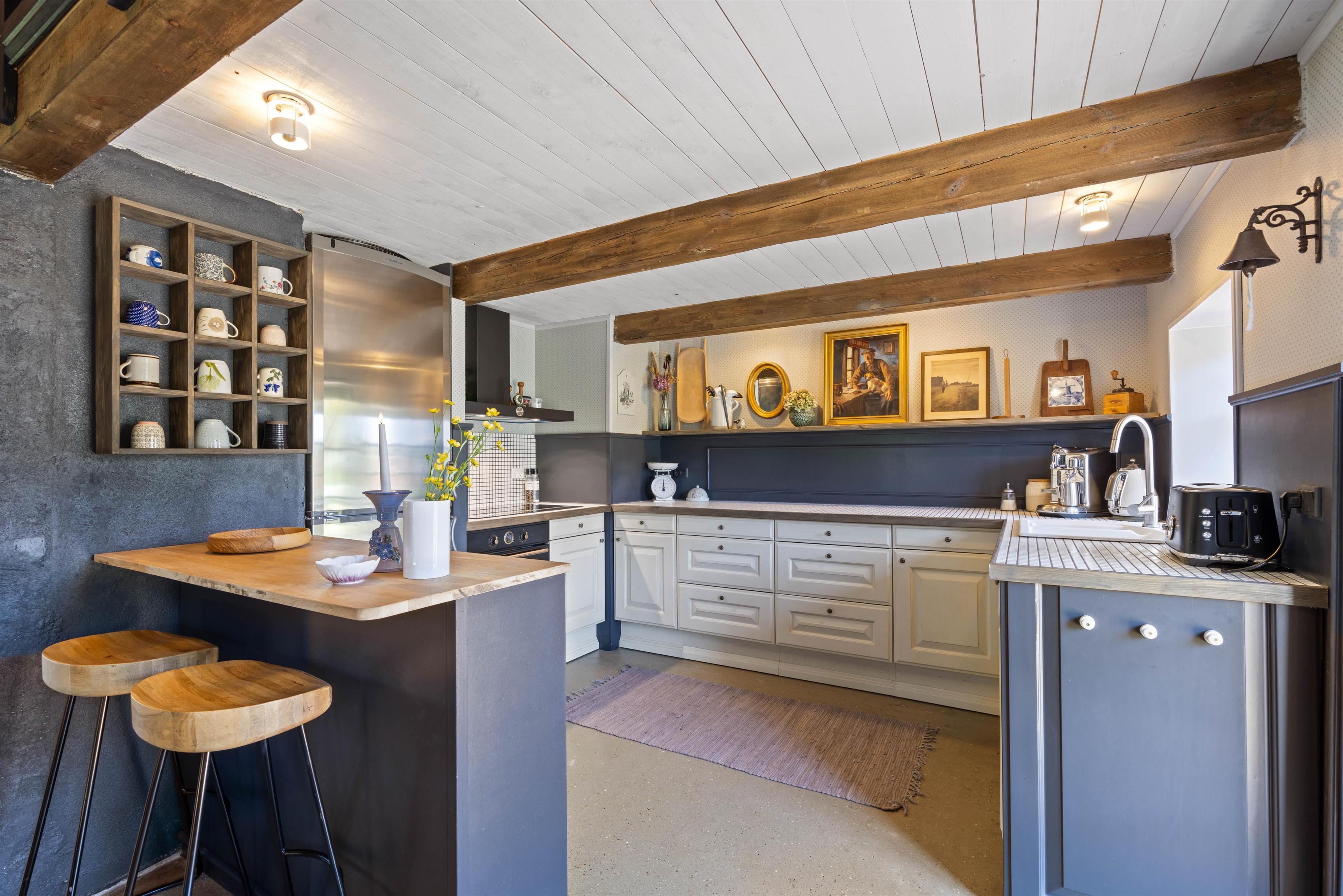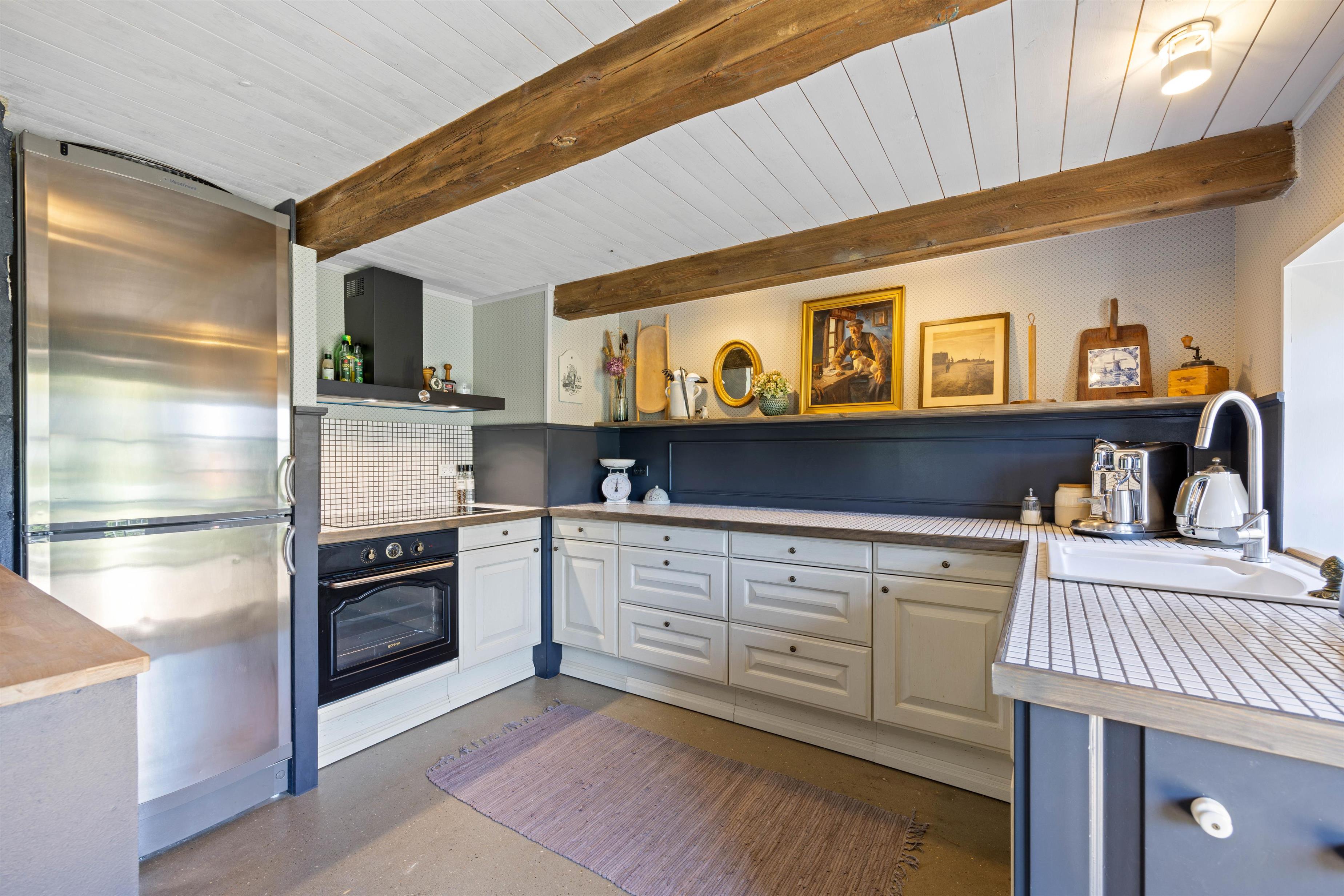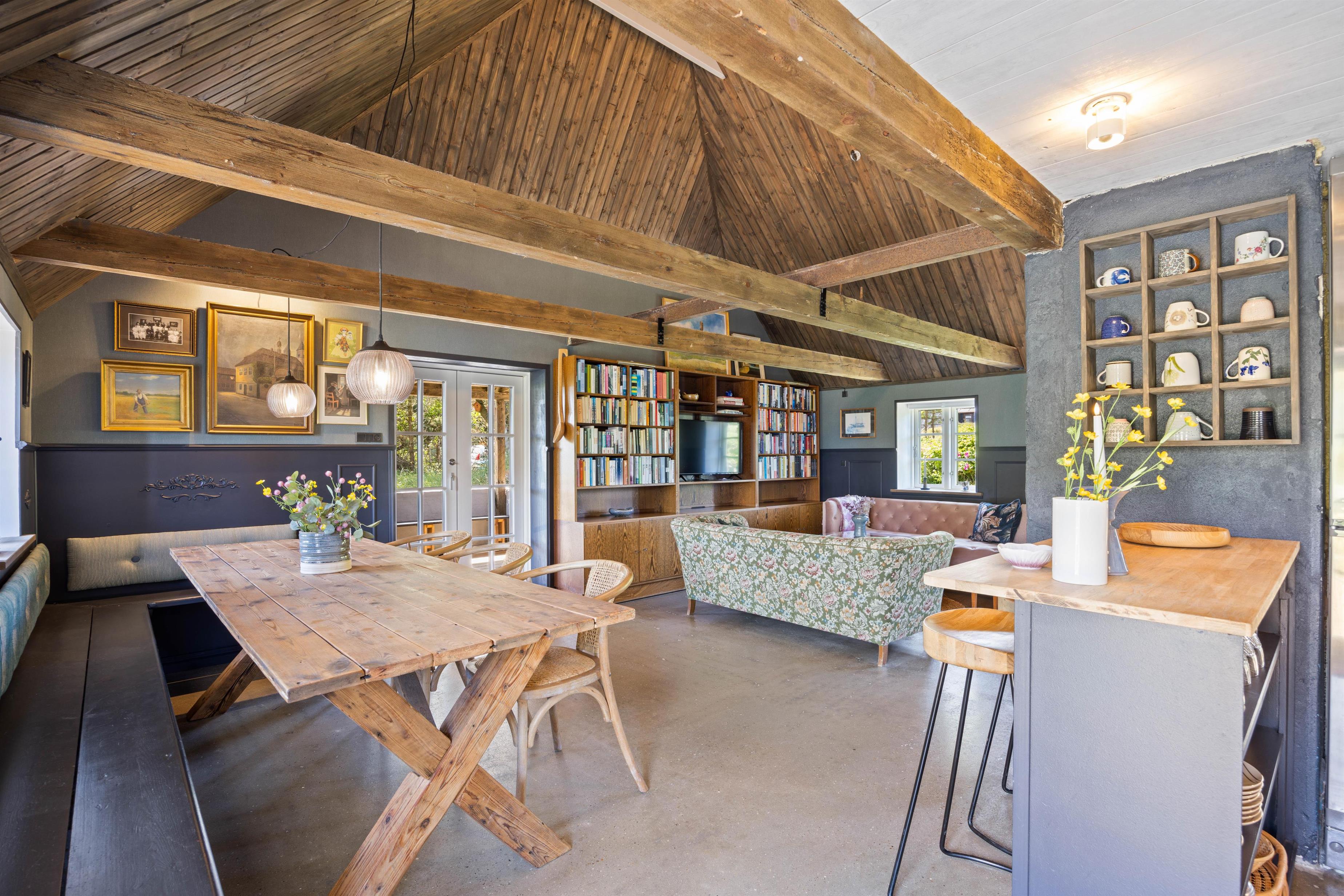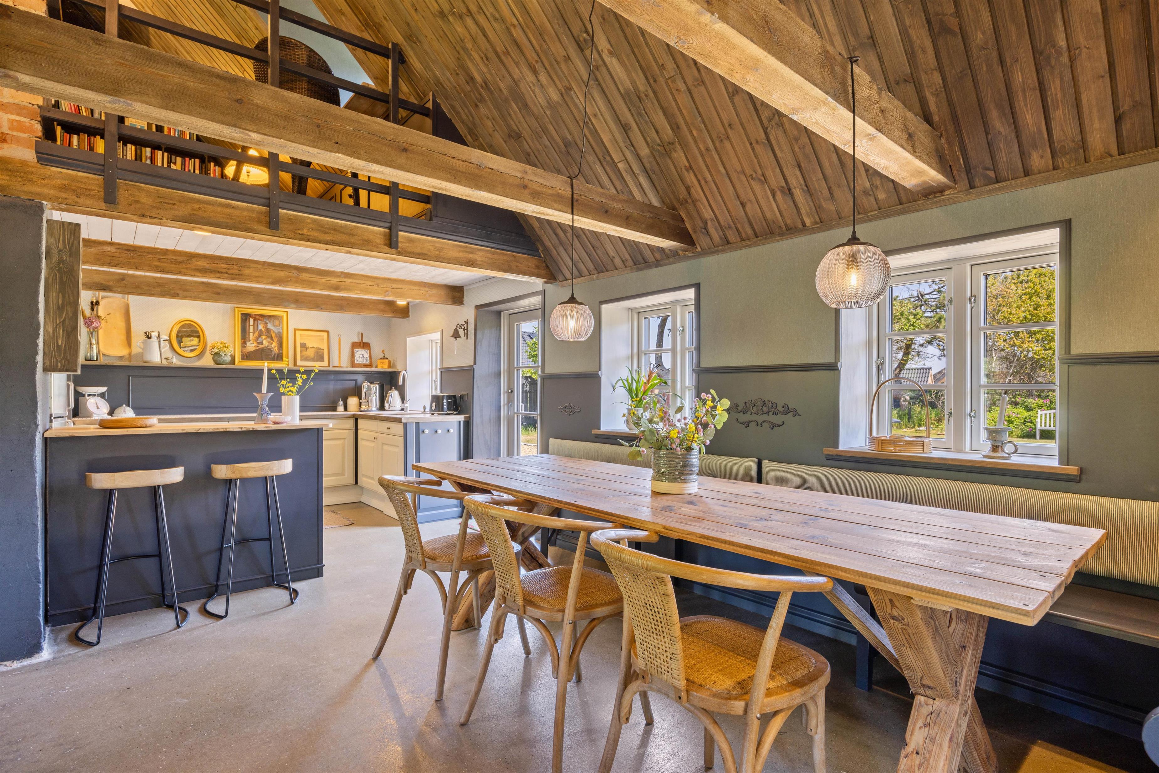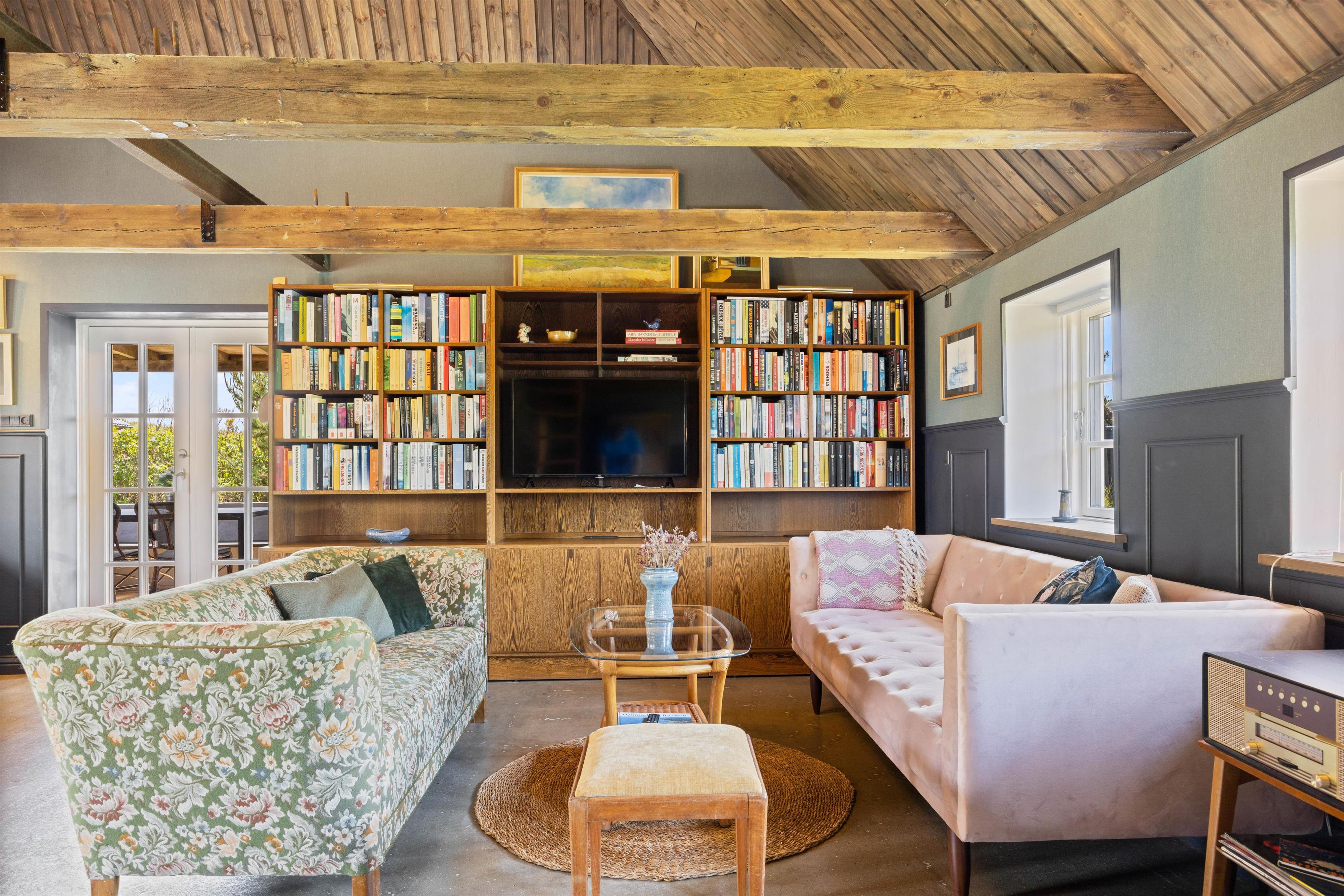 Feriehusets stil kombinerer det moderne udtryk med den nordiske og romantiske stil, hvilket især er synligt i stuen med de flotte trædetaljer og det moderne køkken. De mange detaljer, som billederne på væggen, det åbne loft og bogreolerne bidrager til feriehusets ægte hygge. Det store alrum er feriehusets hjerte, hvor I kan lave mad sammen, spille spil eller planlægge de næste aktiviteter i ferien.