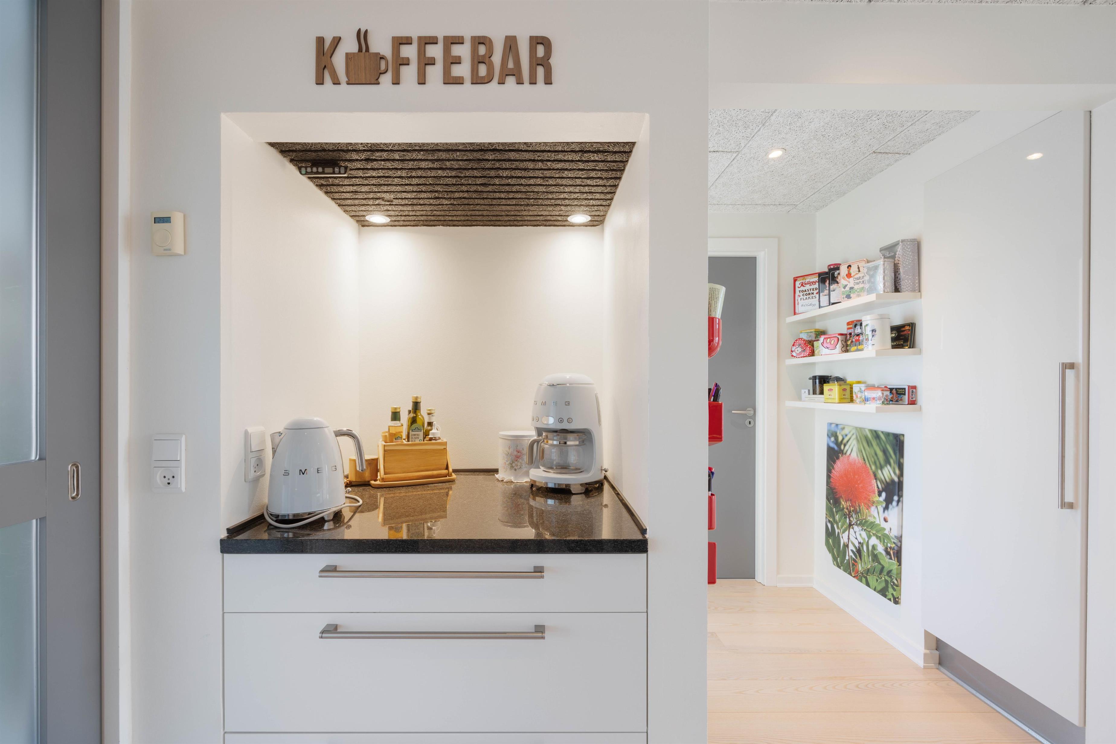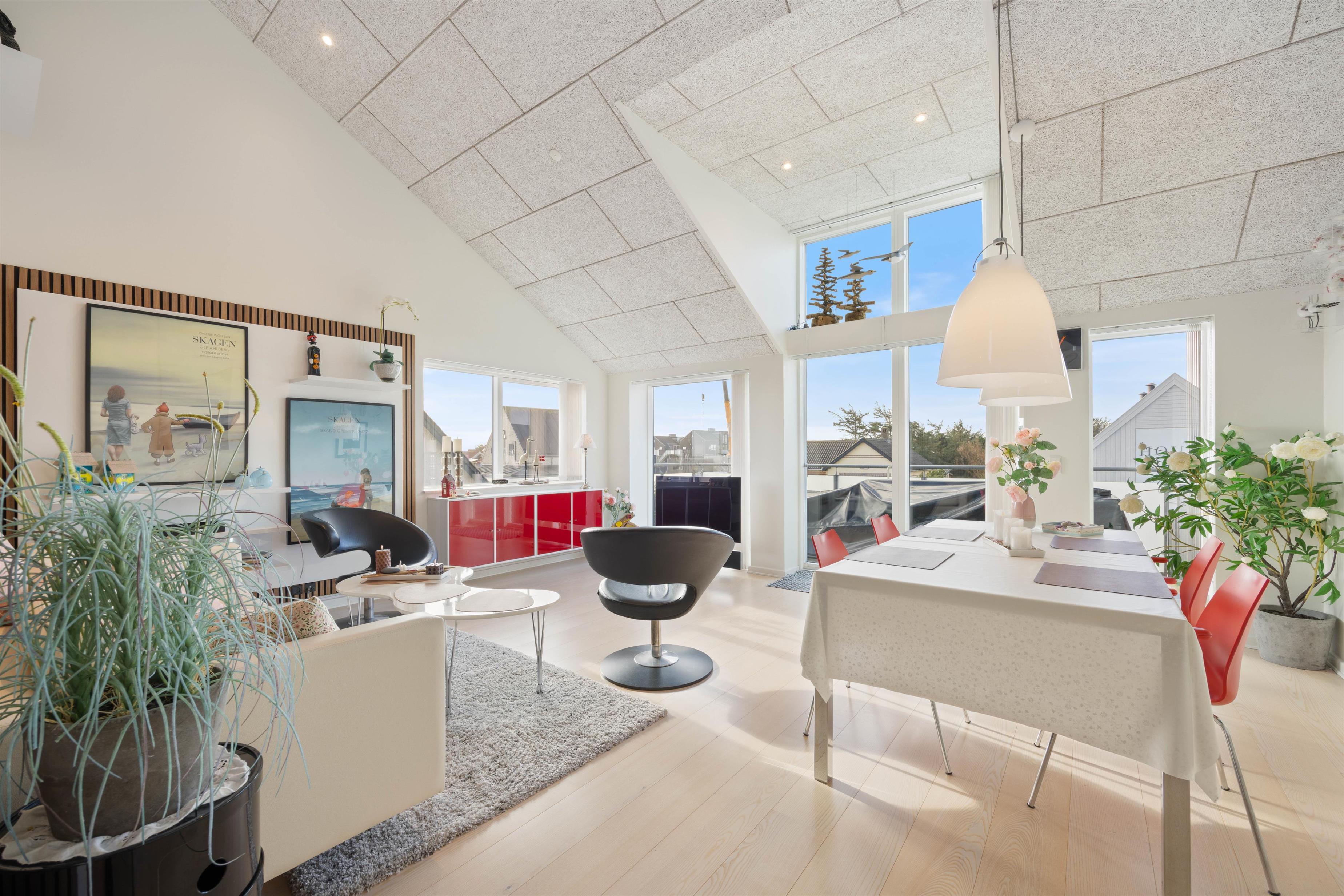 Når I træder ind i ferielejligheden, vil I blive mødt af moderne og stilfulde møbler, der får jer til at føle jer hjemme fra begyndelsen. Ferielejlighedens midtpunkt er det store opholdsrum, som forbinder stue og spiseplads. Køkkenet ligger i forbindelse med stuen og fungerer som en forlængelse af opholdsrummet. Her kan I lave mad sammen, spille brætspil eller planlægge jeres næste ferieaktiviteter. Om aftenen kan I se jeres yndlingsfilm på fladskærms-tv'et i ferielejligheden.