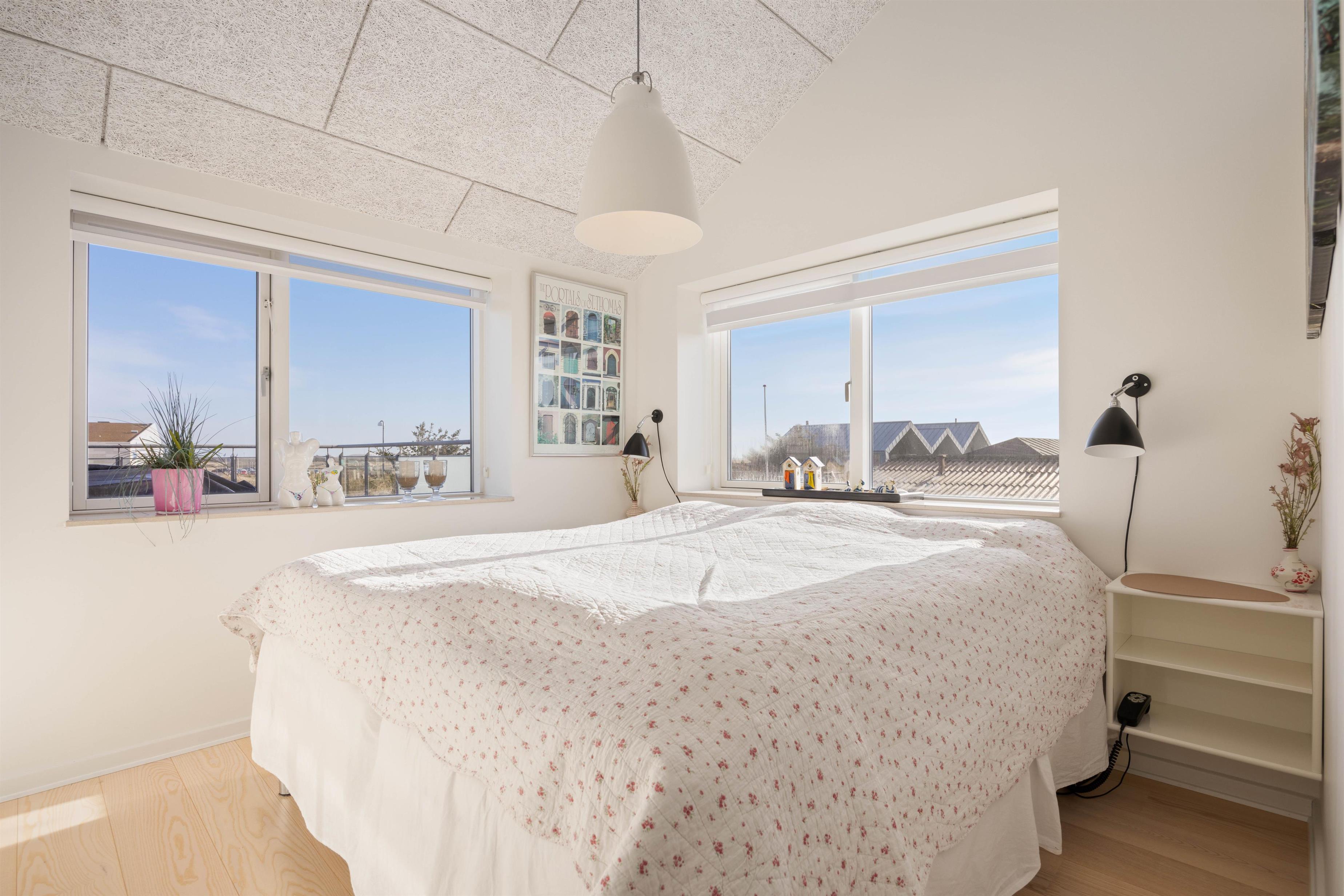 I ferielejligheden er der plads nok til at holde en dejlig ferie med 2 personer. I ferielejligheden er der et soveværelse med dobbeltseng. Der er desuden også en hyggelig hems, hvor I også kan vælge at slappe af efter en lang dag. Ferielejligheden har gulvvarme i alle rum, som styres af fjernvarme. Der er installeret vaskemaskine, tørretumbler og opvaskemaskine i ferielejligheden, så I ikke behøver at bekymre dig om husholdningen under jeres ferie.