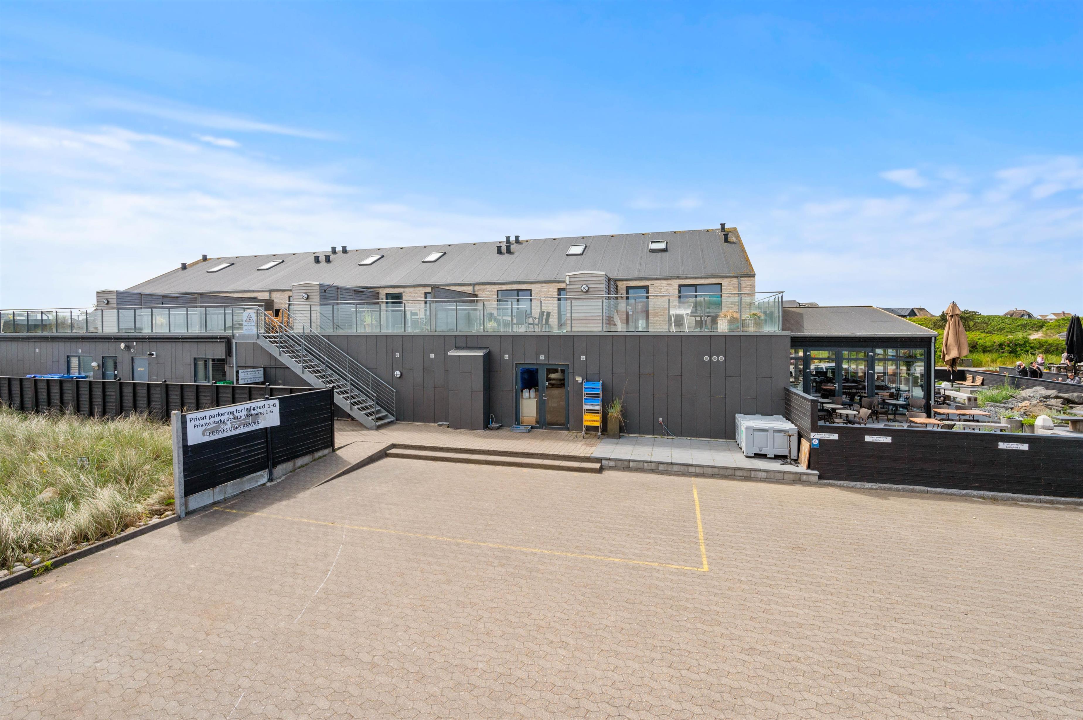 Afskærmet terrasse med udsigt over Søndervig