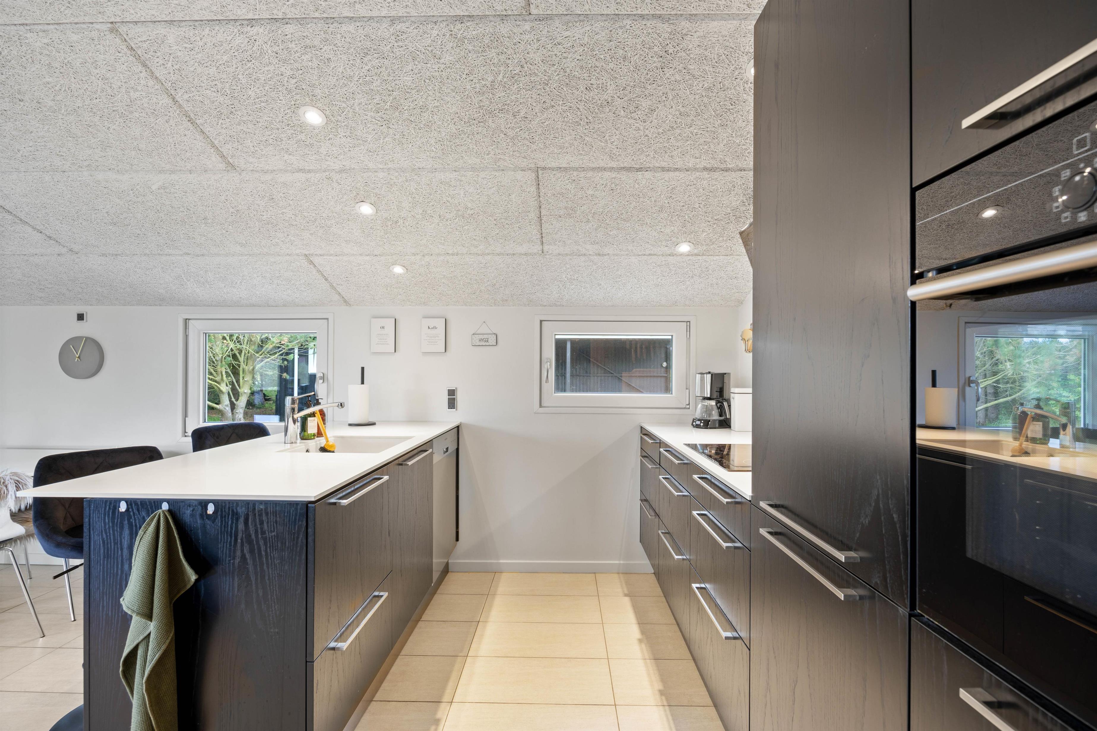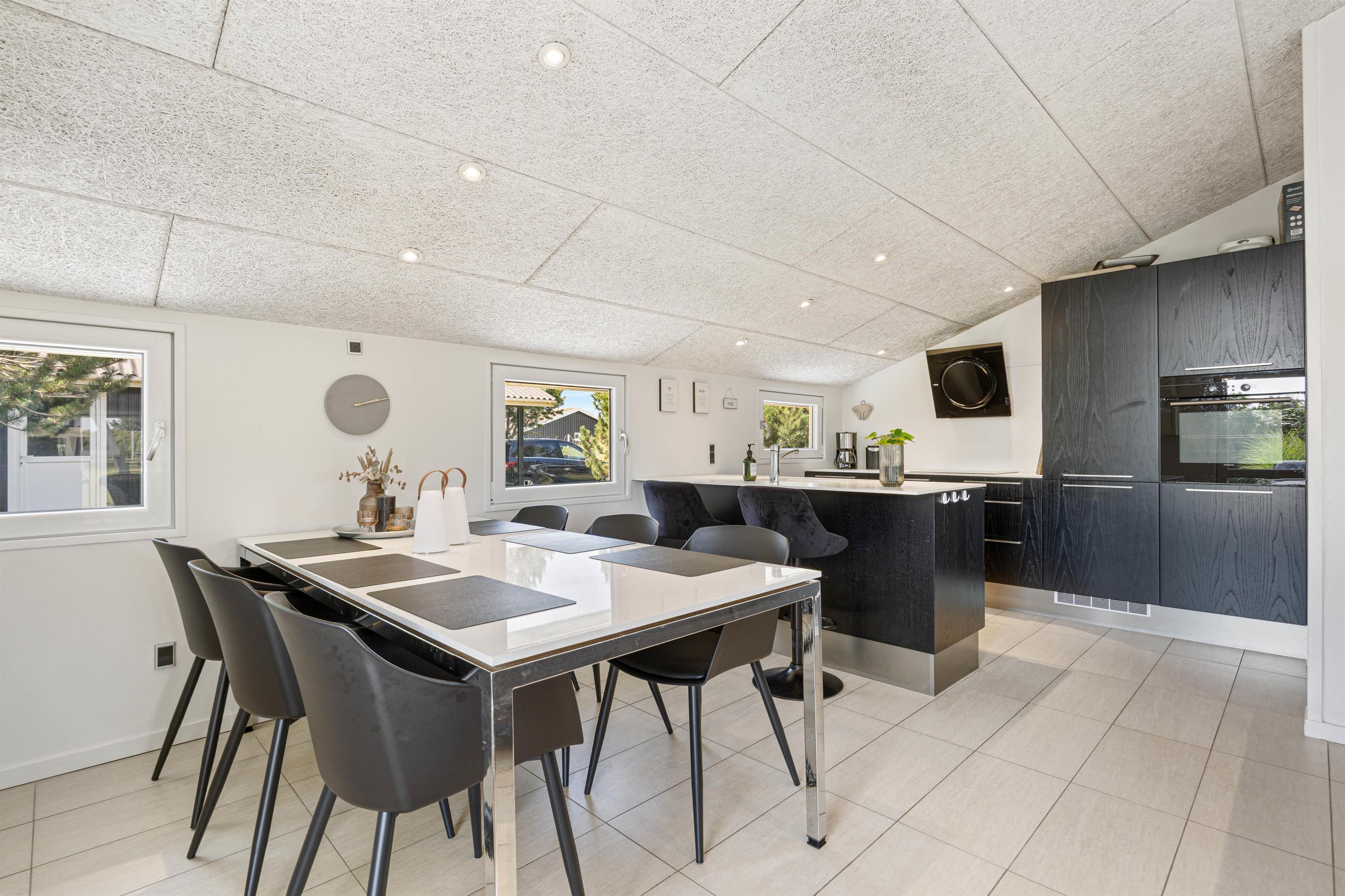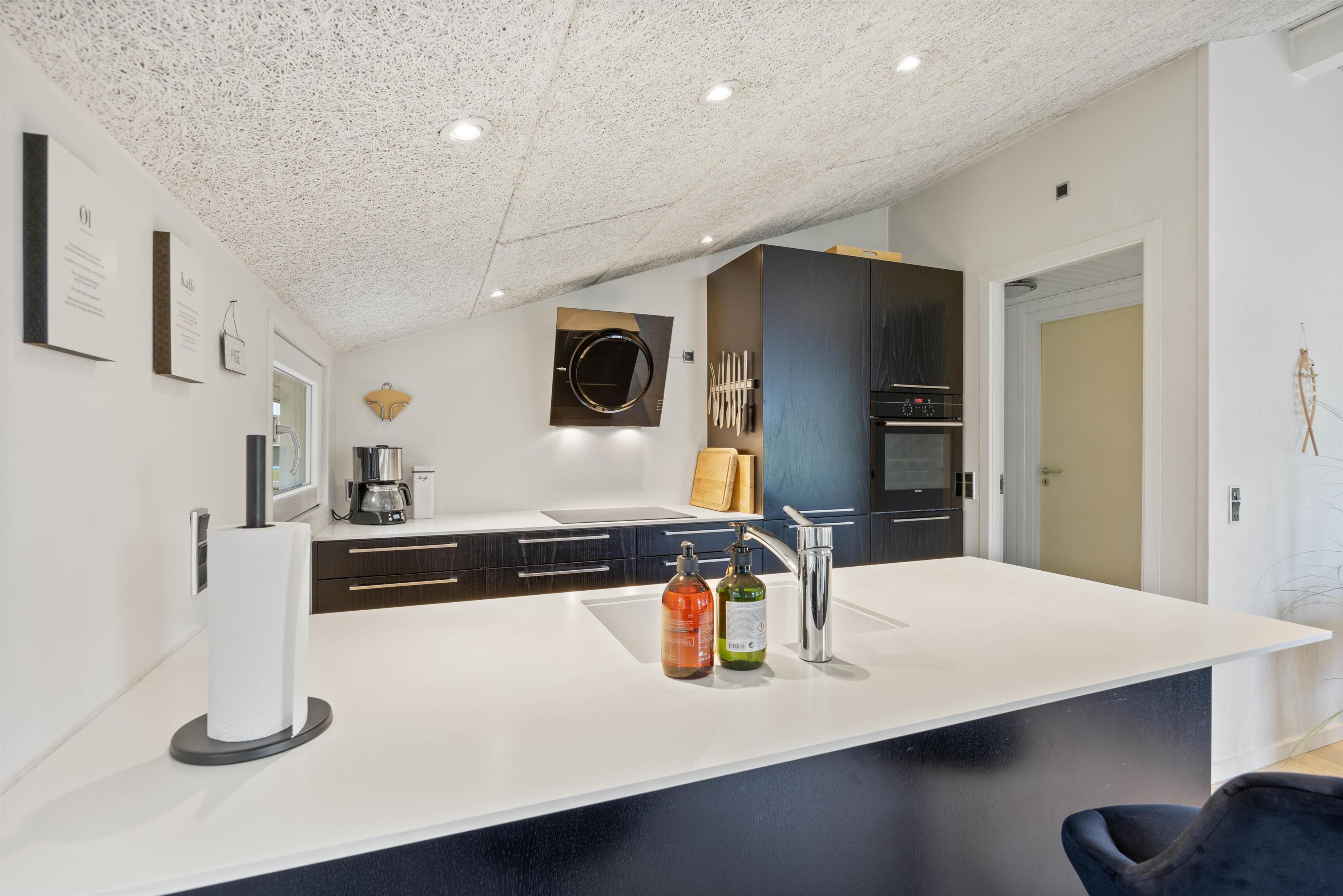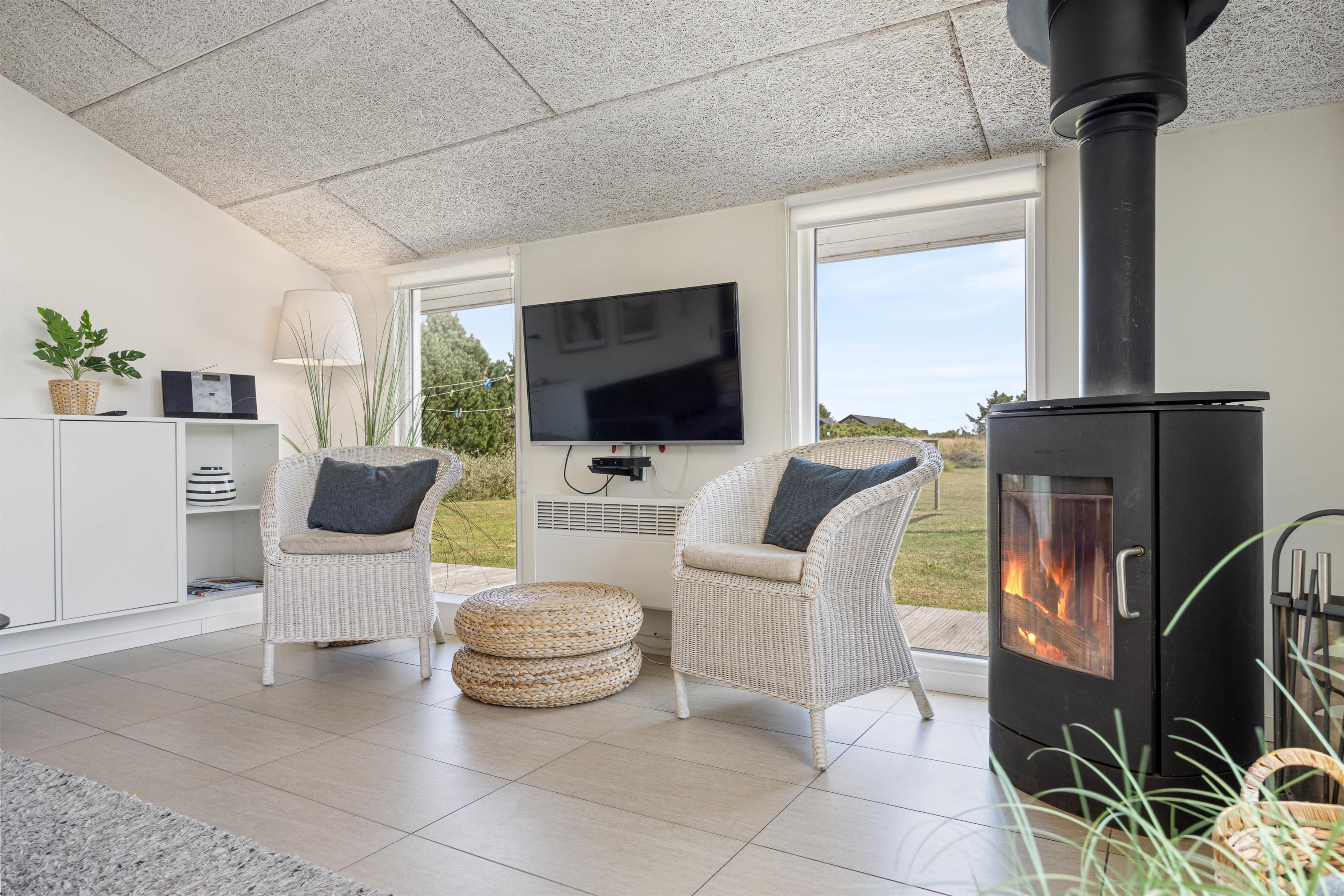 Efter en oplevelsesrig dag i det vestjyske er der rig mulighed for afslapning foran brændeovnen, mens I ser en god film eller serie. Det åbne samtalekøkken er moderne og velintegreret i resten af huset. Her kan feriekokken slå sig løs med hårde hvidevarer af høj kvalitet. Køkkenet er bl.a. udstyret med opvaskemaskine, mikroovn og køleskab med en 40L fryser.
