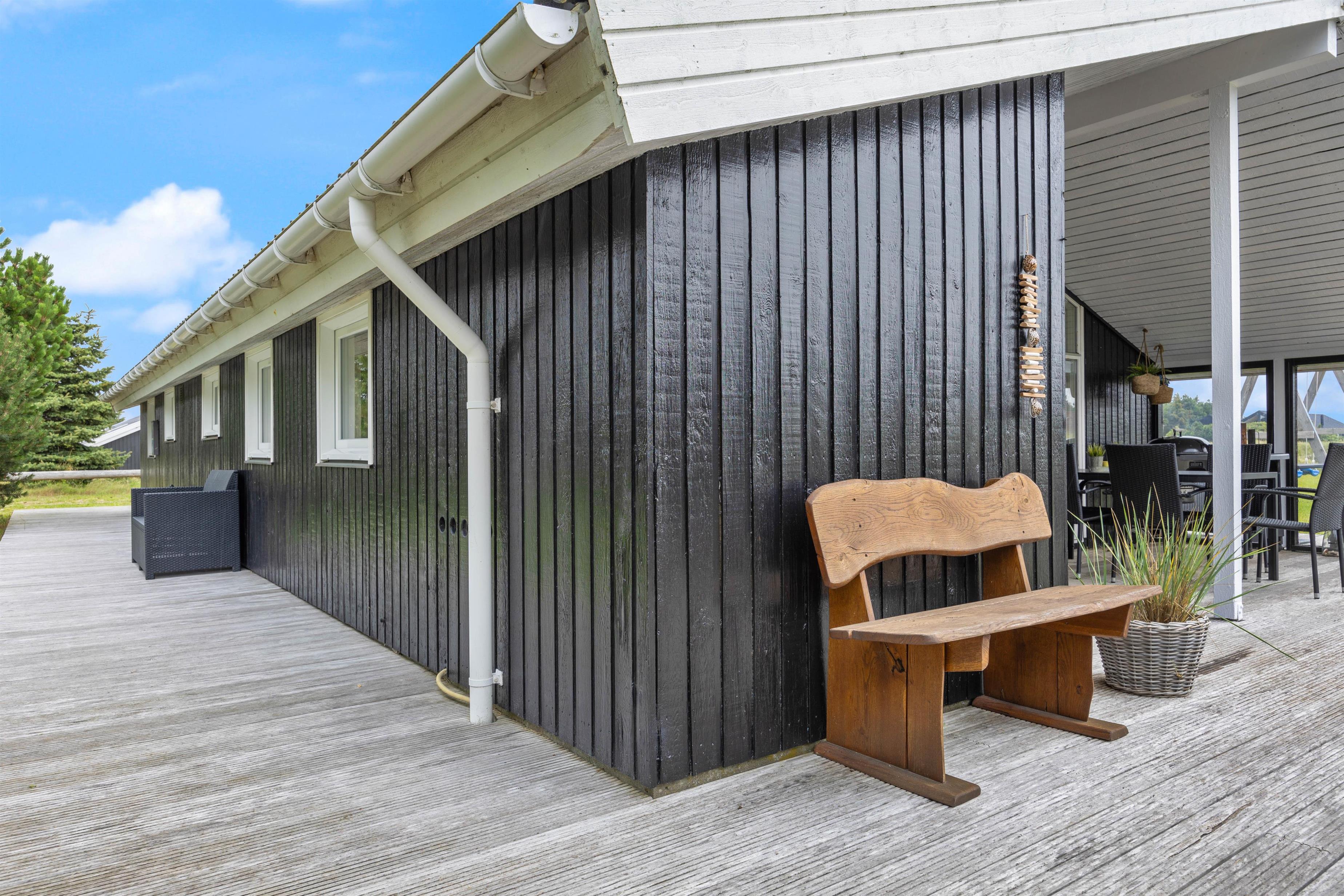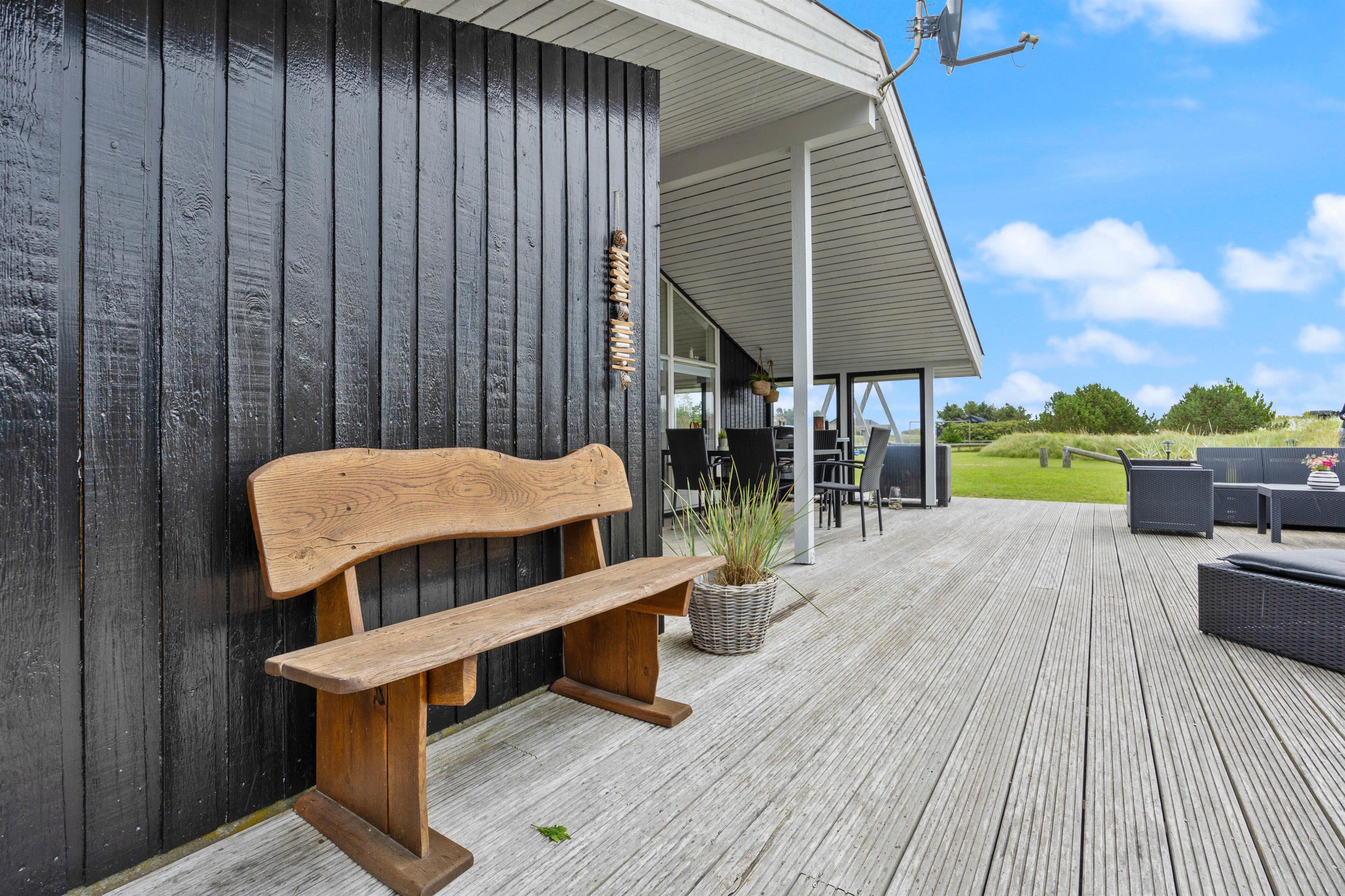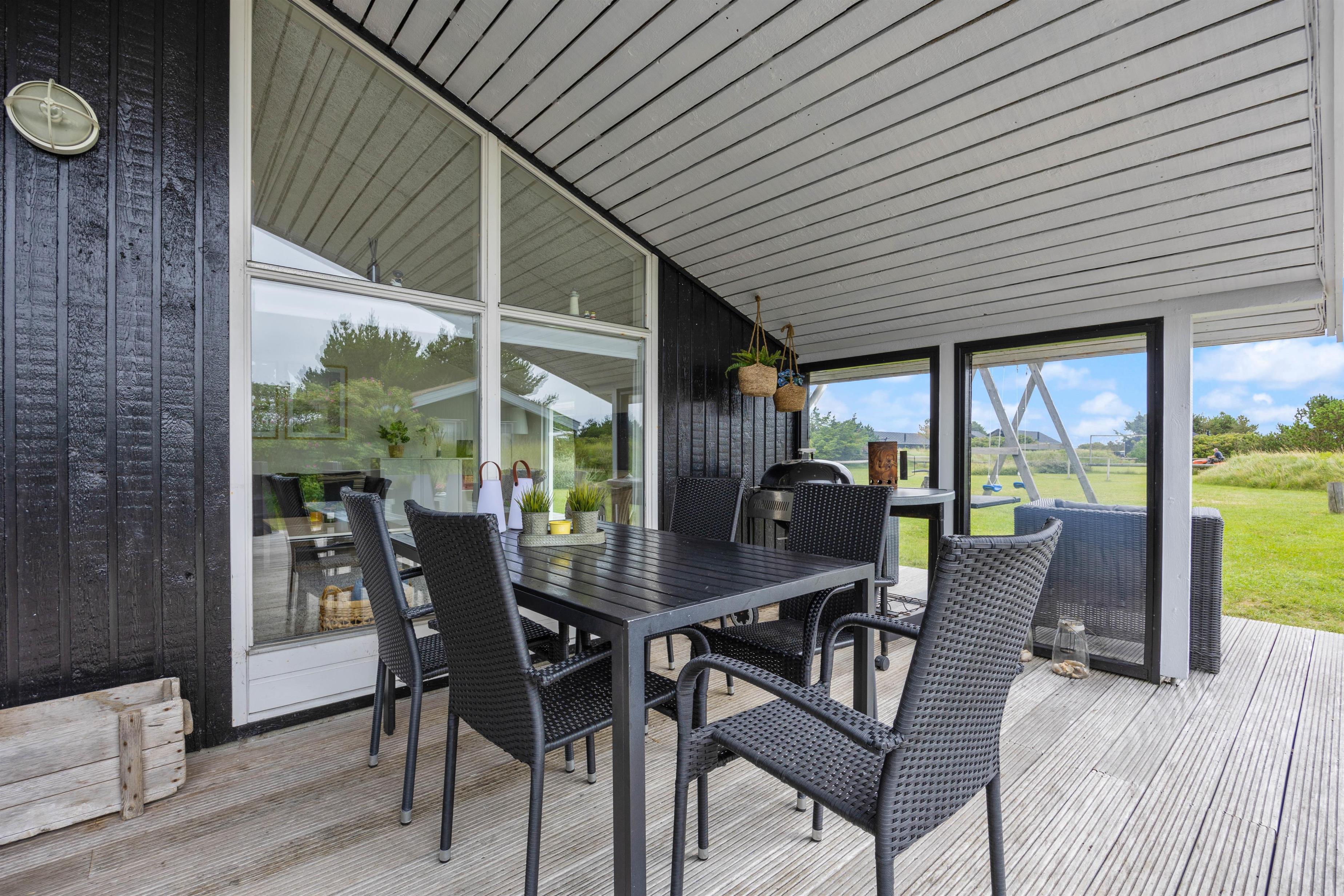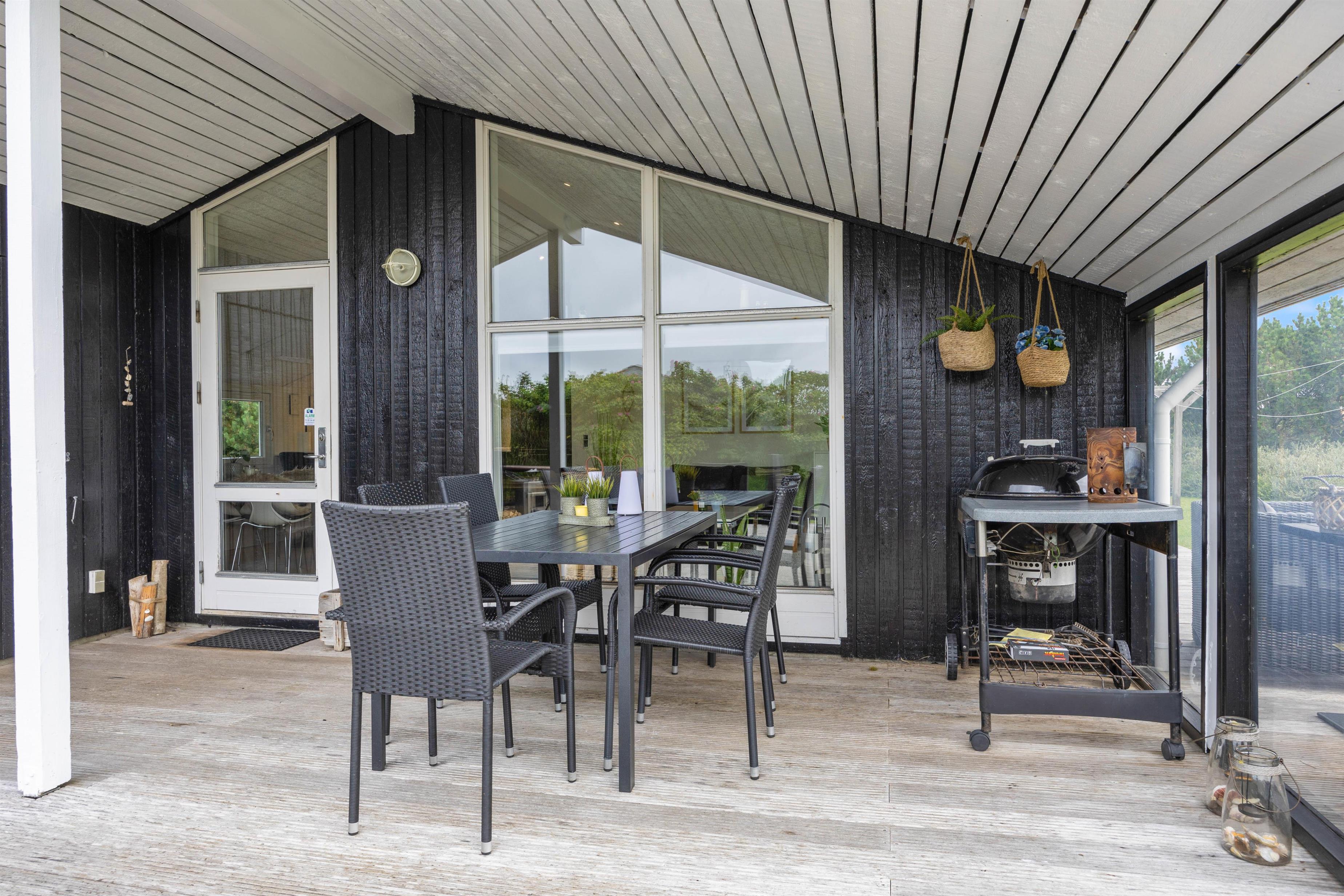 Gennem terrassedøren i opholdsrummet kommer I ud på den skønne syd- og østvendte, delvist overdækkede, terrasse. Terrassen fortsætter hele vejen rundt om huset, så der er altid et dejligt læfyldt sted at finde, lige meget på hvilket tidspunkt af døgnet.