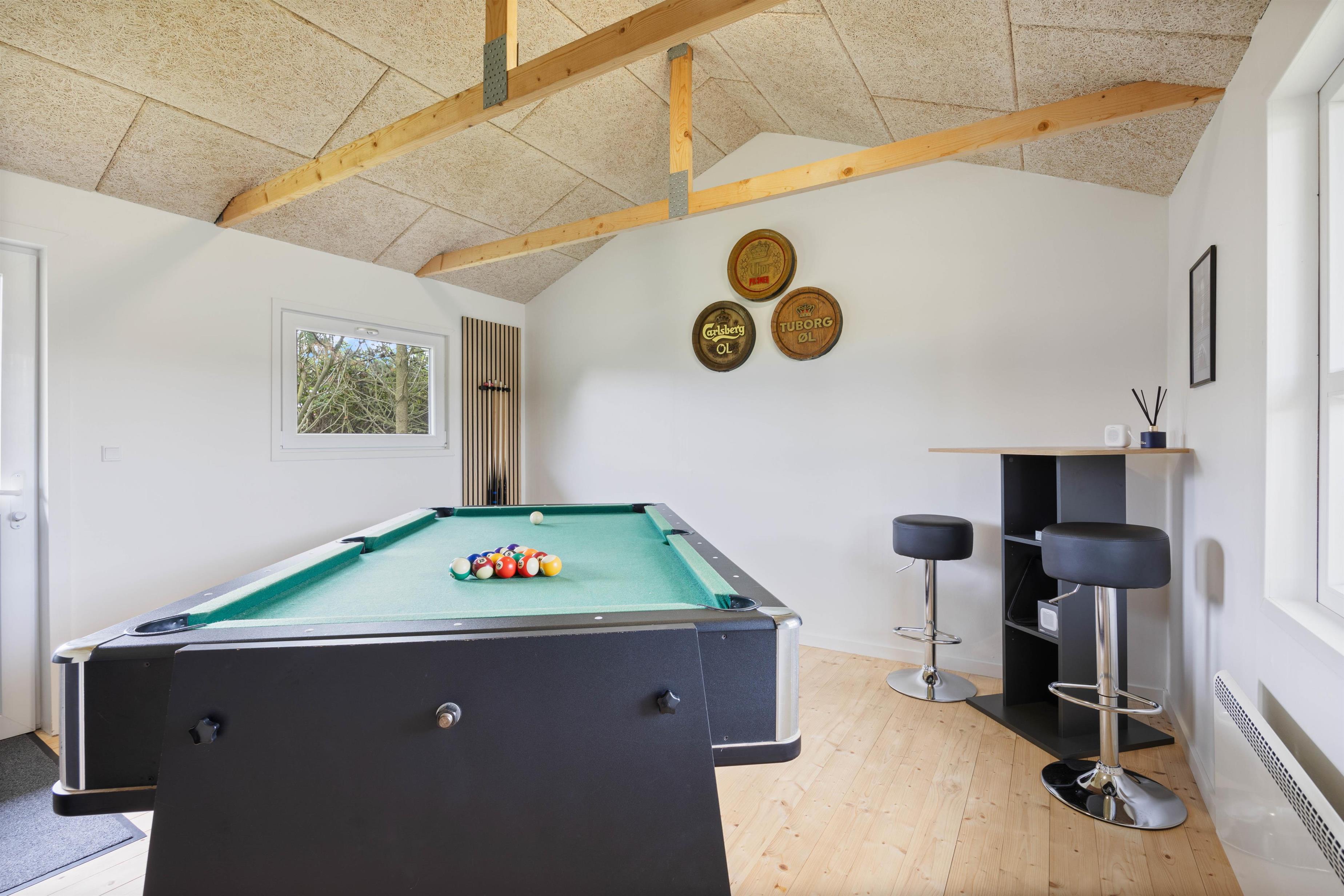 Til de konkurrencemindede iblandt jer er der lavet et aktivitetsrum med både poolbillard og bordtennis. Her kan I konkurrere lige så højlydt og i lige så lang tid I har lyst til, uden at forstyrre roen foran brændeovnen for resten af familien.