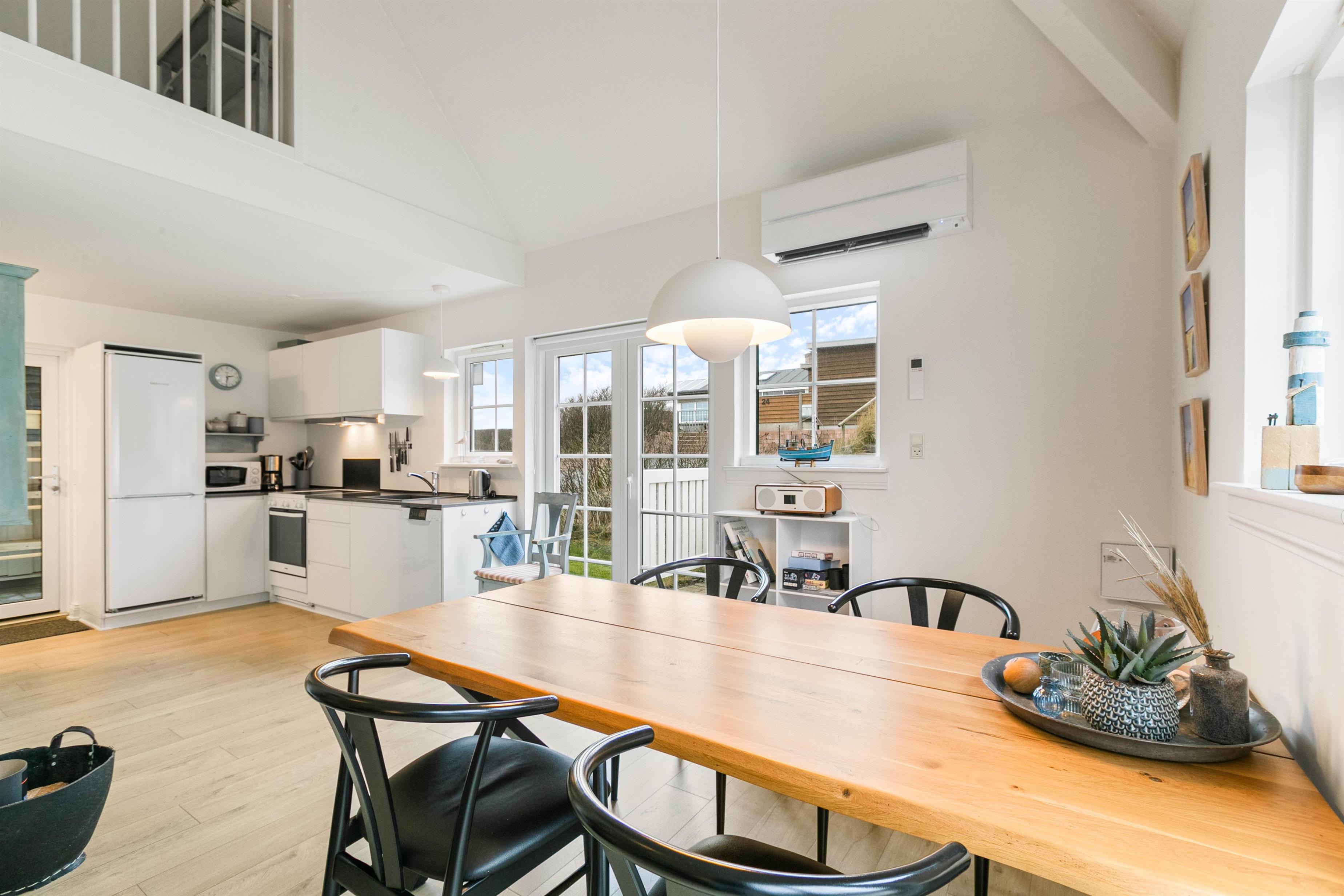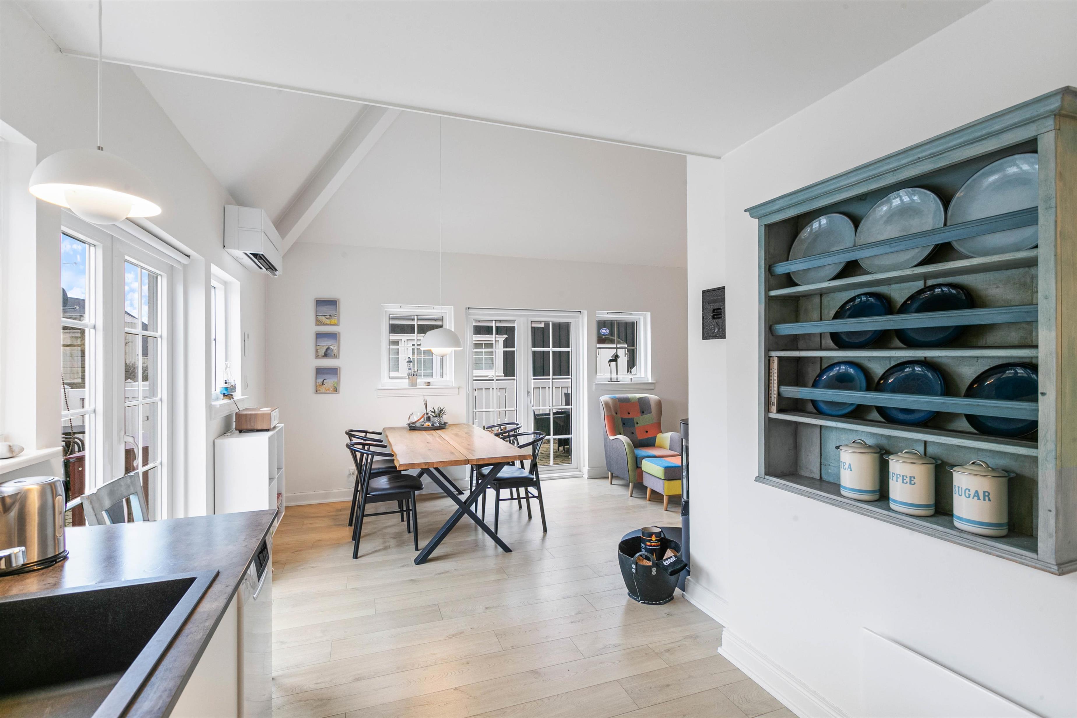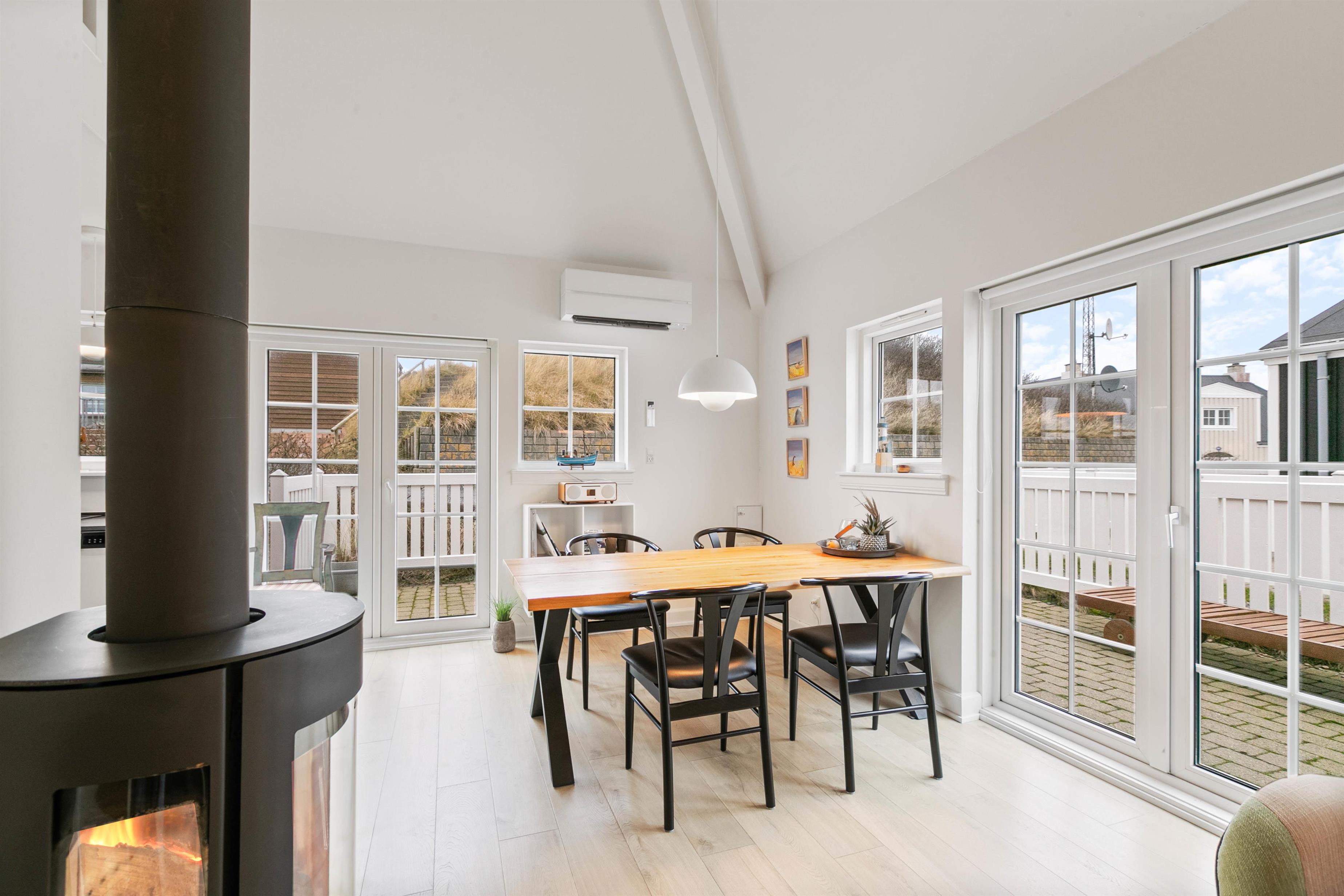 Efter en dag fyldt med udendørs aktiviteter kan I sætte jer til rette i den dejlige sofakrog foran brændeovnen og nyde en varm kop kakao eller se en film på tv'et. Denne komfortable og hyggelige krog er det perfekte sted at slappe af og reflektere over dagens oplevelser. Imens sørger en energisparende luft til luft varmpumpe for et behageligt indeklima.