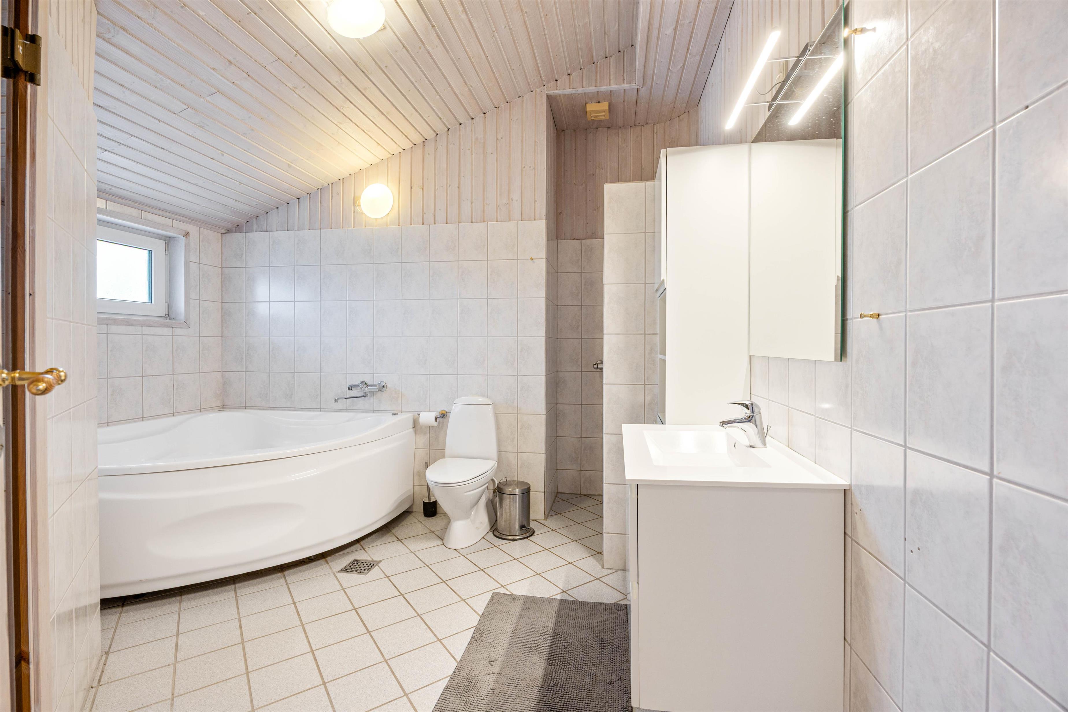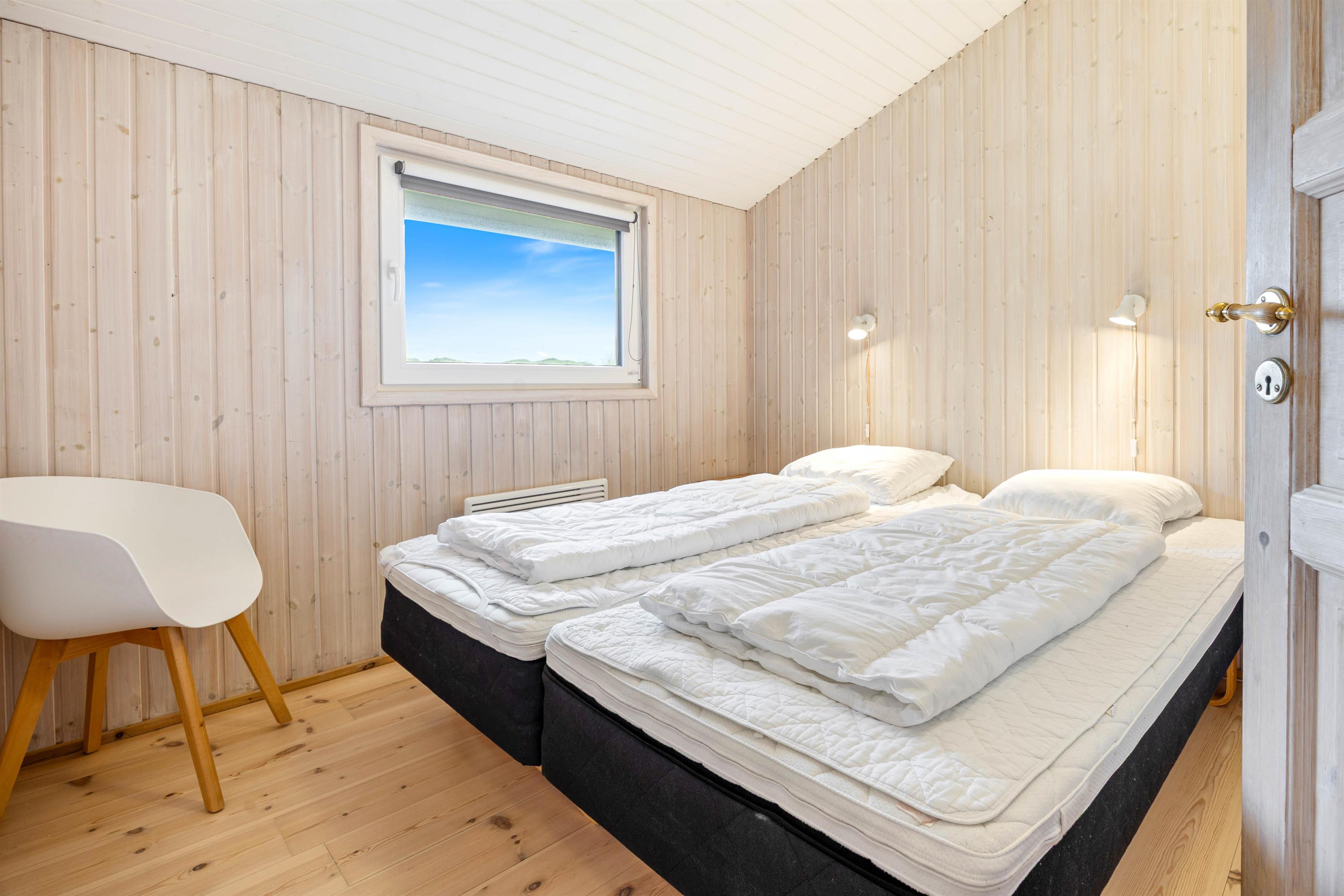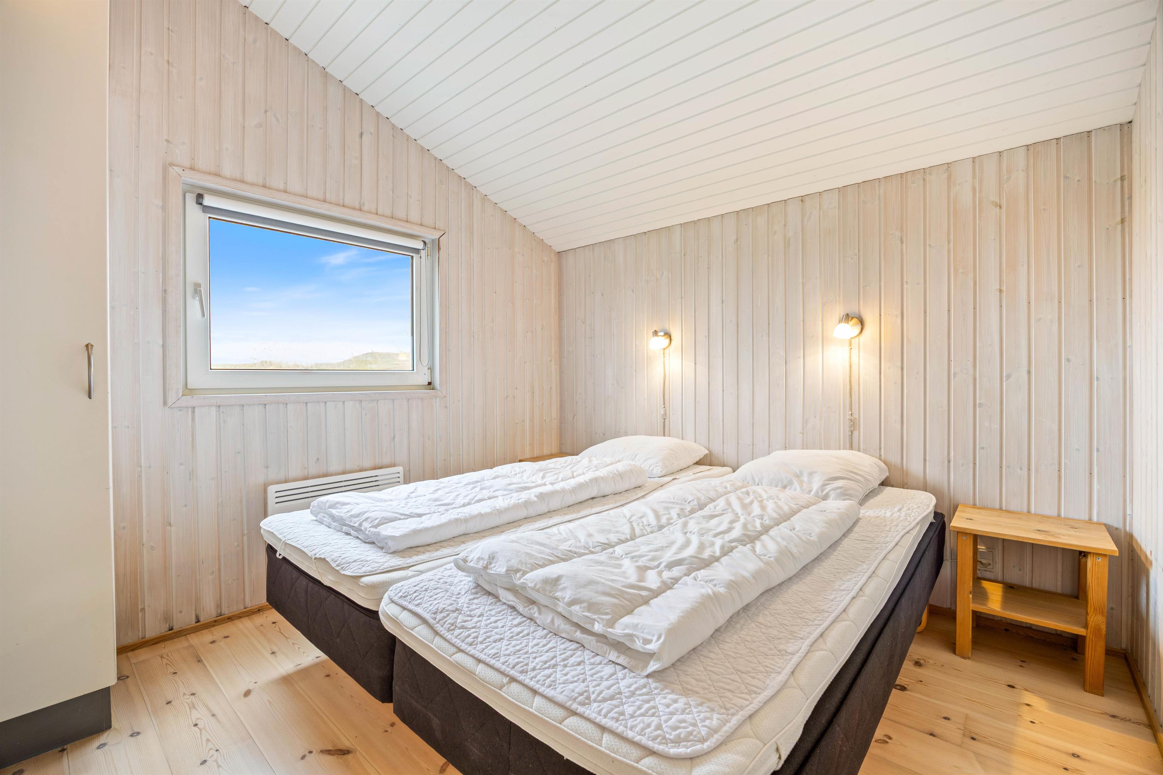 Med en samlet boligareal på 112m2 er der masser af plads til at sprede sig og slappe af. Dette dejlige sommerhus er godt indrettet med 3 soveværelser, alle med gode dobbeltsenge og trægulve, hvilket gør at den kan byde op til seks gæster velkommen. Der er et dejlig lyst badeværelse med gulvvarme, bruseniche, spabad og indgang til sauna. Derudover er der et mindre gæstetoilet.