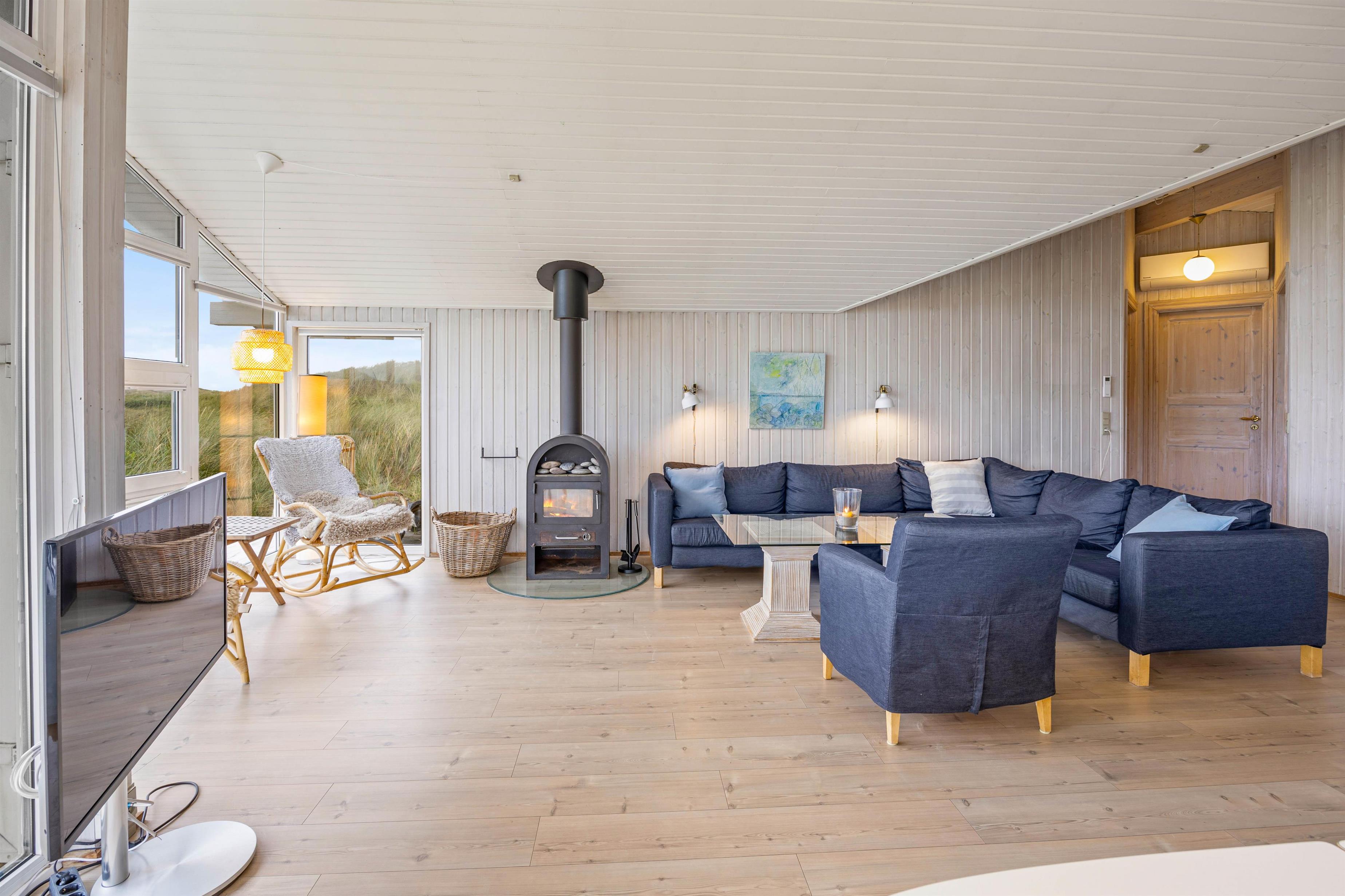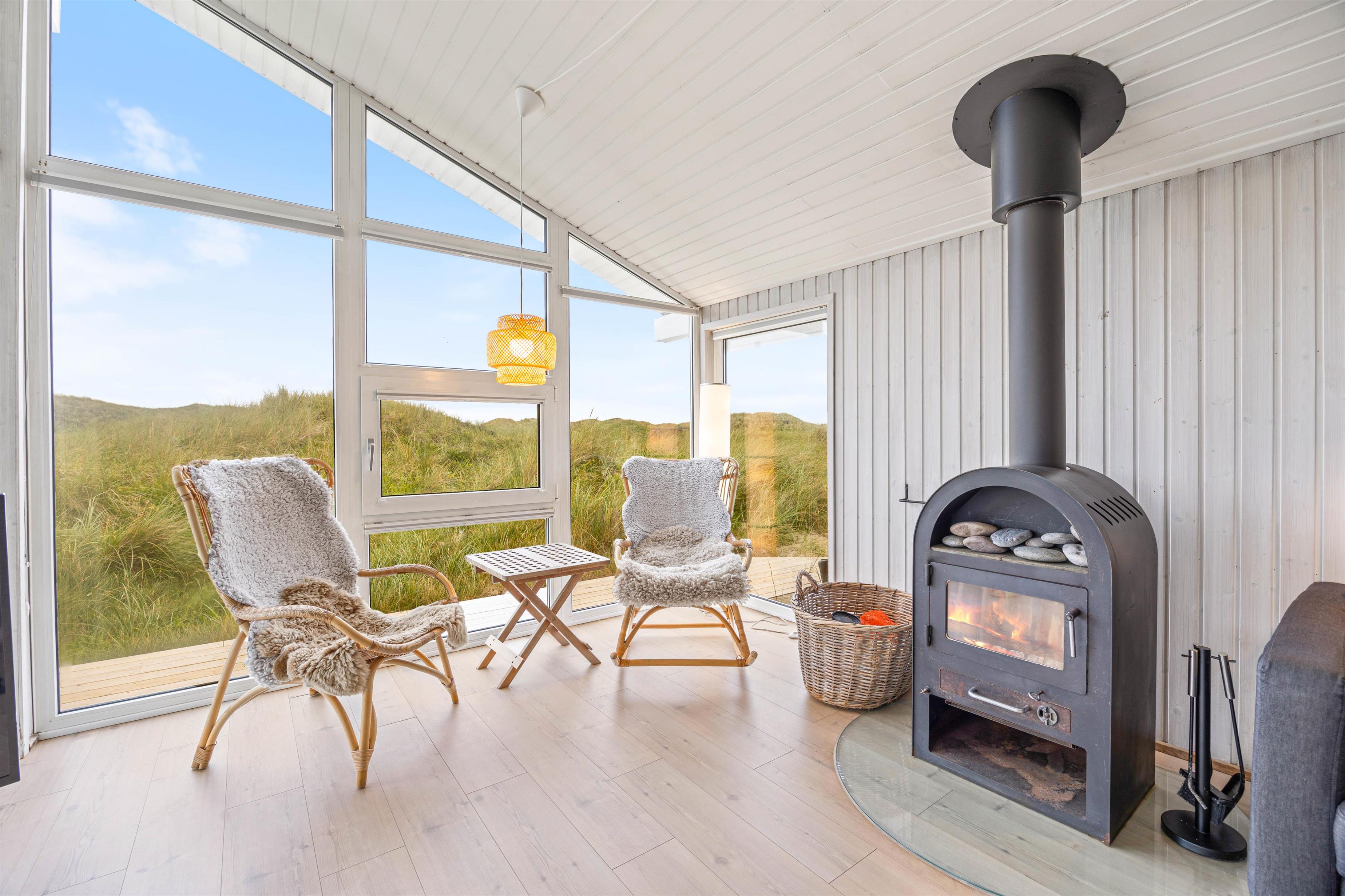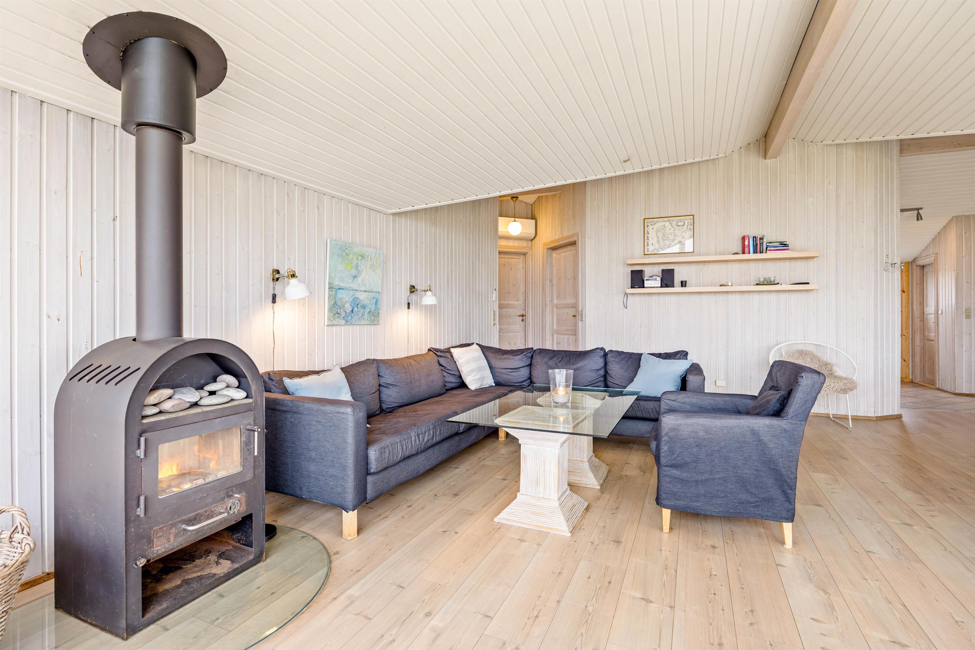 Indendørsfaciliteterne her er mange og inkluderer blandt andet en brændeovn og en luft-til-luft varmepumpe, så I altid kan nyde en ideel temperatur. Efter en dag fuld af aktiviteter, kan I lade musklerne slappe af i den private sauna eller tømmespaen. Køkkenet er godt og funktionelt og udstyret med bl.a. opvaskemaskine, mikroovn og en 30 liters fryser. Der er desuden vaskemaskine, tørretumbler og gratis trådløst internet i dette dejlige sommerhus.