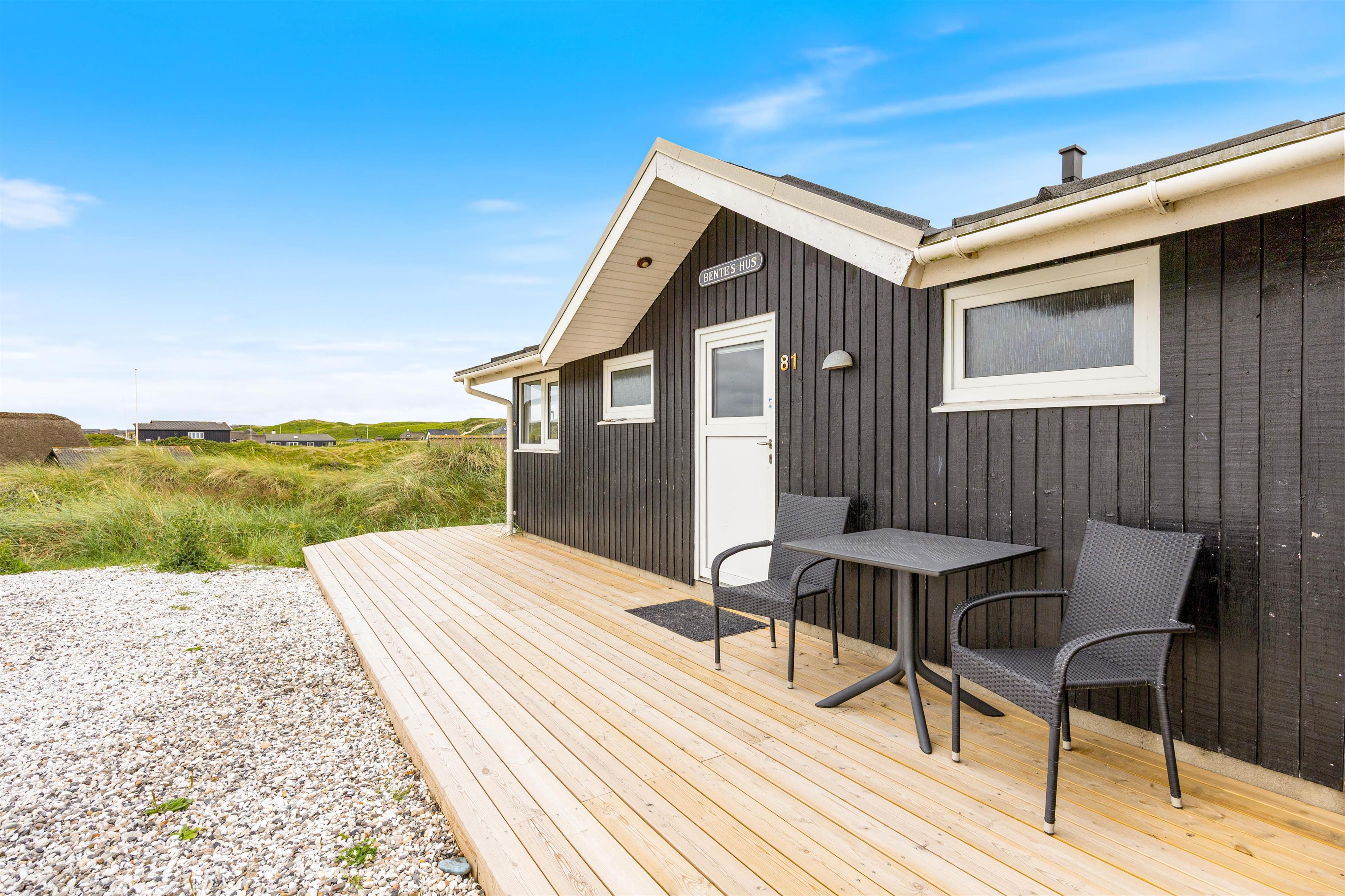 Her på Holdvej 81 finder I et rigtig dejligt sommerhus med en fantastisk beliggenhed på en superskøn kuperet klitgrund, der grænser op til et fredet område. Med en beliggenhed kun 150 meter fra det brusende hav, kan i nyde uforstyret nyde den friske luft, som kommer strømmende lige fra havet. Samtidig med I bor I naturskønne områder, er der blot 800 meter til de nærmeste indkøbsmuligheder, sikrer dette sommerhus de bedste betingelser for en uforglemmelig ferie.