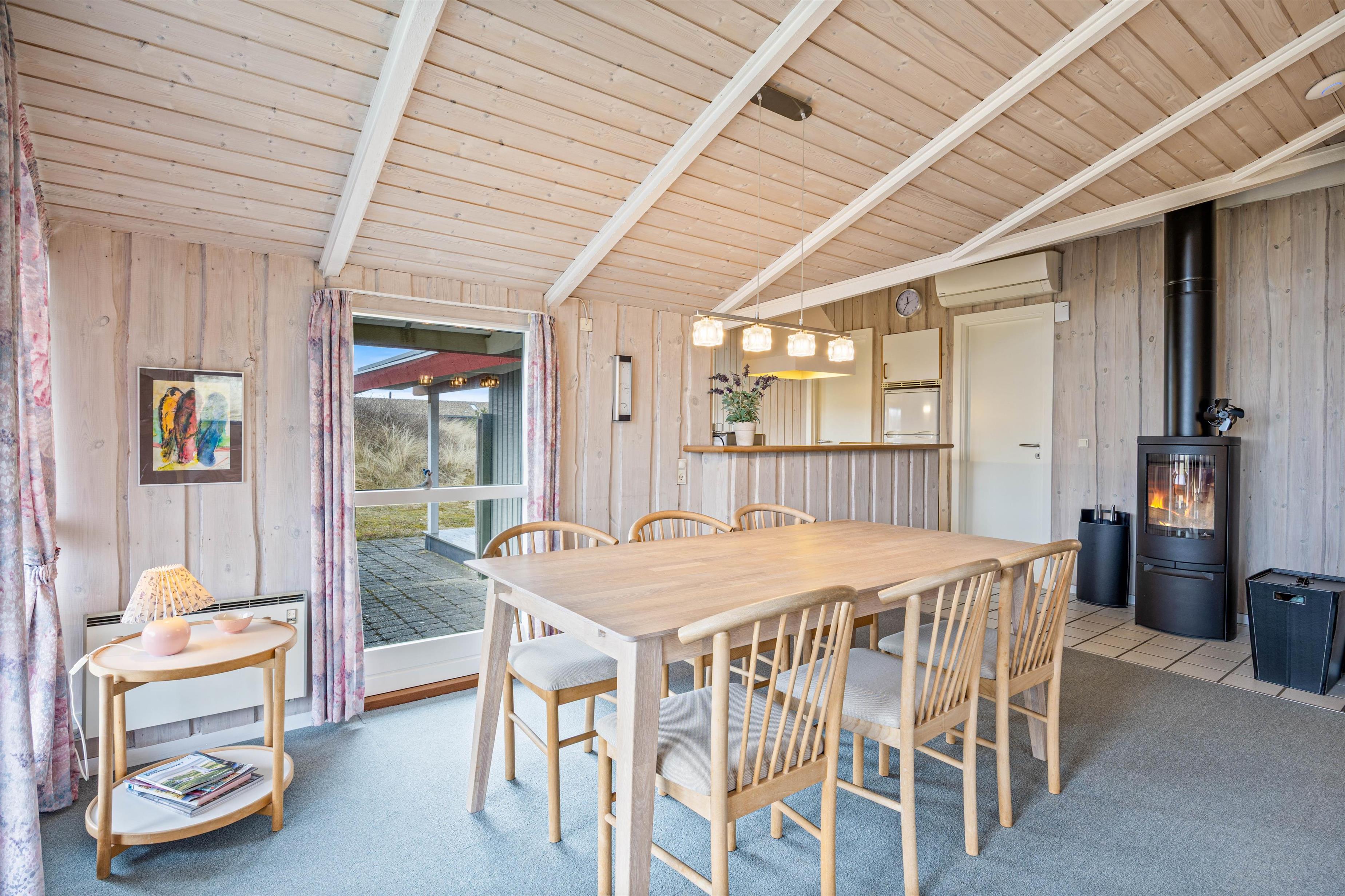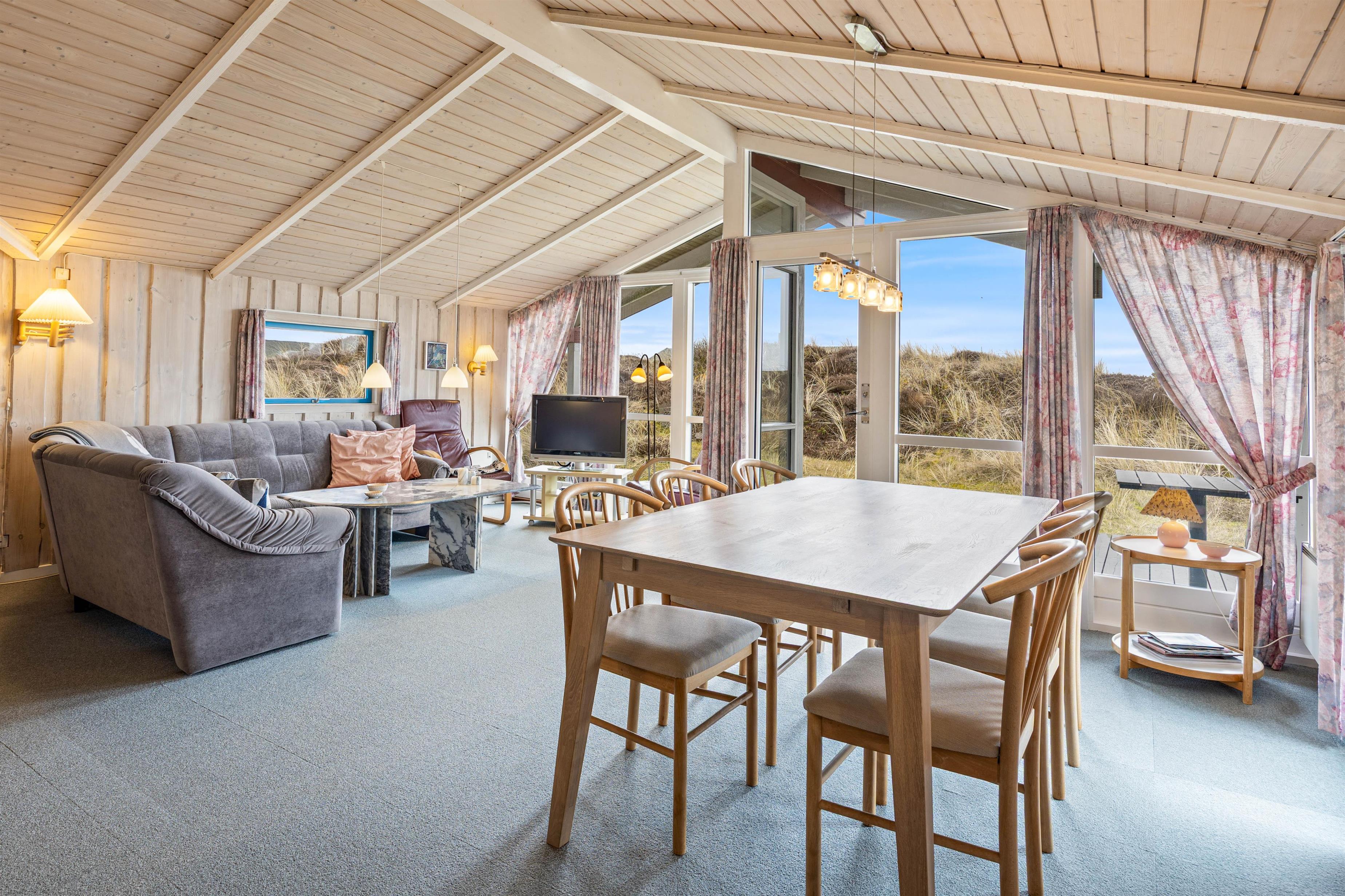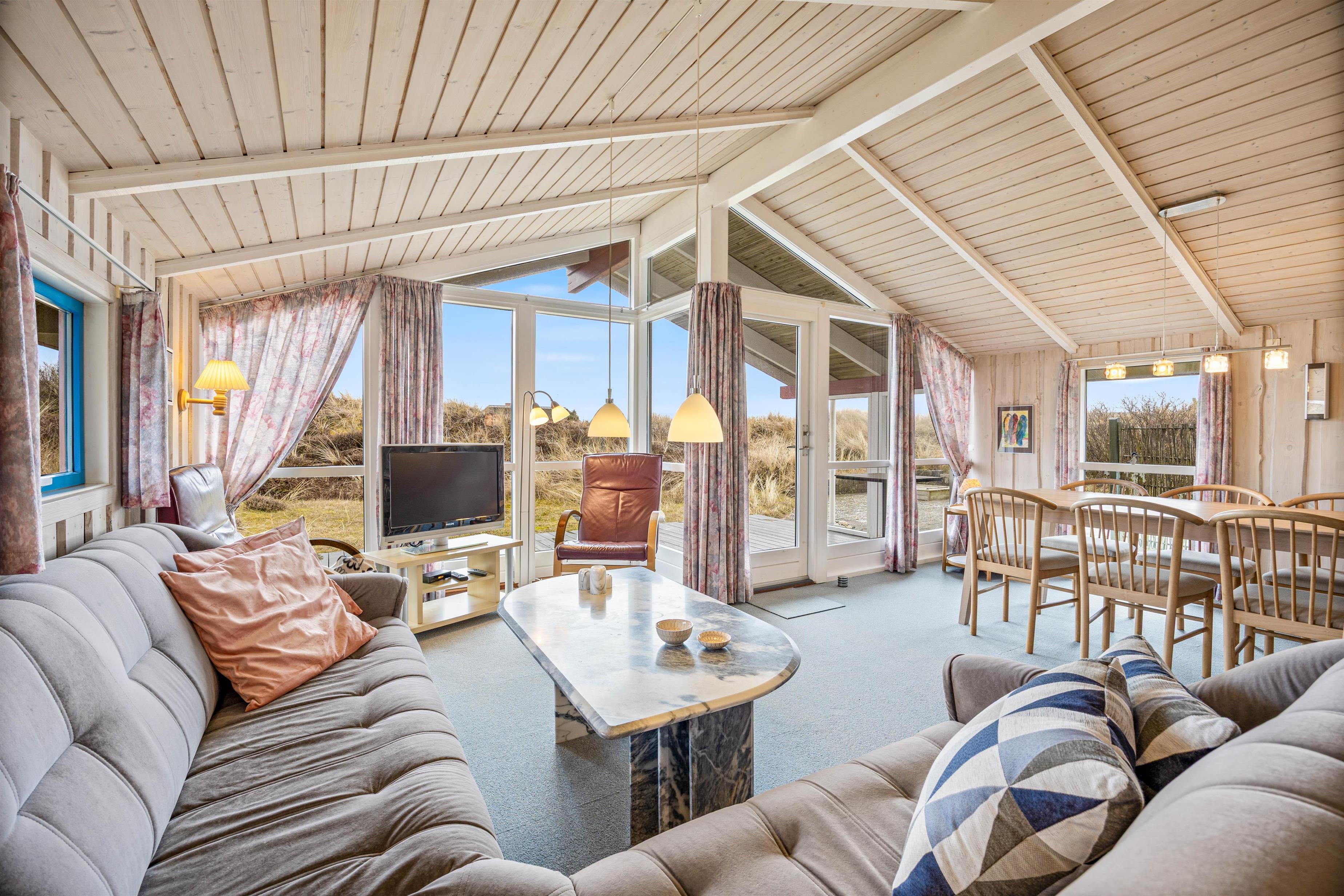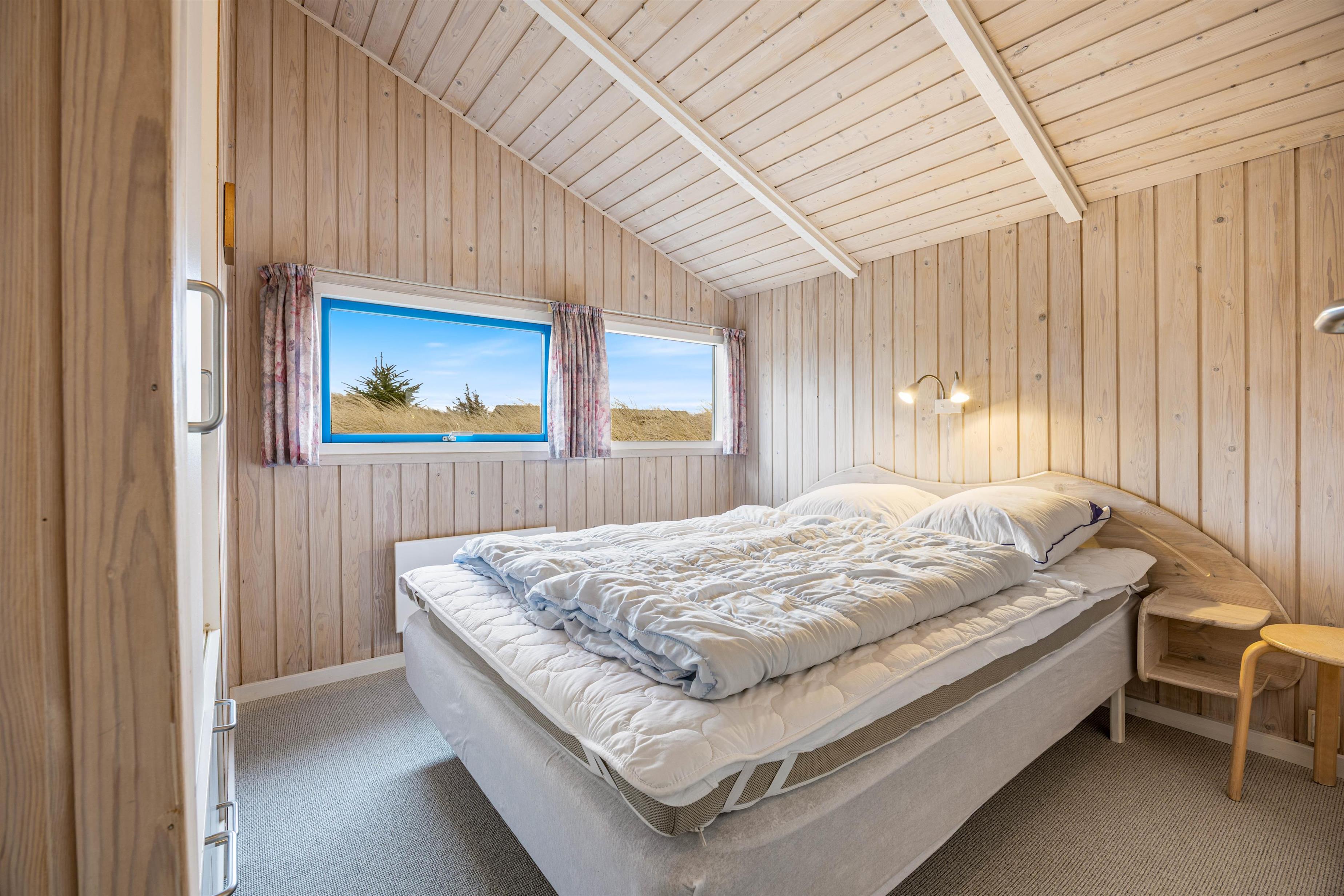 Fra sommerhuset er der kun 650 meter til Vesterhavet, hvor kilometerlange, hvide sandstrande indbyder til lange gåture. Er I friske, kan I tage en forfriskende dukkert i det brusende hav. Derudover ligger badebyen Søndervig kun 2,5 km fra huset, hvor I finder gode indkøbsmuligheder, hyggelige caféer og spændende butikker.