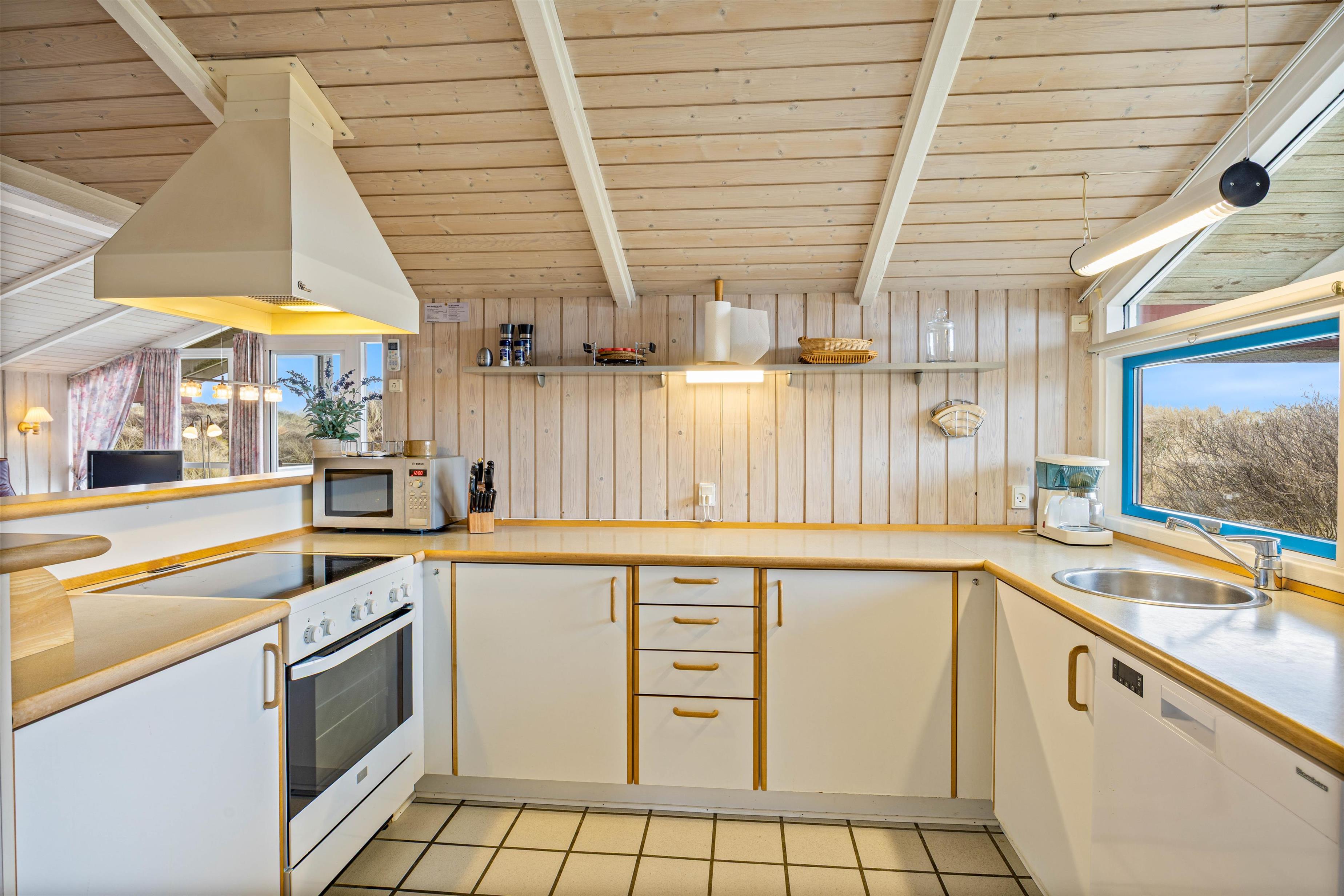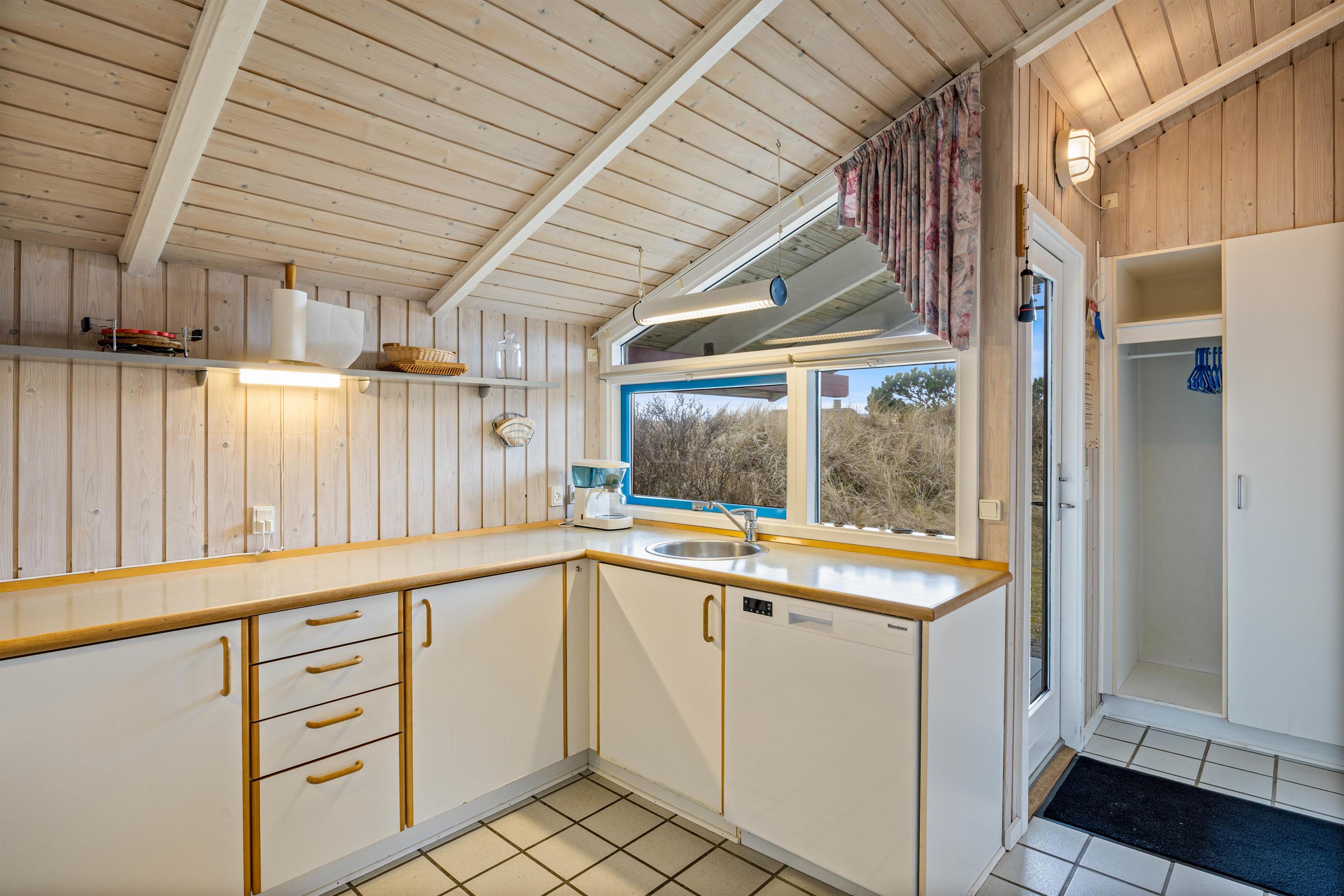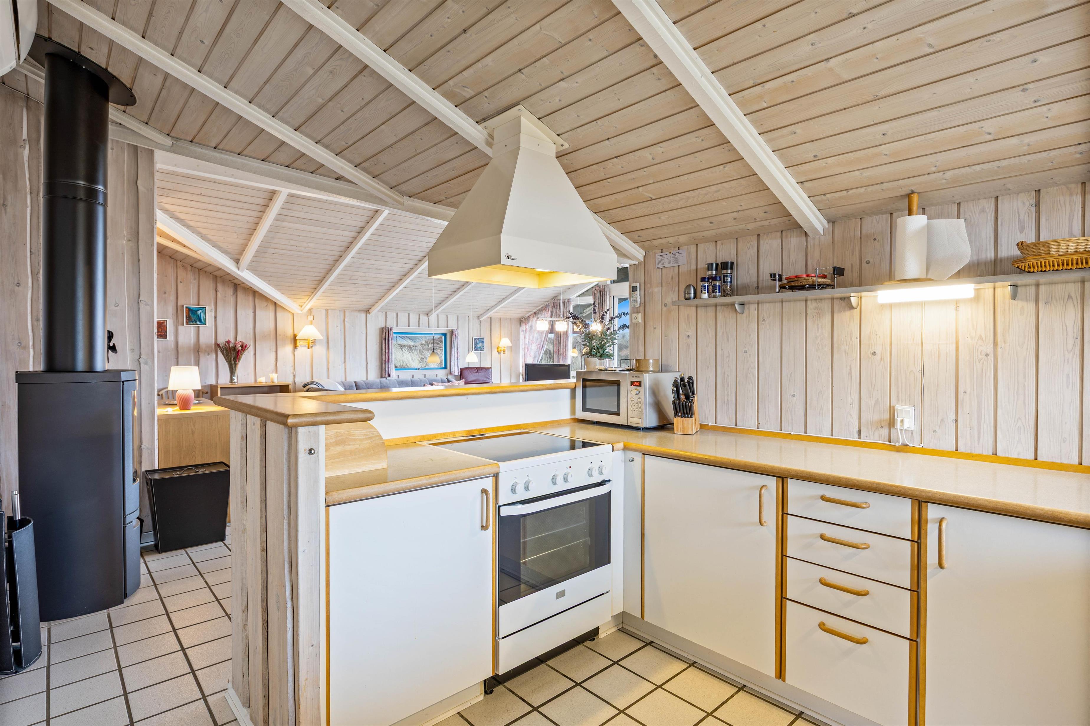 Sommerhusets køkken er veludstyret med det nødvendige til madlavning og har desuden opvaskemaskine, som klarer opvasken. Til ekstra opbevaring er der en separat fryser på 40 liter.