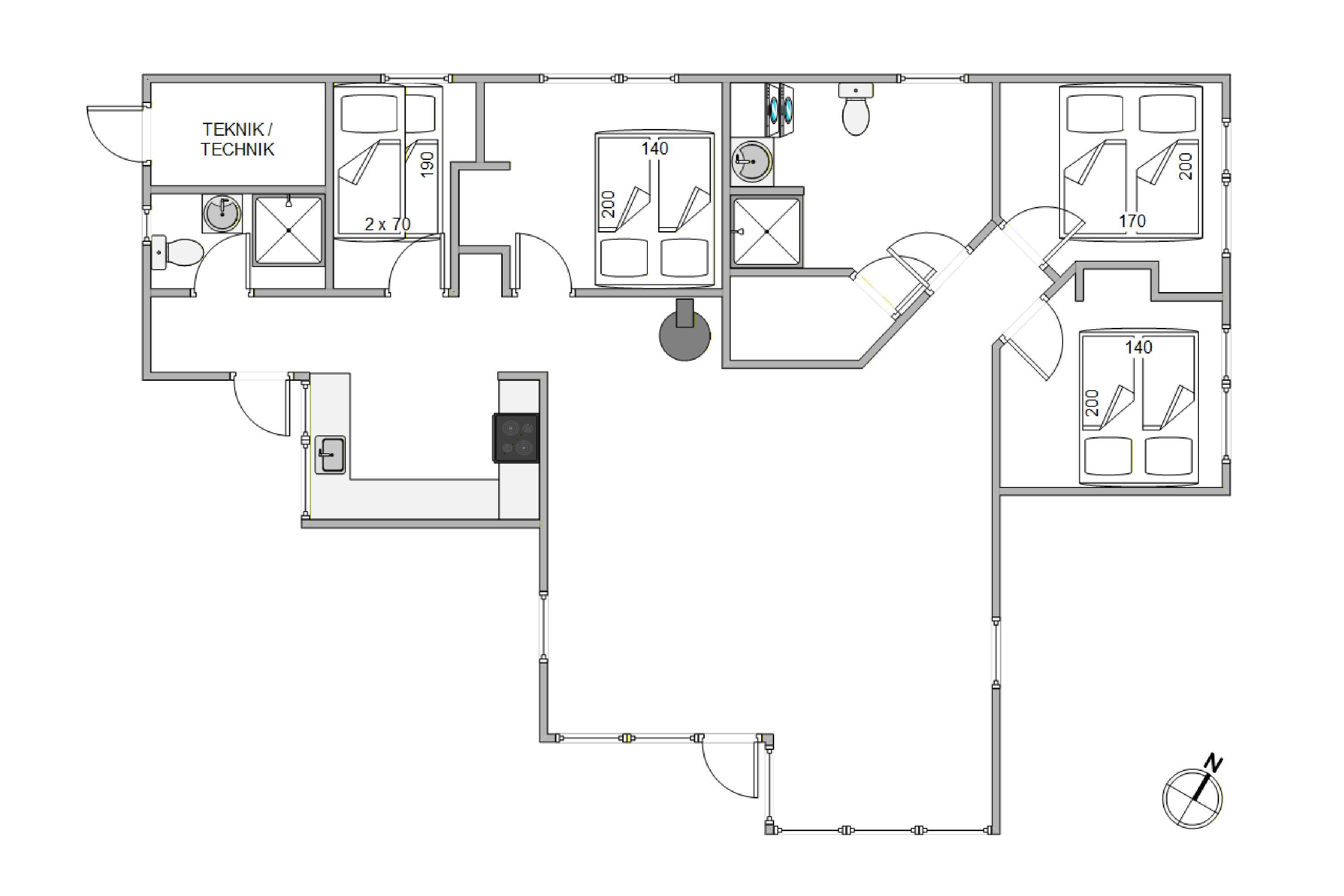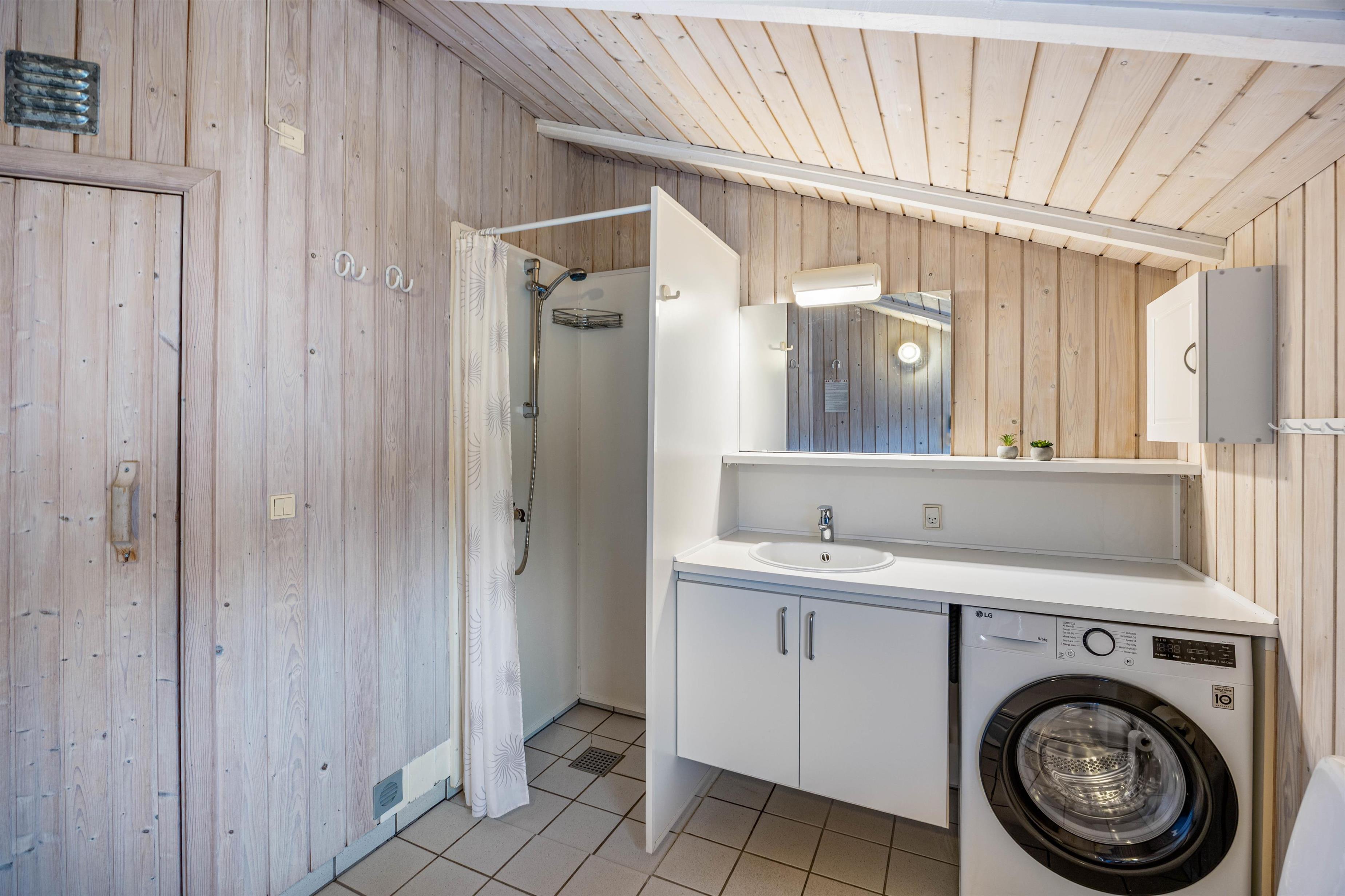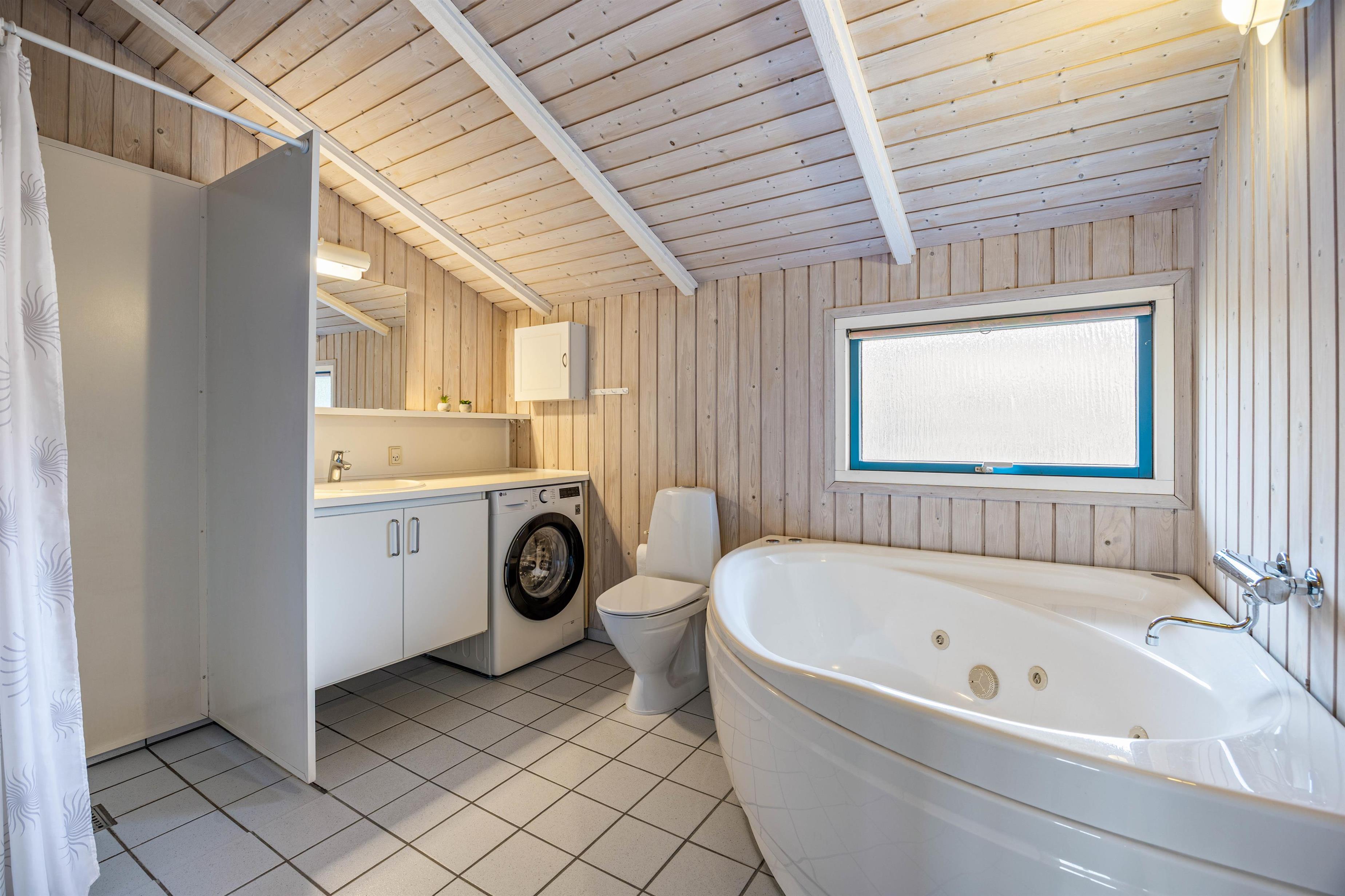 Huset har 2 badeværelser, der begge har gulvvarme, hvilket er praktisk, når hele familien er samlet. Derudover er der en kombimaskine, der indeholder en vaskemaskine og tørretumbler, så I kan nøjes med at pakke det mest nødvendige ferietøj. I det store badeværelse finder I også en dejlig spa, hvor I kan slappe af og nyde det boblende vand. Efterfølgende kan I fortsætte i saunaen og blive gennemvarme fra top til tå – en perfekt afslutning på en god feriedag.
