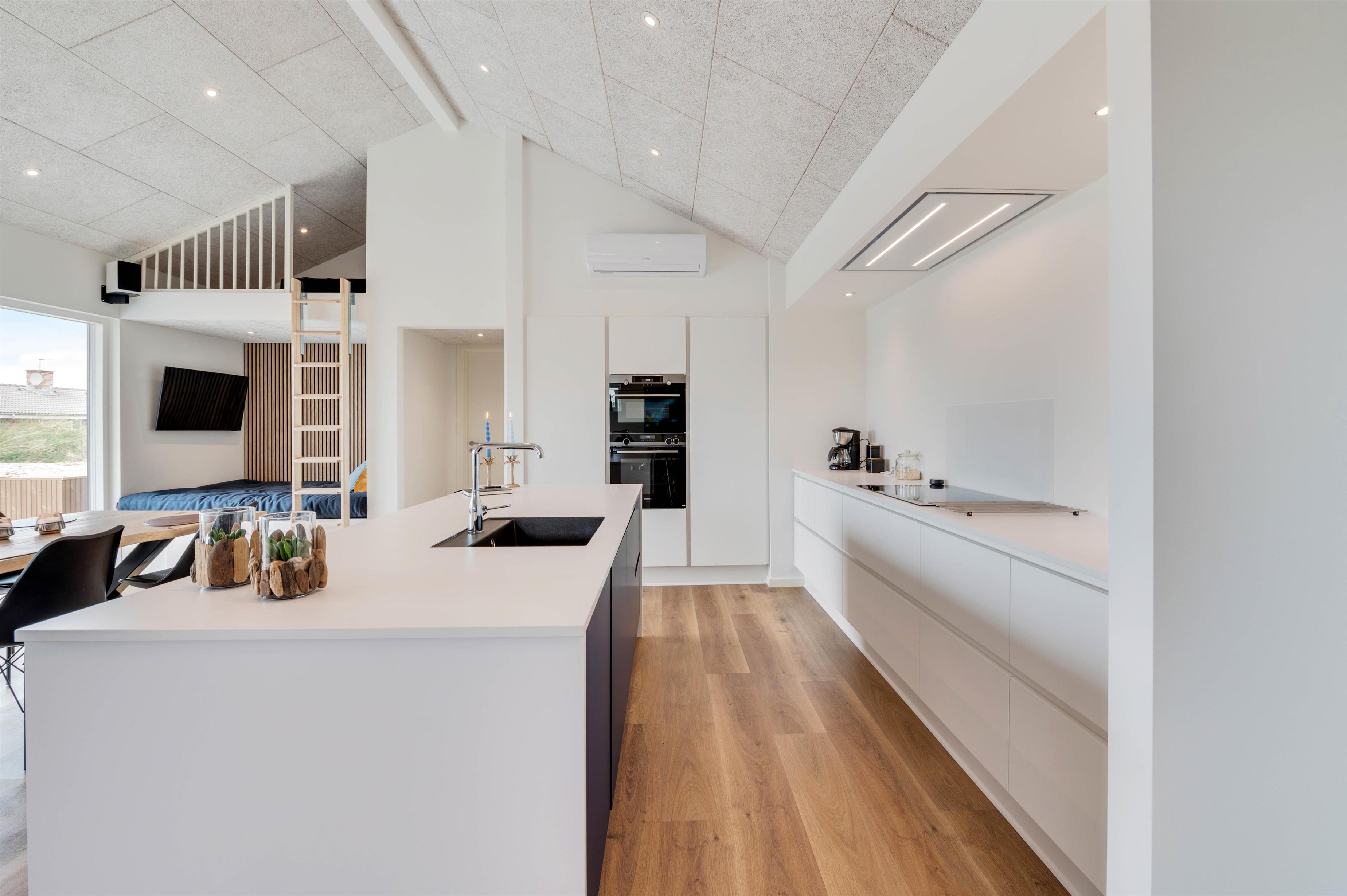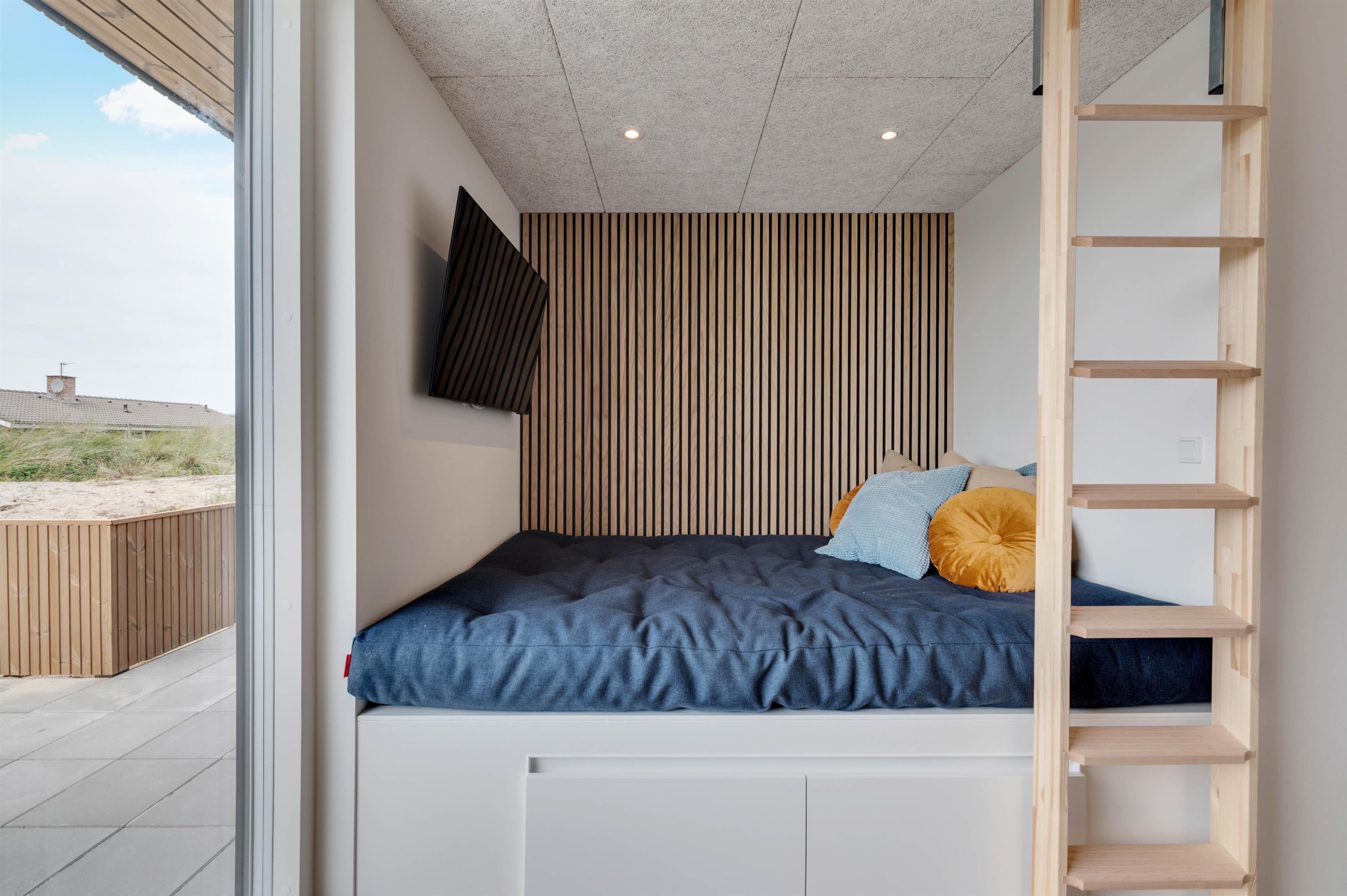 Alrummet er indrettet med en hyggelig alkove, der er et godt spot til en middagslur eller lidt afslapning med en god bog. Sommerhusets hems vil helt sikkert falde i god jord hos børnene, og så er samtlige 5 fjernsyn i ferieboligen udstyret med Chromecast samt Apple Airplay, så I har mulighed for at streame jeres yndlingsfilm og -serier. Der er også trådløse bluetooth højtalere op i stue og køkken.