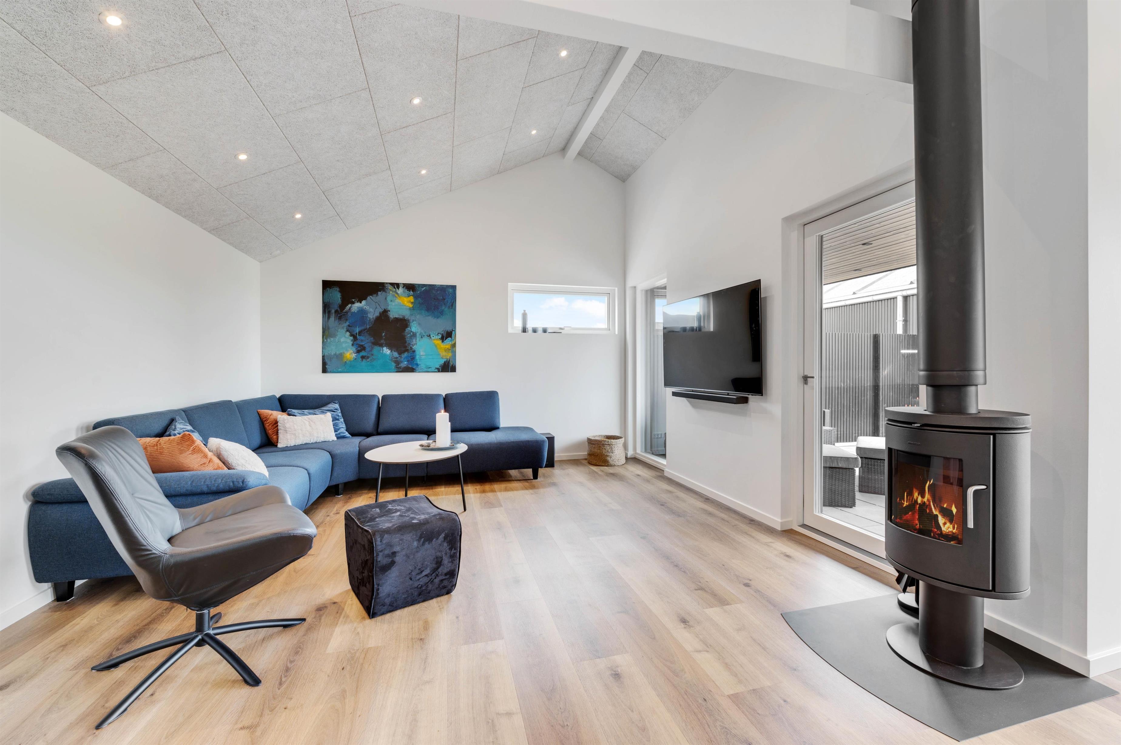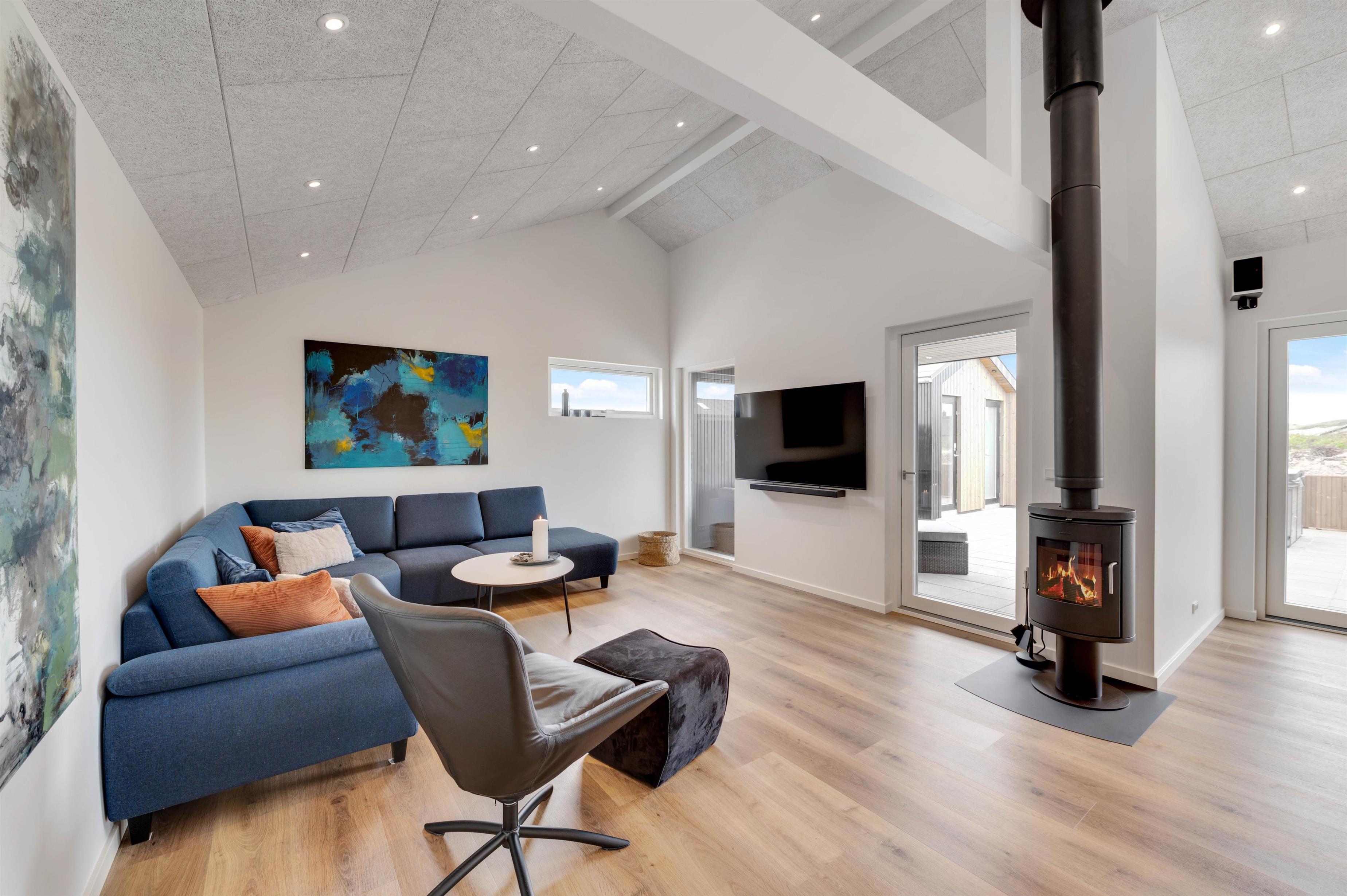 Moderne sommerhus til seks personer med stilfuld indretning, brændeovn og grill