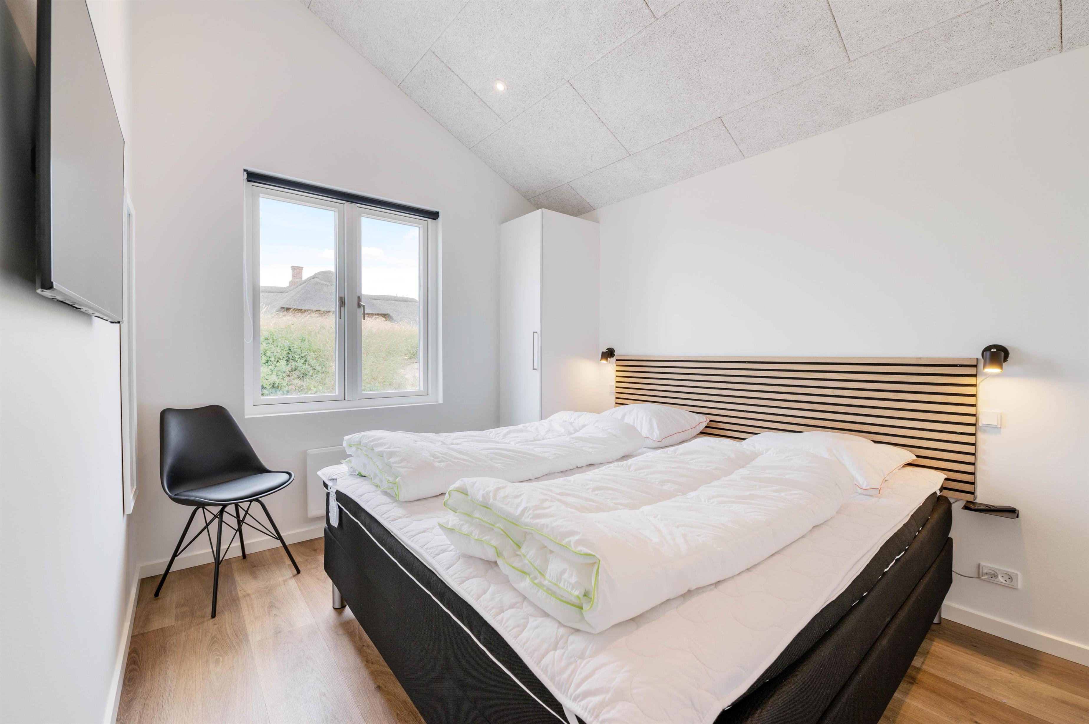 Sommerhuset er opført i 2021 og har plads til seks personer. Her får I god plads at brede jer ud på, og den flotte, stilfulde indretning fungerer som rød tråd gennem hele feriehuset og skaber den helt rigtige atmosfære. Opholdsrummet er indrettet med brændeovn, så den klassiske feriehygge er bevaret, og der er 2 badeværelser i sommerhuset, så I slipper for lange køer til brusebadet om morgenen.