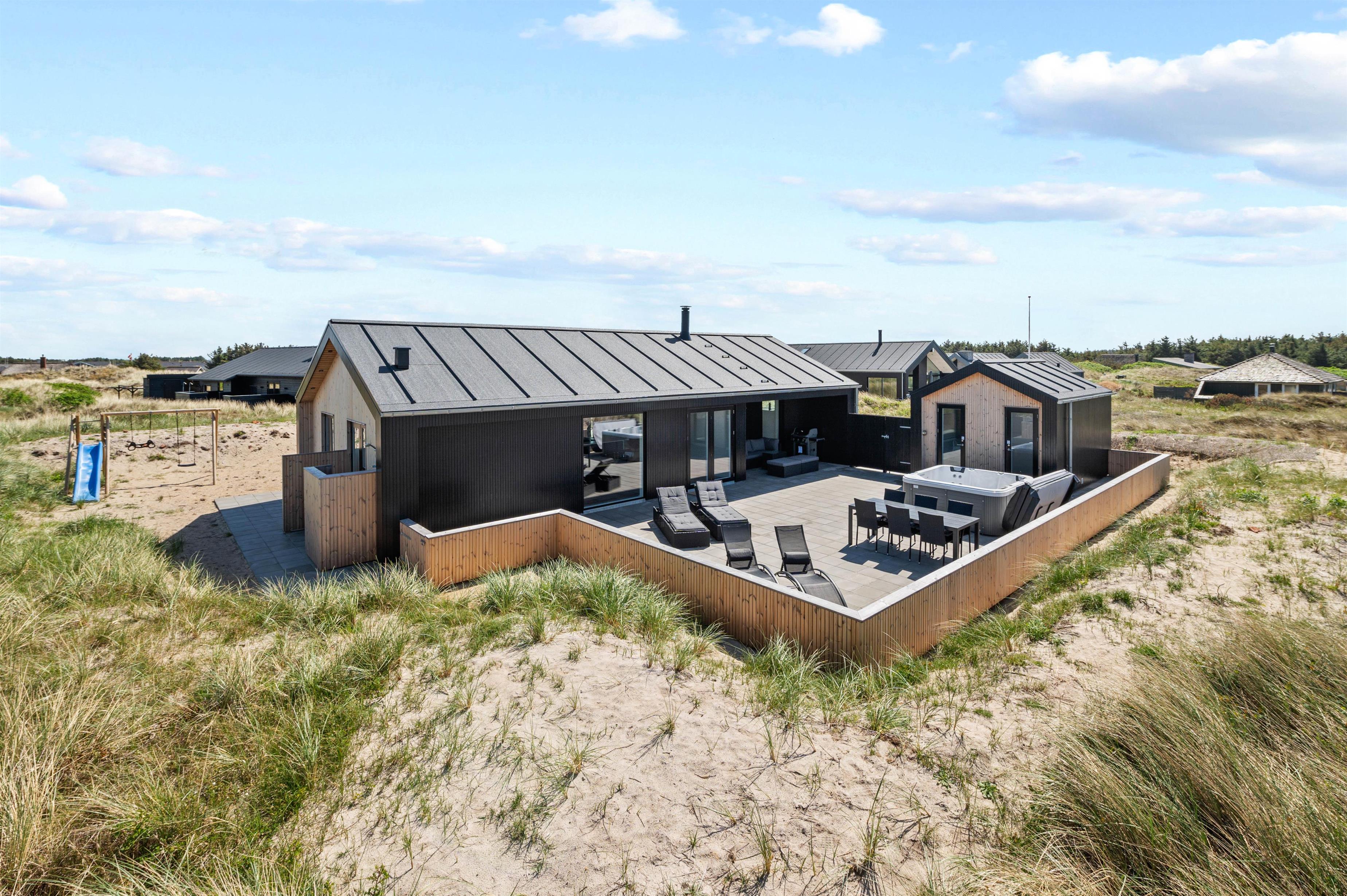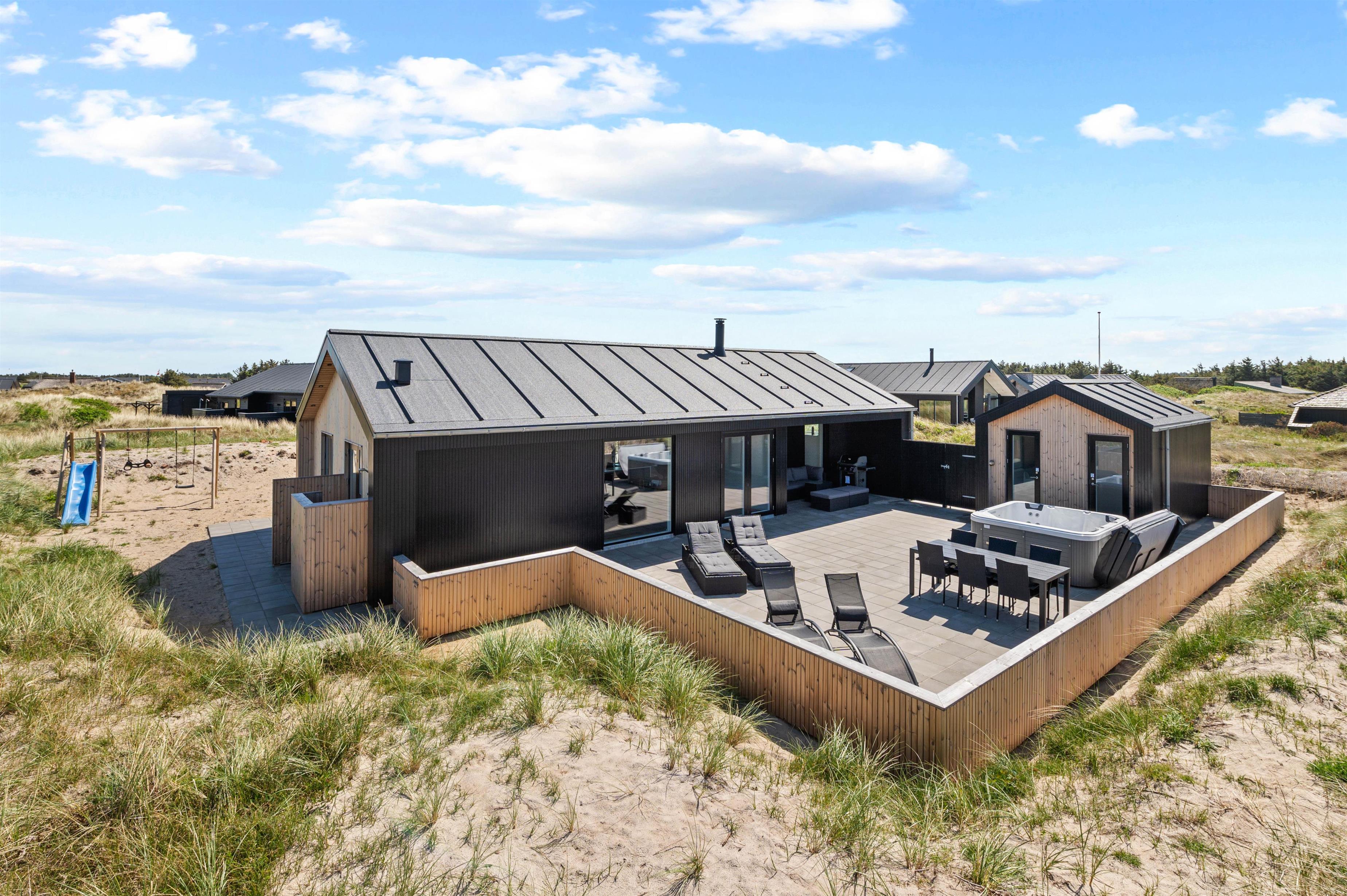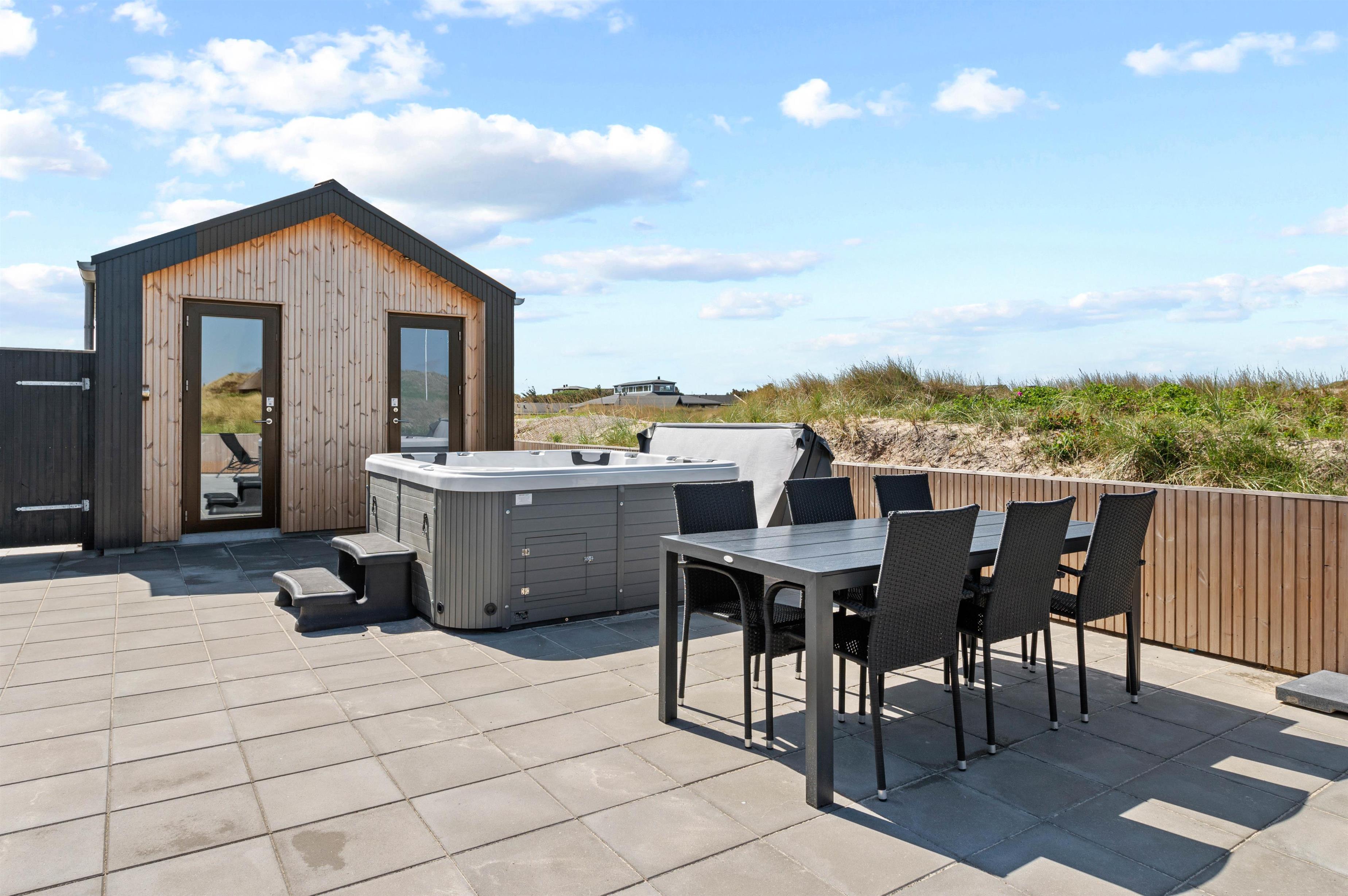 Dette detaljerige sommerhus på Nordsøvej 414 sætter på alle måder rammerne for en femstjernet ferie ved Vesterhavet. Ikke mindst på grund af det fantastiske uderum, der hører med til sommerhuset. På den store lukkede terrasse får I nemlig jeres helt egen private wellnessoase med udespa, hvor I kan nyde ferien og slå helt koldt vand i blodet.