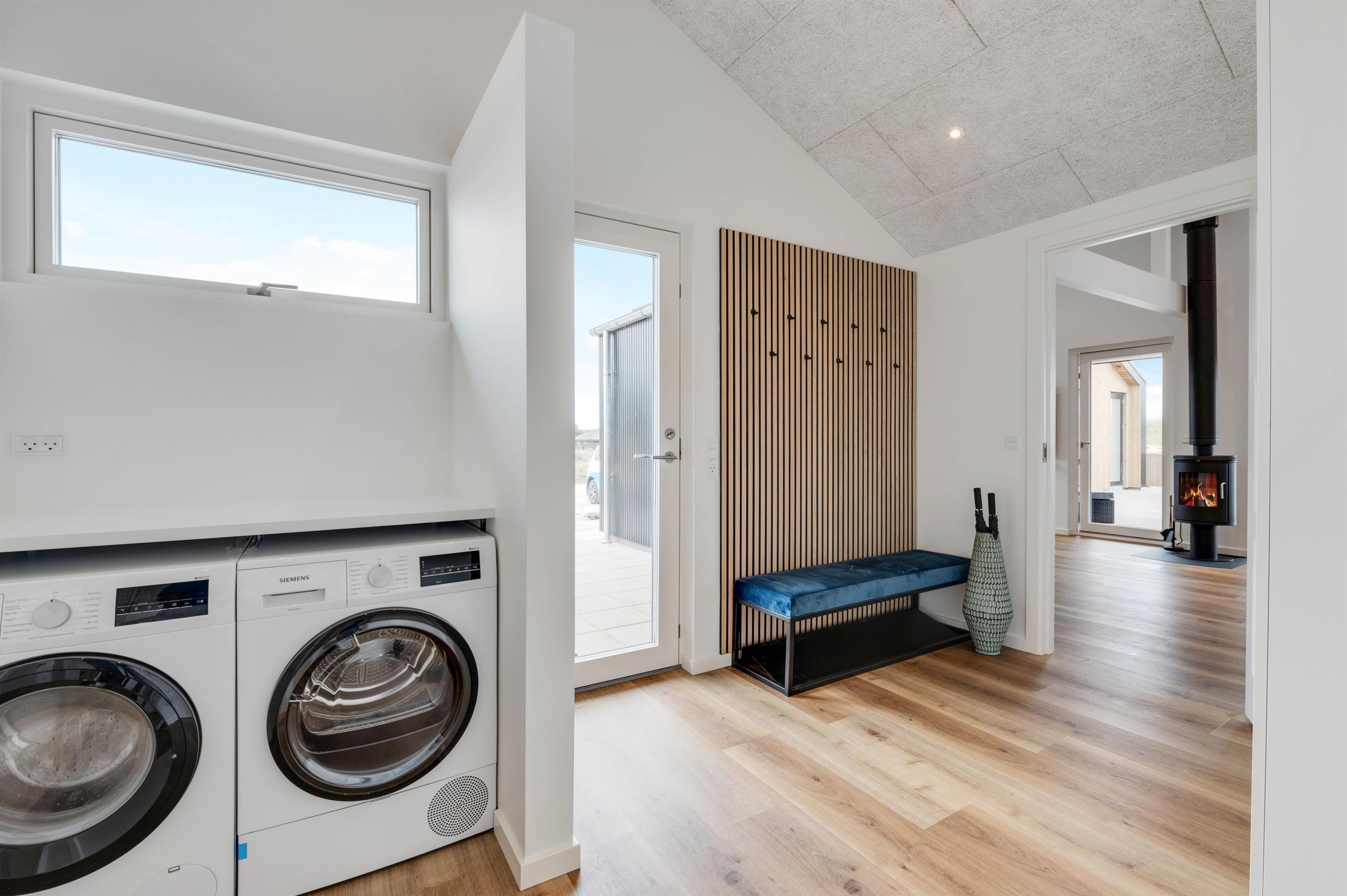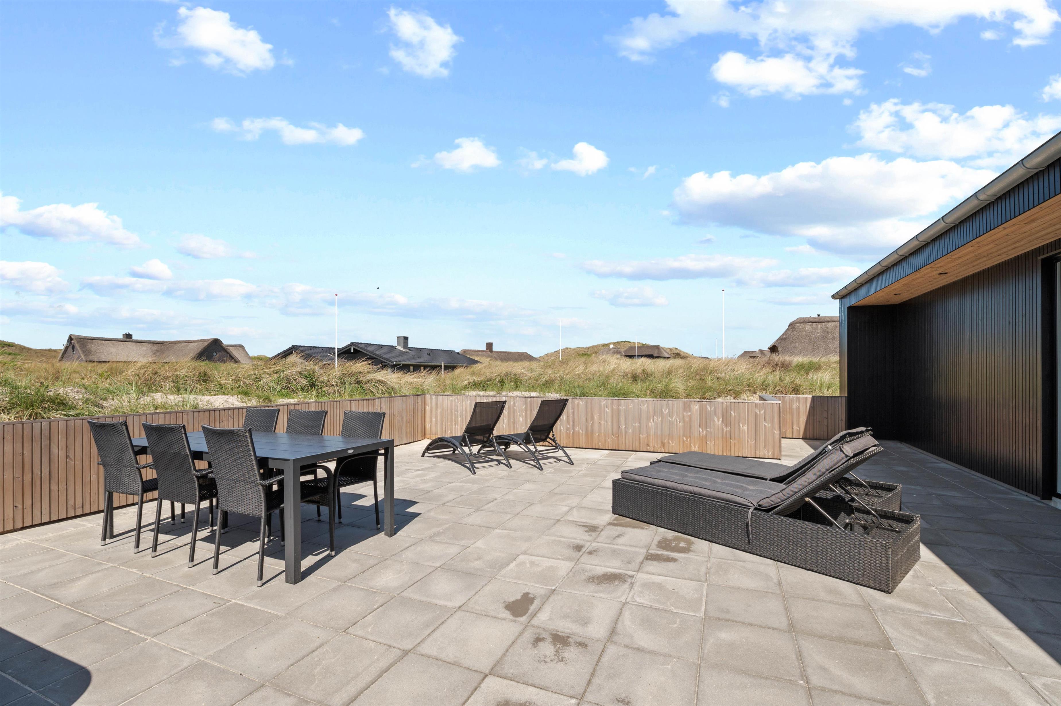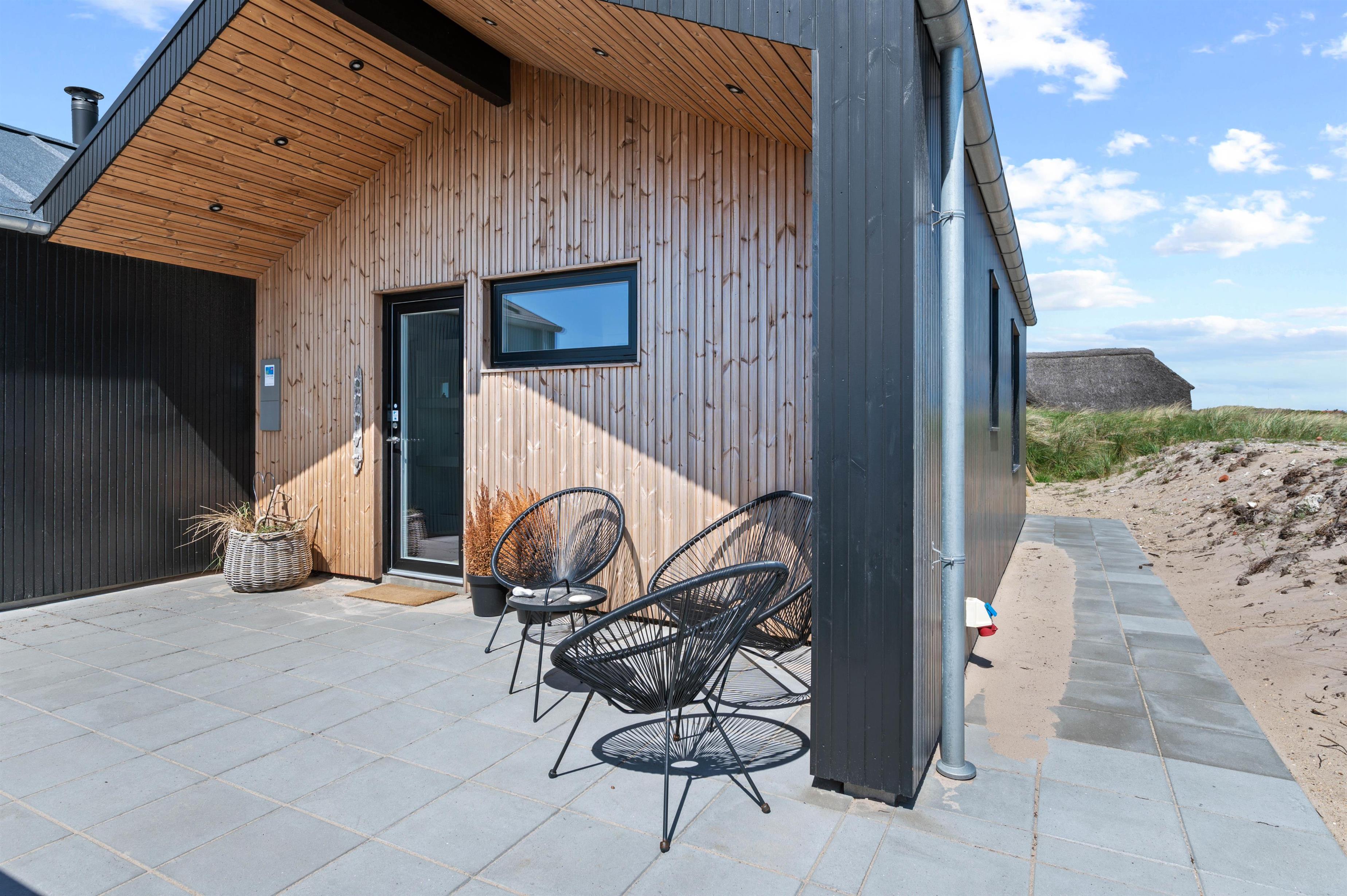 Dette detaljerige sommerhus på Nordsøvej 414 sætter på alle måder rammerne for en femstjernet ferie ved Vesterhavet. Ikke mindst på grund af det fantastiske uderum, der hører med til sommerhuset. På den store lukkede terrasse får I nemlig jeres helt egen private wellnessoase med udespa, hvor I kan nyde ferien og slå helt koldt vand i blodet.