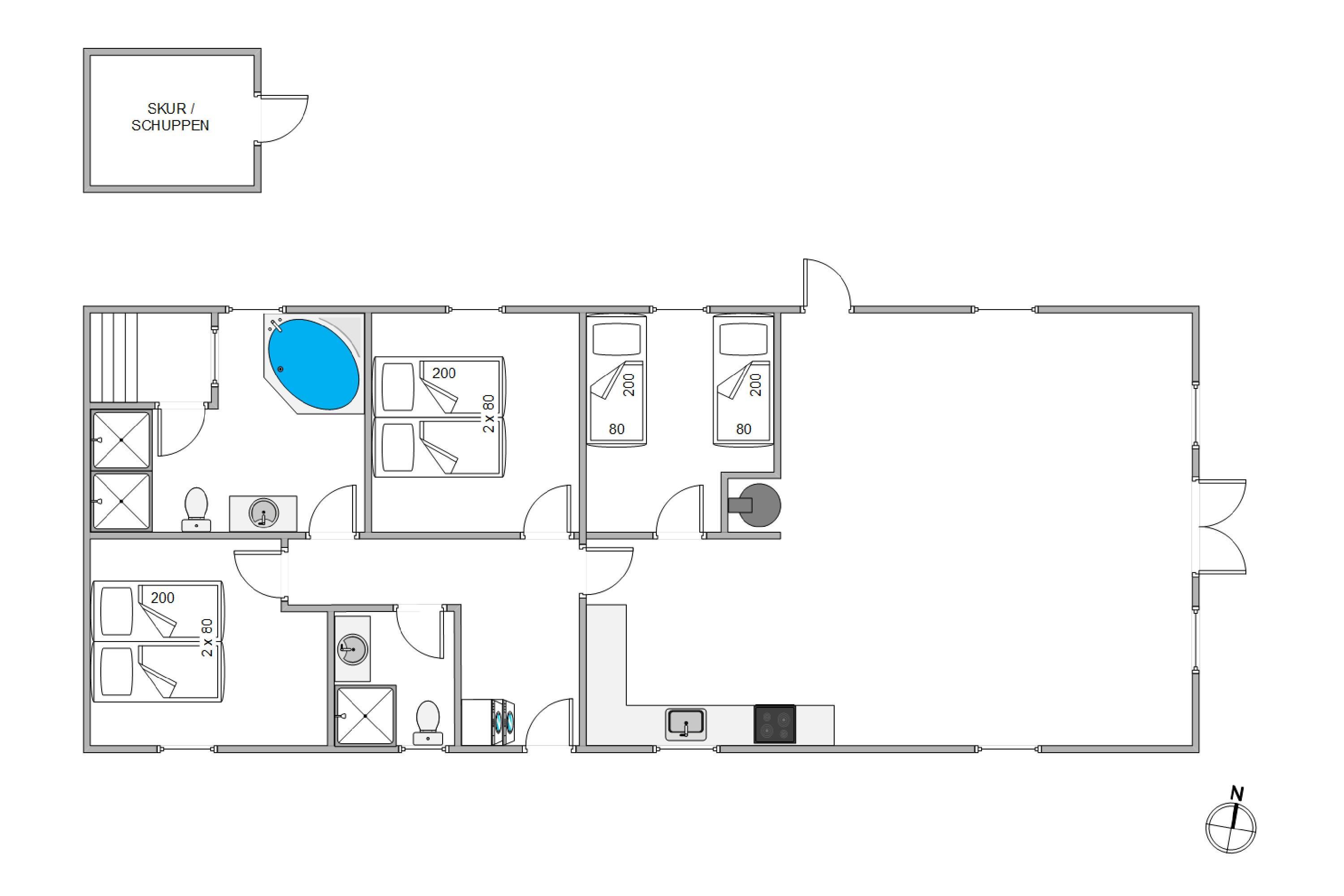 Dette skønne hus på Holdvej 9A er opført i 2017 og er både moderne og lyst indrettet. Fordelt på 93 kvadratmeteter finder i stuen der er forbundet med det åbne køkken, hvilket giver et stort rum, hvor familien kan samles om måltider og hygge. Indvendigt er det lyst og moderne med loft hele vejen til kip, hvilket giver en god rumfornemmelse. Sommerhuset indeholder også alle de faciliteter I kunne ønske jer i et sommerhus, og det er derfor perfekt til at danne rammen om en skøn ferie for hele familien i Søndervig.