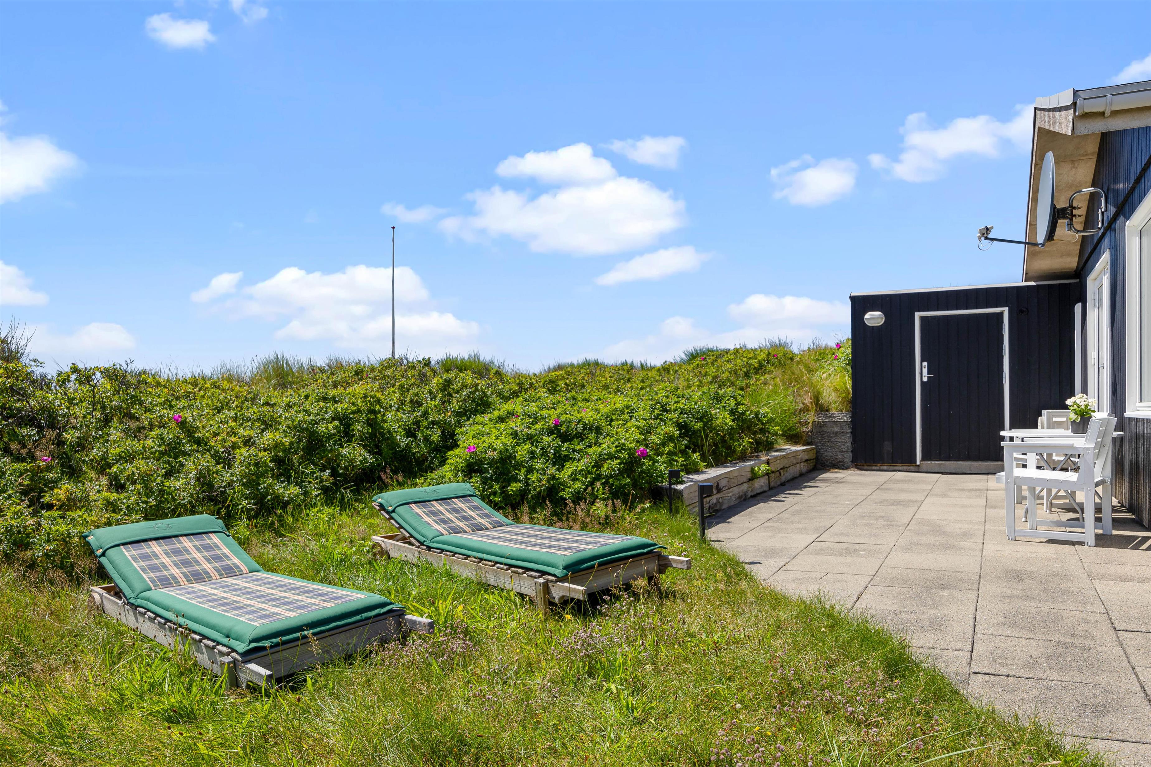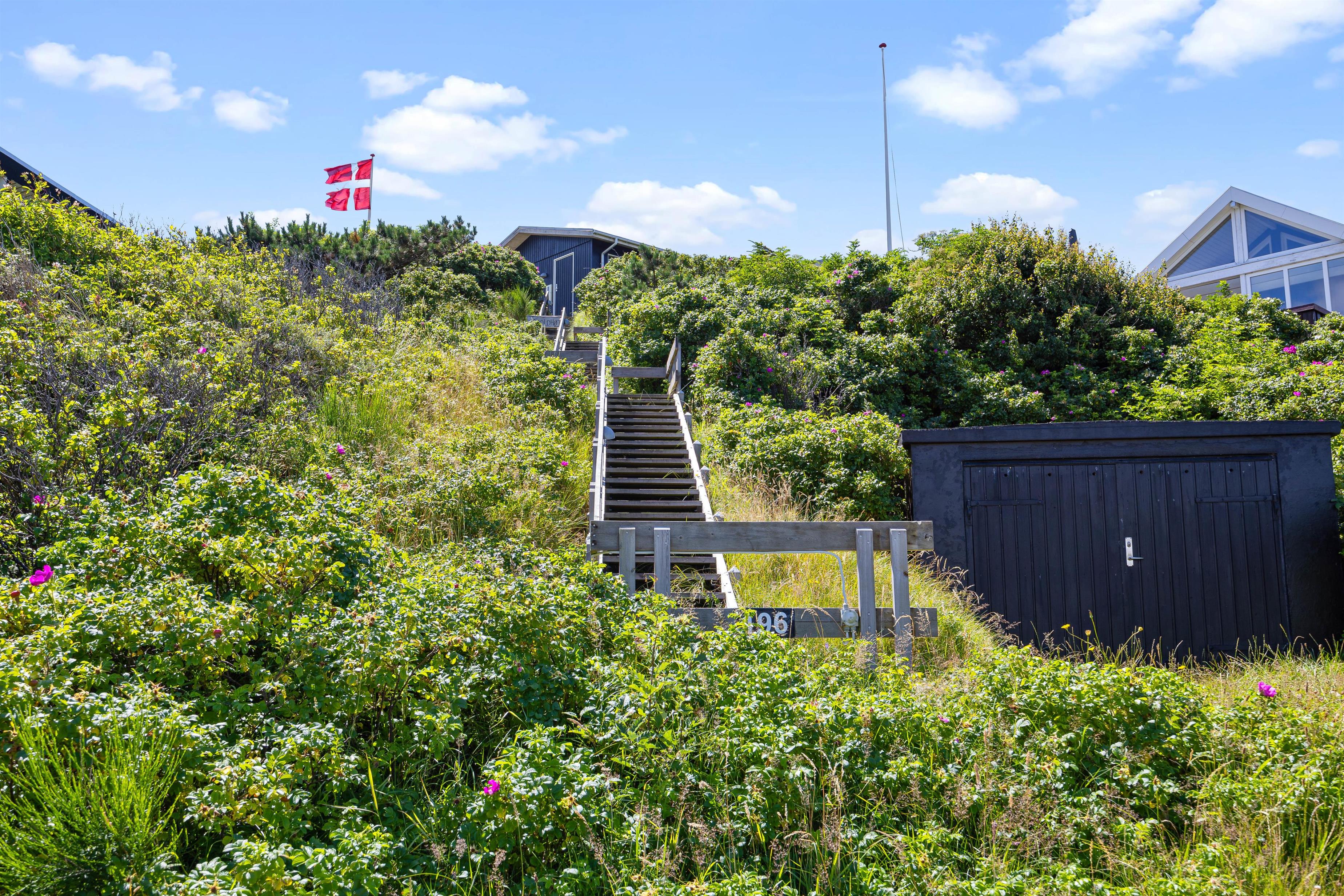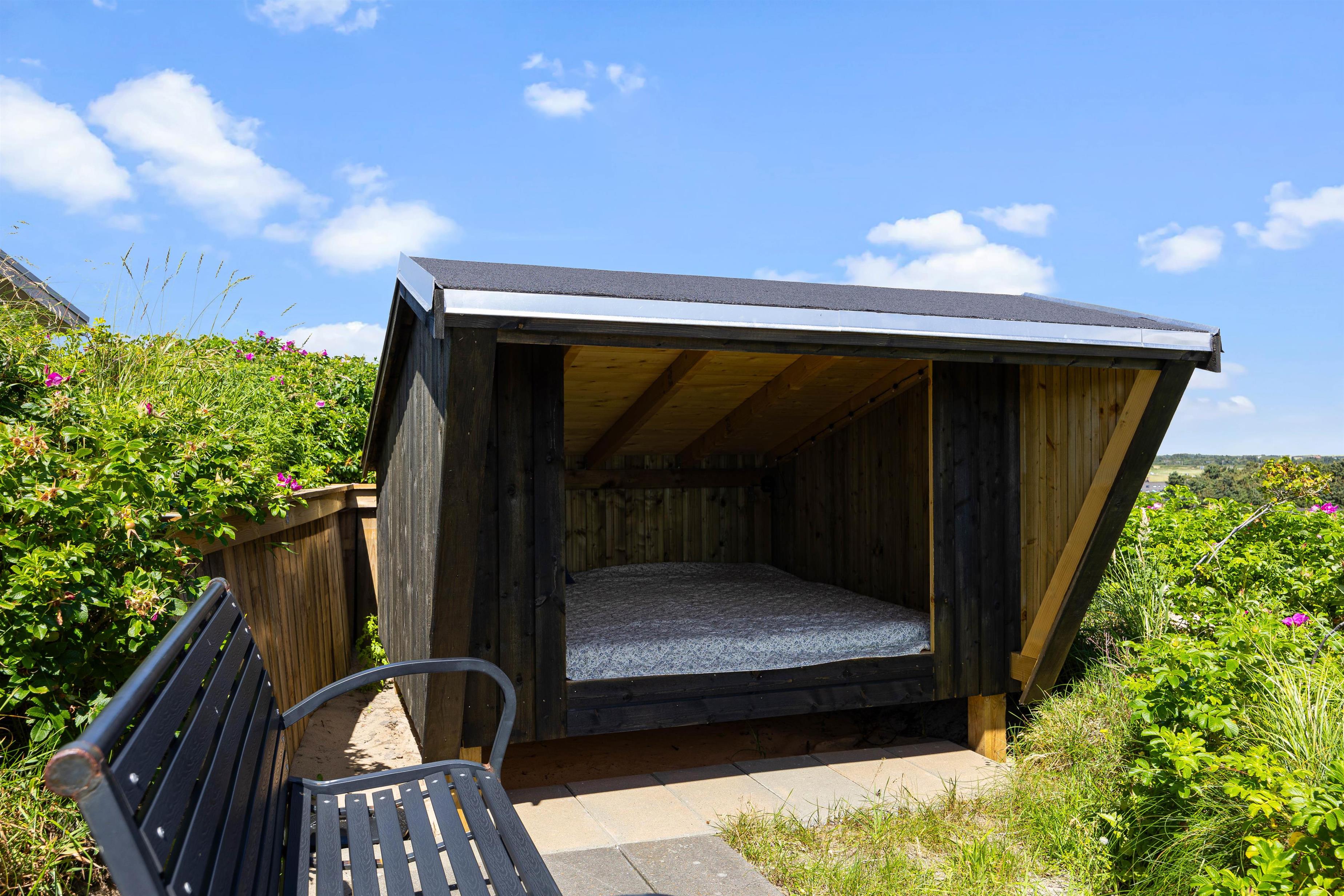 Sommerhusets beliggenhed fås ikke meget bedre. Huset ligger på toppen af en klit, hvilket giver masser af privatliv, men ikke mindst nogle fantastiske udsigter. I kan derfor med ro i maven sætte jer til rette enten indendørs i de behagelige møbler, eller udendørs i de mange små hyggelige kroge, der findes rundt om huset. Om sommeren kan det også anbefales at tage dyne og pude med ud i sommerhusets shelter, og have en eller flere nætter ude i den friske havluft. Bemærk venligst også, at grundet sommerhusets beliggenhed, så parkerer man 25 meter fra sommerhuset, og sommerhuset kan kun tilgås via trapperne