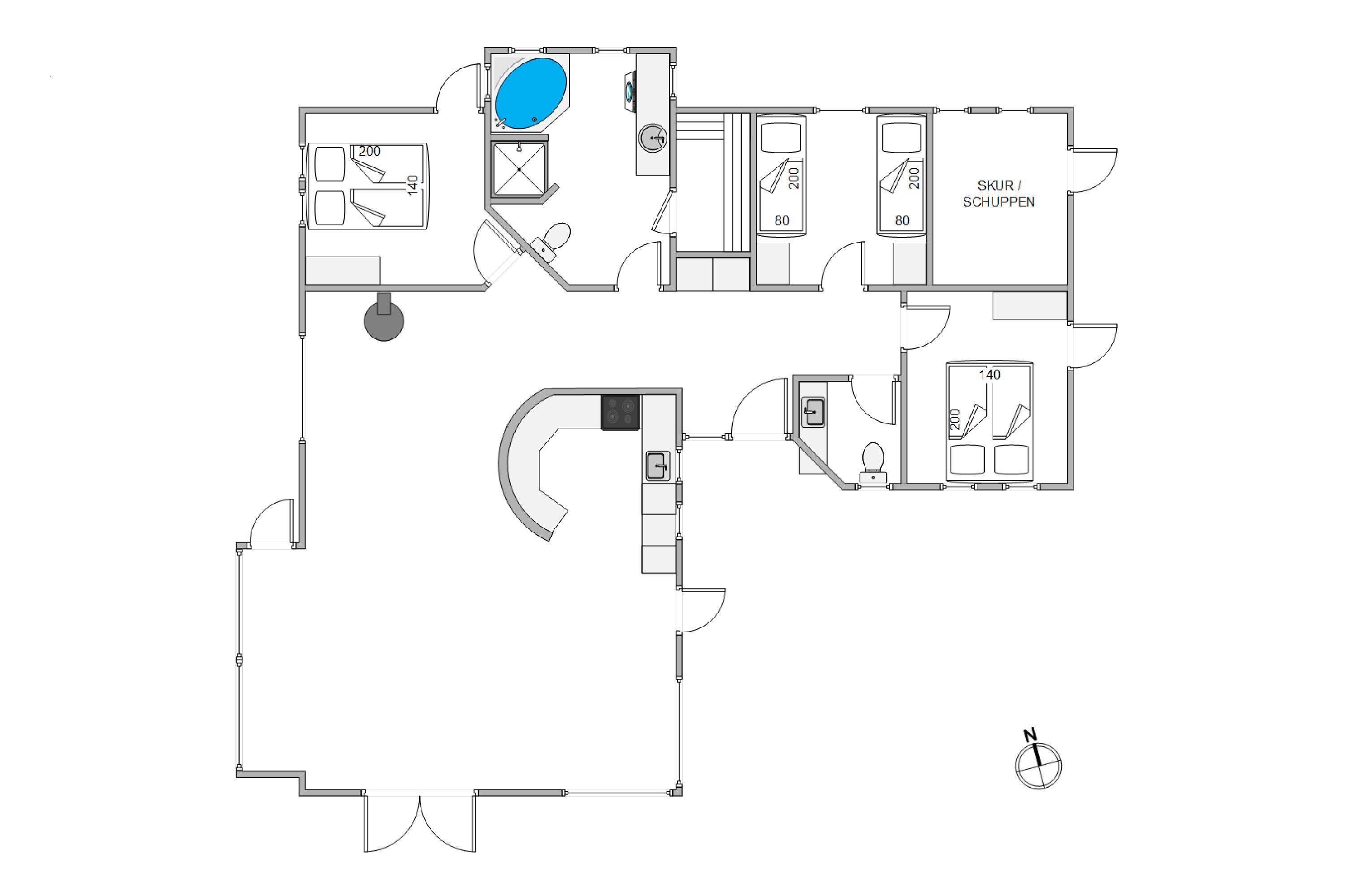 Dette sommerhus har alt hvad I skulle få brug for, for at holde en bekvem og dejlig ferie. Sommerhuset består af I alt 129 m2, så her er der masser af plads til at slå jer løs. Sommerhusets hjerte er helt klar det store og rummelige køkken-alrum, der gør det muligt at have alt det nærvær og kvalitetstid I ønsker. Så mens nogen forbereder en lækker aftensmad, kan resten af familien slappe af i sofaen med jeres yndlings- film eller tv-serie, som I kan streame på fjernsynet via den google Chromecast som tilhører huset. For at I også kan nyde lidt ekstra afslapning, er der også en sauna og et spabad. Så kan I ret holde en wellness dag hjemme i sommerhuset.