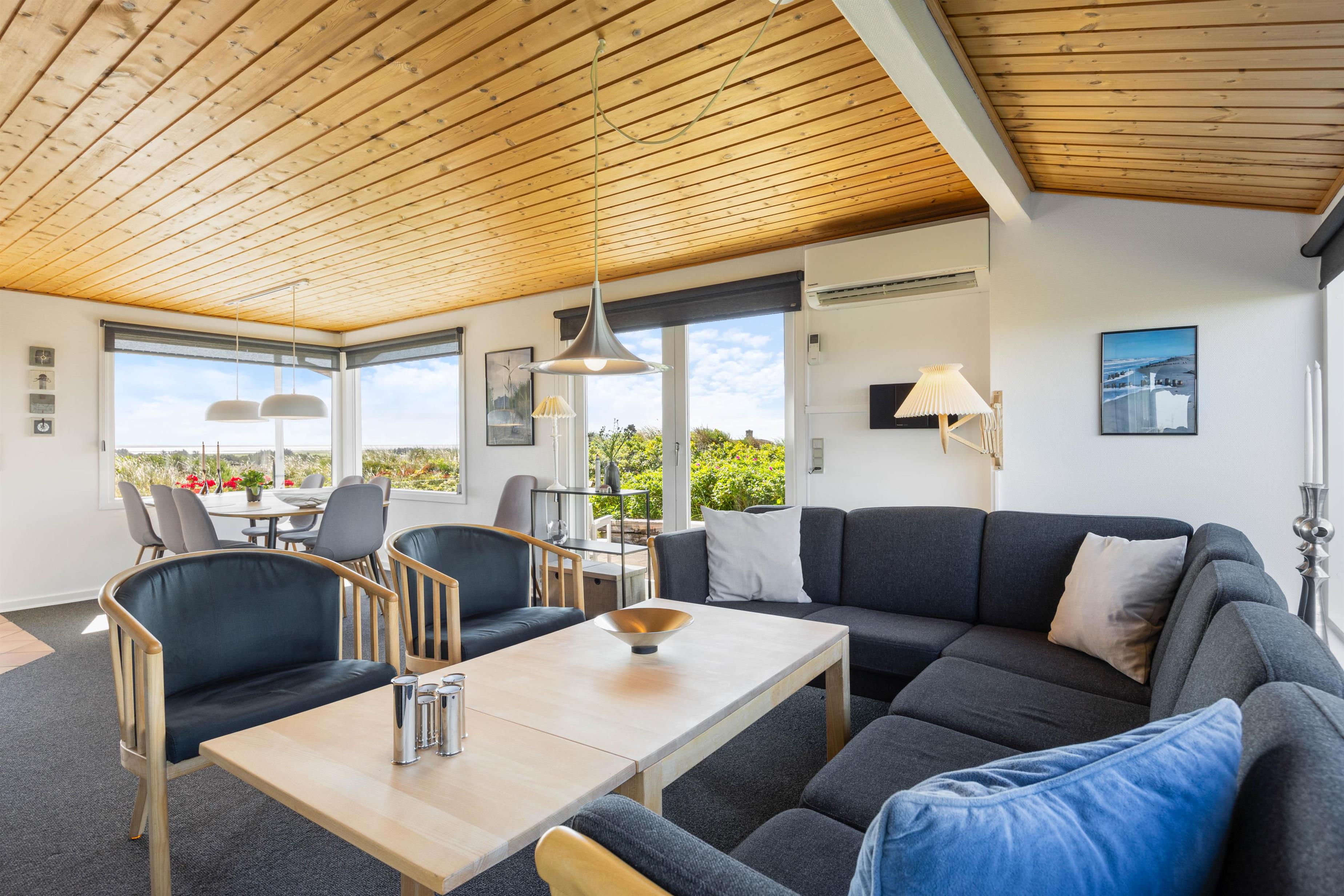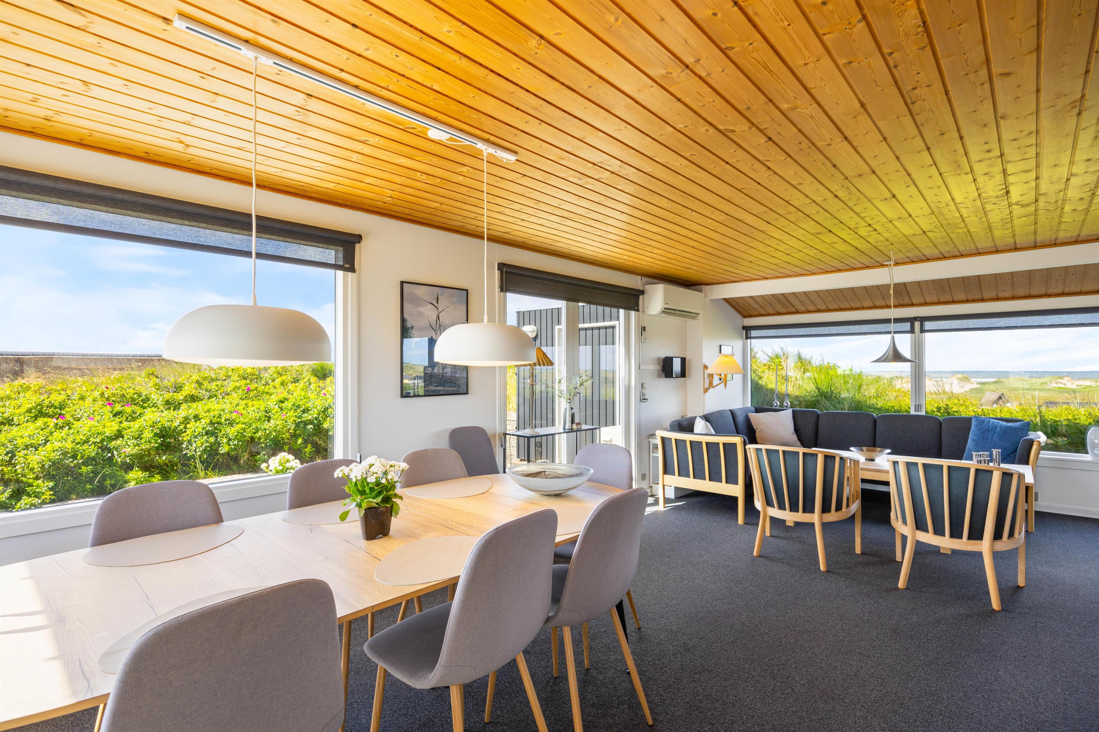 Hvis afslapning, skøn natur og fantastiske panoramaudsigter er noget for jer, så vil I helt sikkert elske dette sommerhus på Nordsøvej 196. Sommerhuset ligger på toppen af klit, og dette giver derfor en helt enestående panoramaudsigt over både Vesterhavet og den skønne Ringkøbing fjord. Sommerhuset kan i alt rumme seks gæster, fordelt på tre soveværelser hvoraf to er med udstyret med en dobbeltseng. Huset er helt perfekt for jer, der søger en dejlig og afslappende ferie.