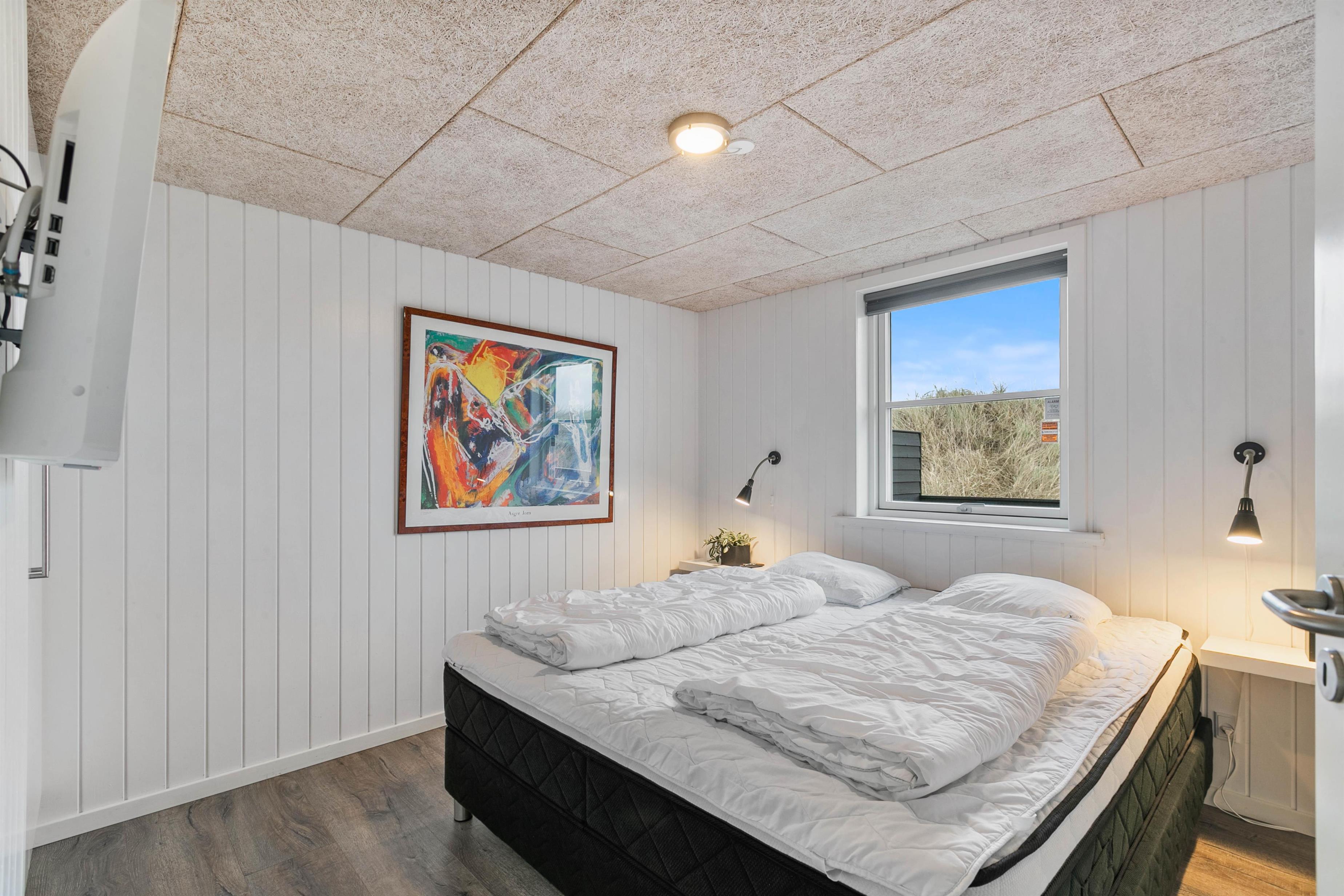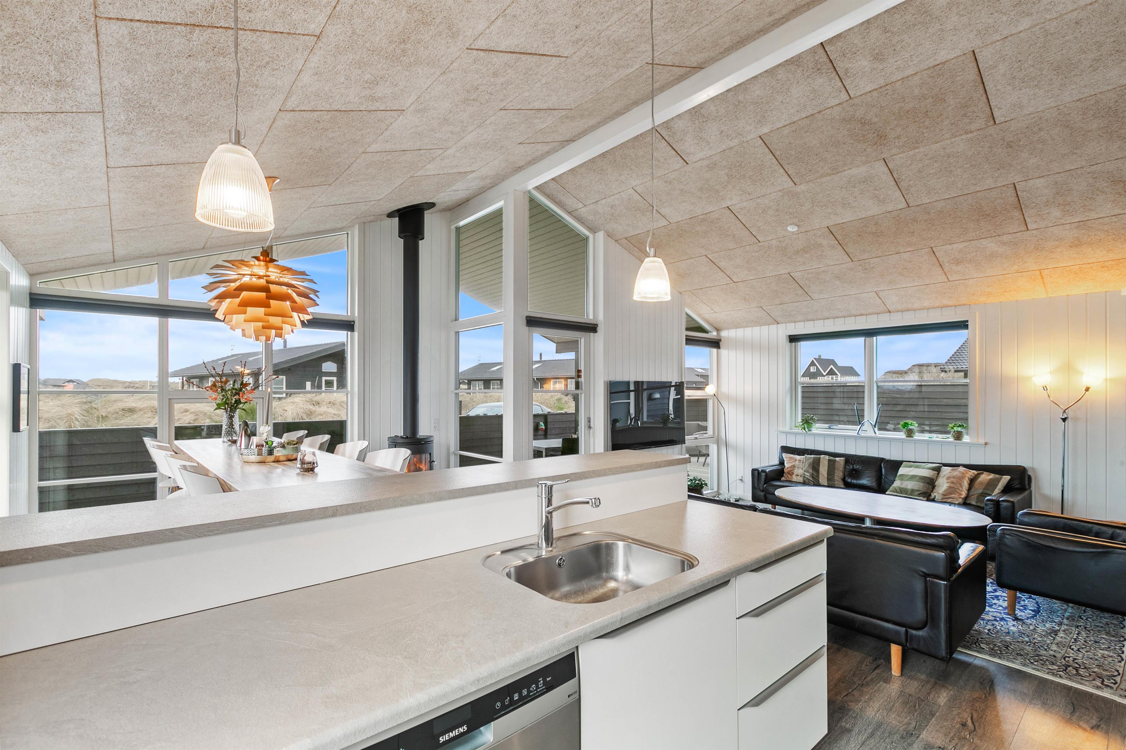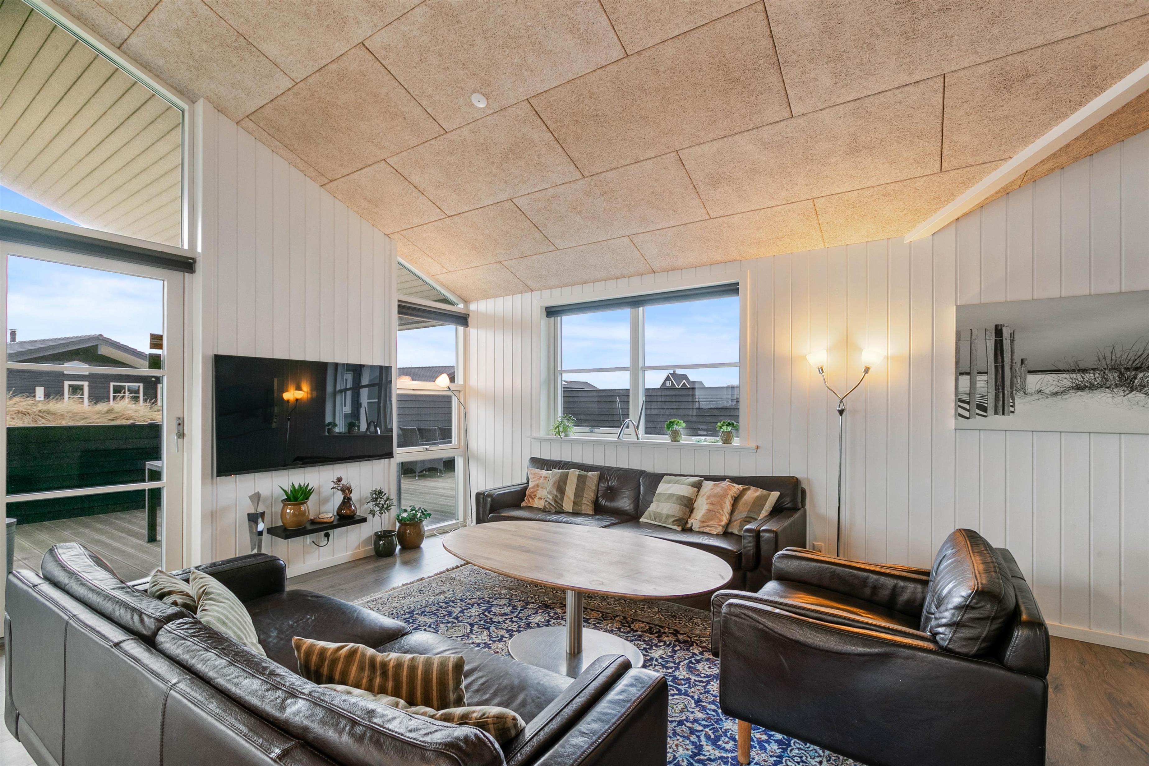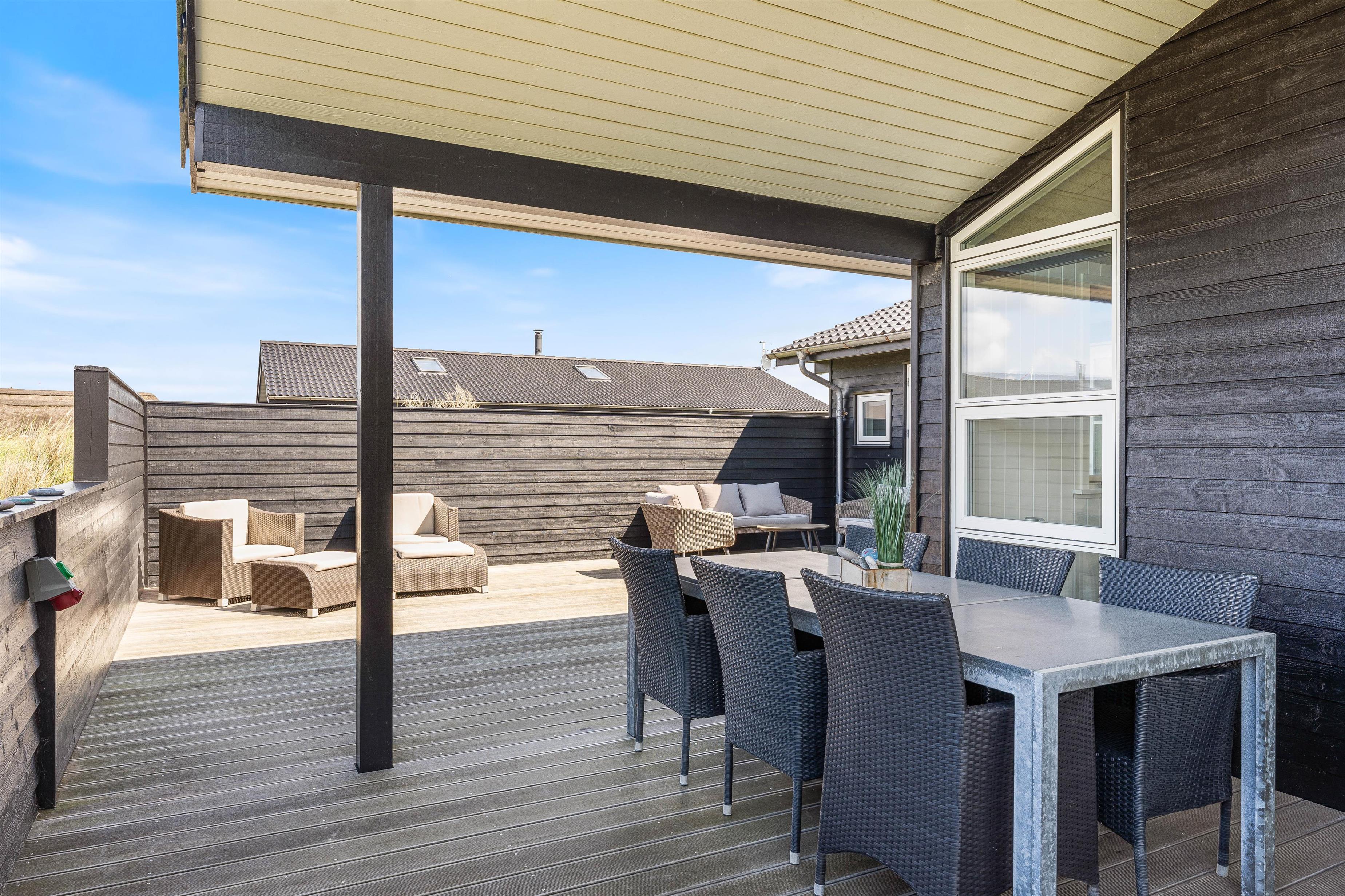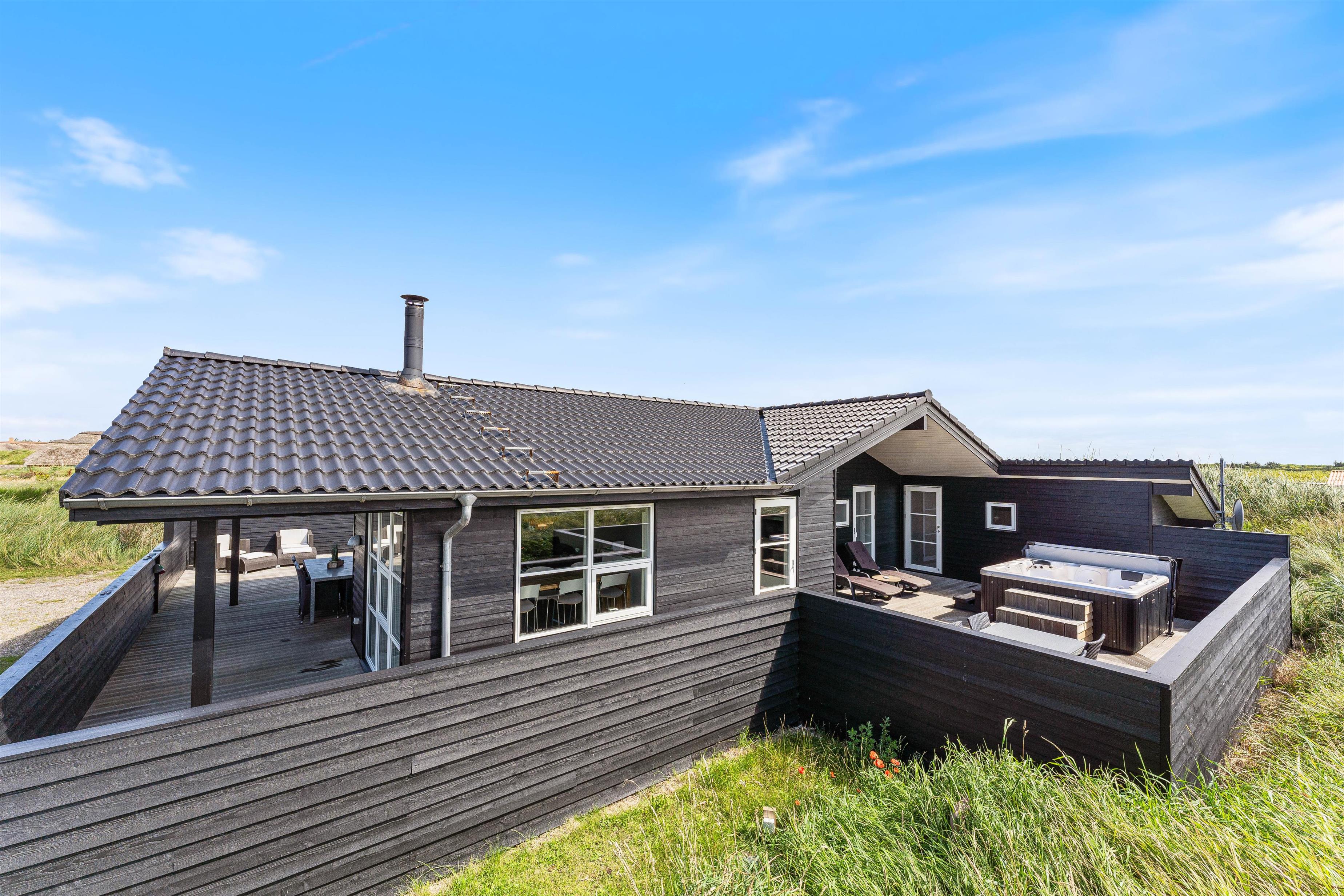I dette hus kan man nyde en ferie i et moderne sommerhus på Holmsland Klit. Huset er smagfuldt indrettet og fremstår særdeles lyst og indbydende. Gulvene er flotte og rengøringsvenlige, og der er 2 lækre badeværelser. Fra det store badeværelse med sauna er der en terrassedør ud til udespaen på terrassen. Huset er forsynet med flere fladskærms-TV, så både de voksne og børnene kan se det, de gerne vil. Efter en delig feriedag kan I slappe af husets spa eller sauna. Her kan I rigtigt blive varmet igennem og blot lade tankerne flyde.