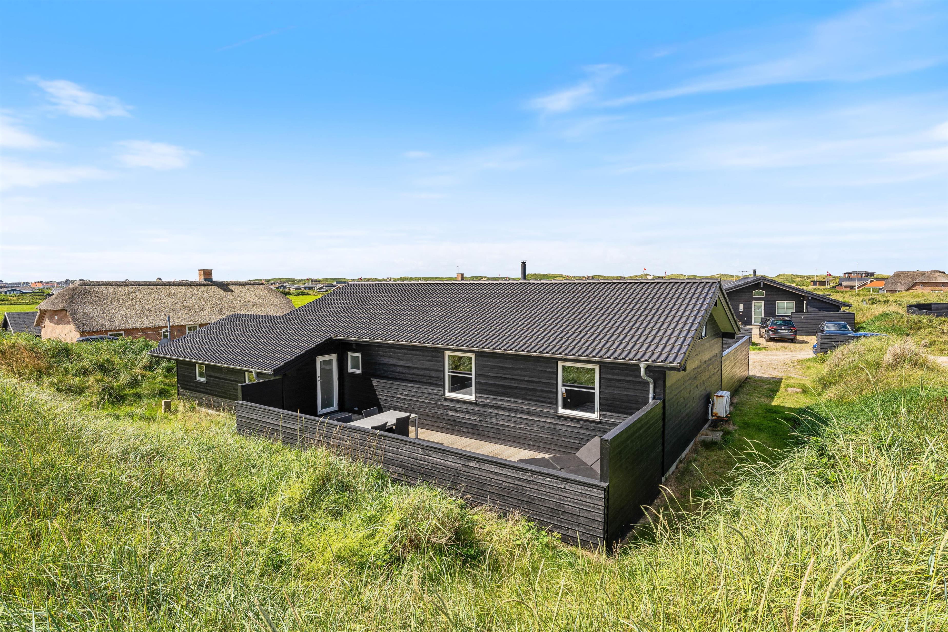 Drømmer I om at holde en dejlig ferie ved Vestkysten så kig nærmere på Holdvej 3. Her finder I et lækkert kvalitetshus i Søndervig. Det er bygget i 2014 i gode materialer og har både sauna og udespa. Sommerhuset ligger tæt på Vesterhavet og lige over for Holmsland Klit Golf. Her er der god plads til 6 personer samt et par børn på hemsen. Den dejlige 140 m2 store terrasse er ideel til familien med børn og hund.