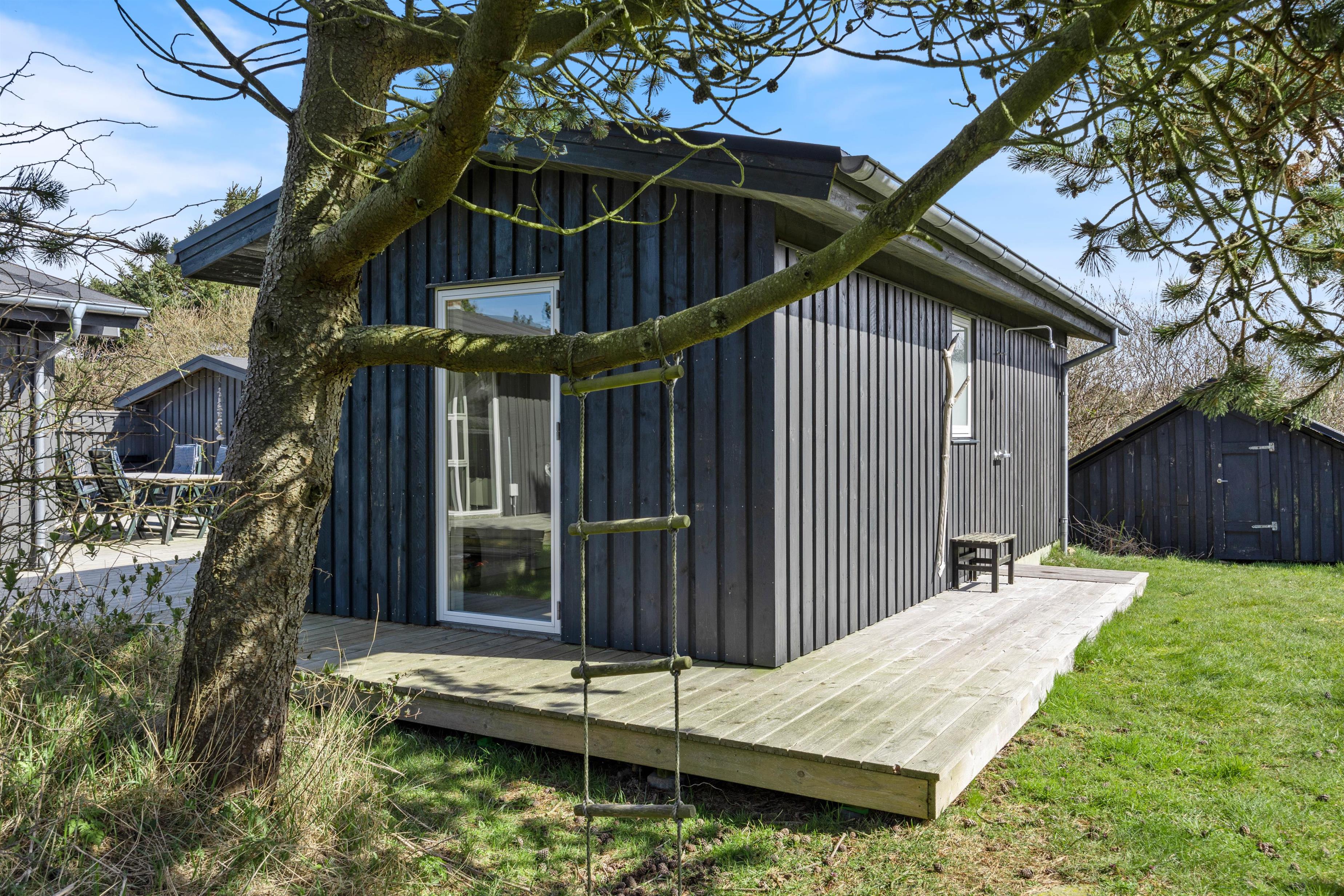 Endelig er der også en udendørs bruser, som er perfekt til at skylle sig af under, efter en lang dag på stranden eller for at køle ned på en varm sommerdag. Med alle disse faciliteter er denne træterrasse det perfekte sted at tilbringe tid sammen med familie og venner, og skabe minder, der vil vare ved i mange år fremover. Udebruseren er til benyttelse fra april til november.