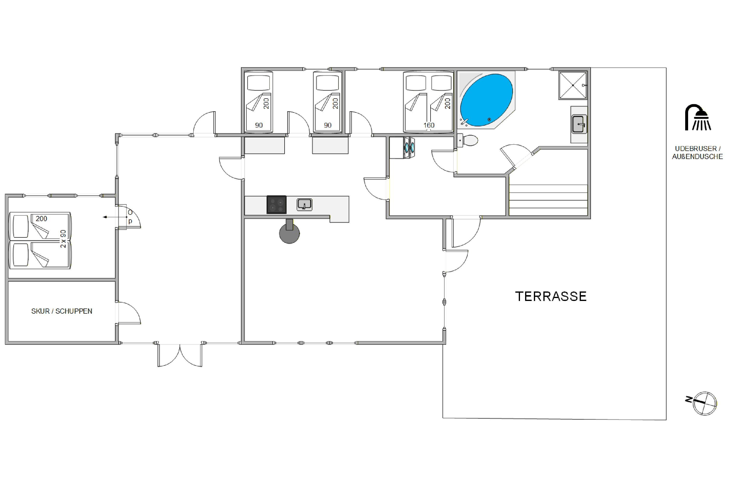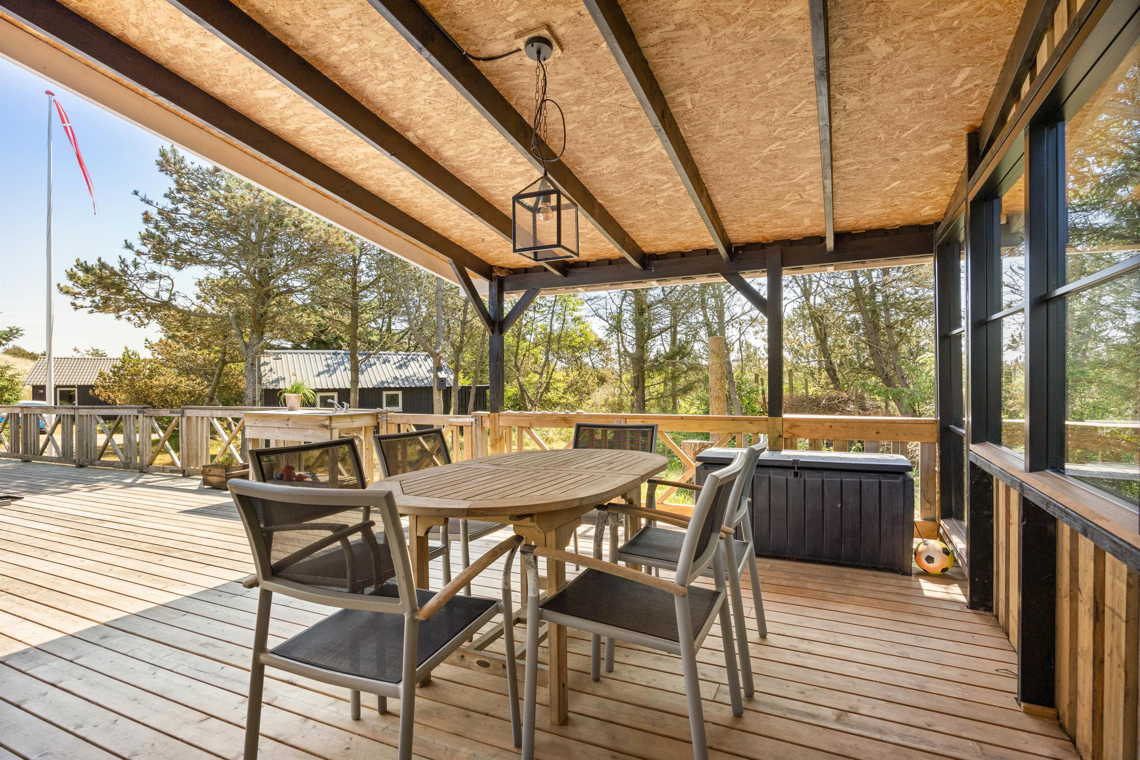 Efter en dag med solbadning i liggestolene kan I tage en forfriskende skyller under udendørsbruseren. Eller I kan benytte bruseren til at skylle det værste sand væk efter en lang dag ved Vesterhavet, der ligger blot 750 meter fra huset.