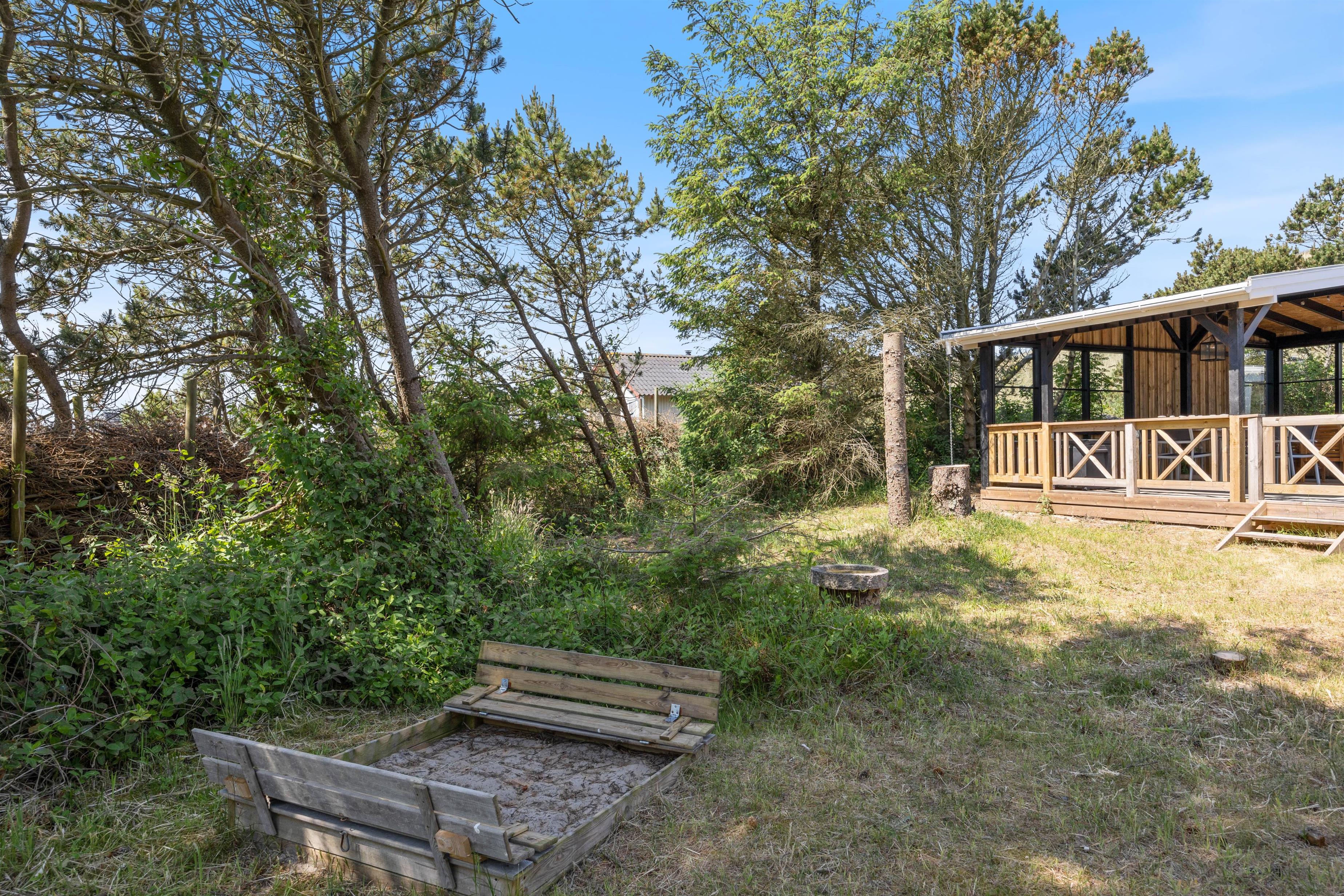 Sommerhuset på Holmsborgvej er beliggende på en skøn ugeneret naturgrund. Huset er omgivet af træer og buske, så det føles som om I befinder jer i jeres helt egen oase. Dette sommerhus er ideelt for hundeejere og børnefamilier, for der er masser at undersøge for de små på grunden. Fra terrassen har I udsigt til et lille legeområde med sandkasse og gynge, hvor børnene kan lege. Det vil uden tvivl være i høj kurs hos de små.