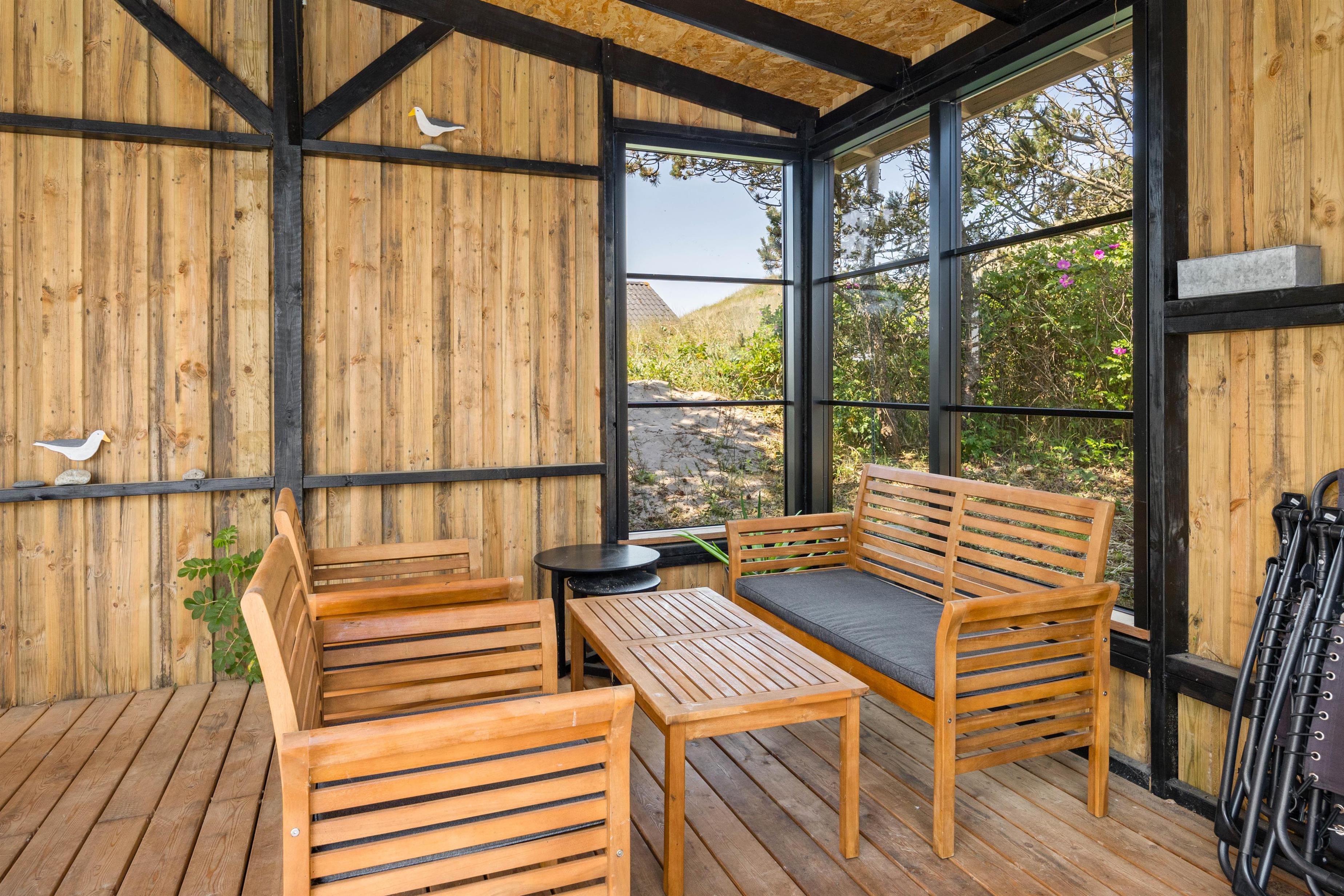 Der er selvfølgelig både havemøbler, liggestole, parasol og grill til rådighed på terrassen, så I kommer ikke til at mangle noget. Og på kolde, regnfulde dage – eller hvis I besøger huset i vinterhalvåret – kan I flytte festlighederne fra terrassen og ind i udestuen. Det er en skøn følelse at lytte til regndråberne, der falder sagte på glasset, mens man selv sidder i tørvejr.