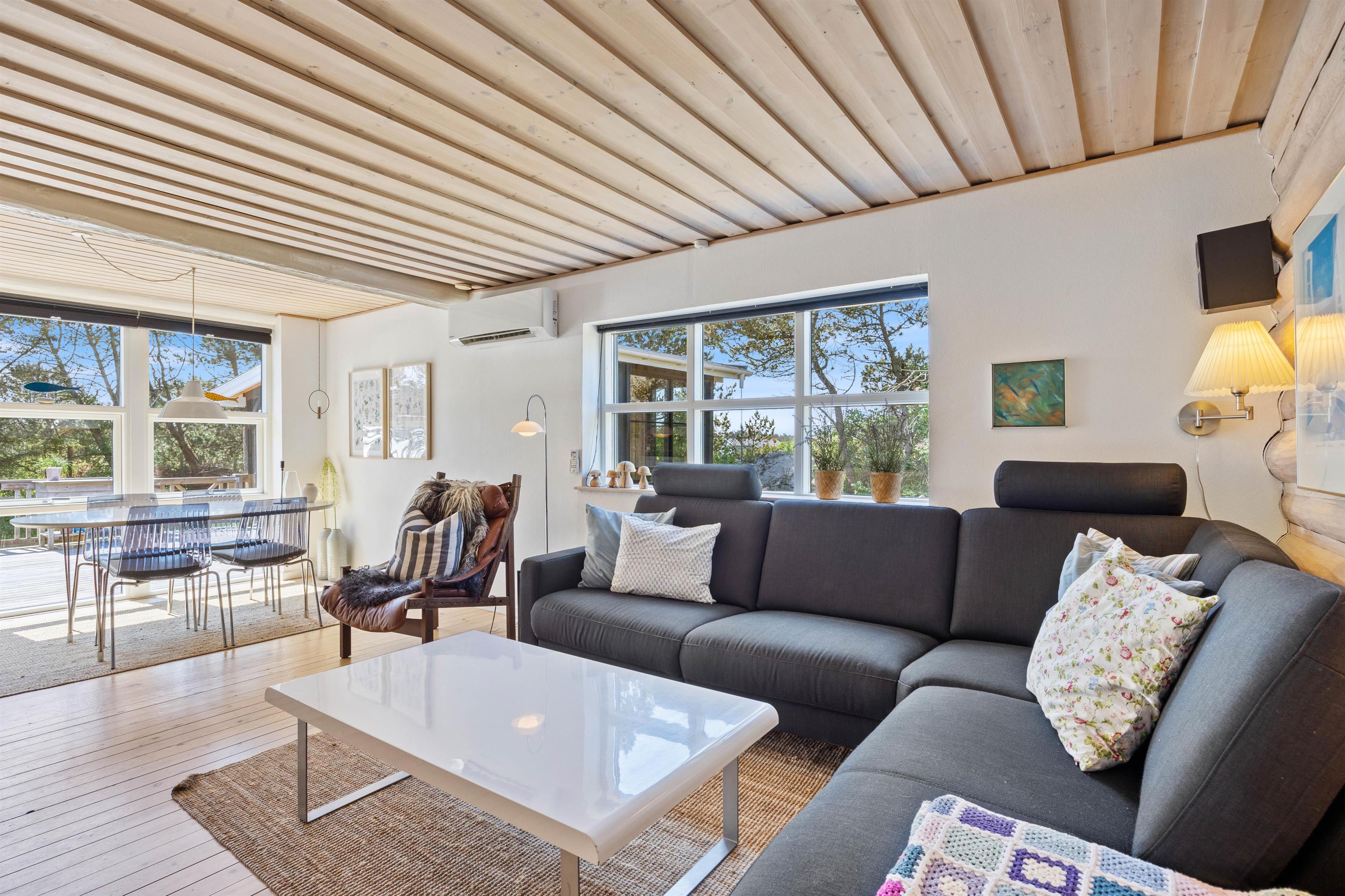 I det hyggelige opholdsrum er der virkelig lagt i kakkelovnen til et par skønne feriedage med fokus på afslapning og hygge. Her står den knitrende brændeovn og udsender sine varmestråler, mens den bløde sofa venter på at blive indtaget. Det er de perfekte omgivelser, når man skal i den rette feriestemning.