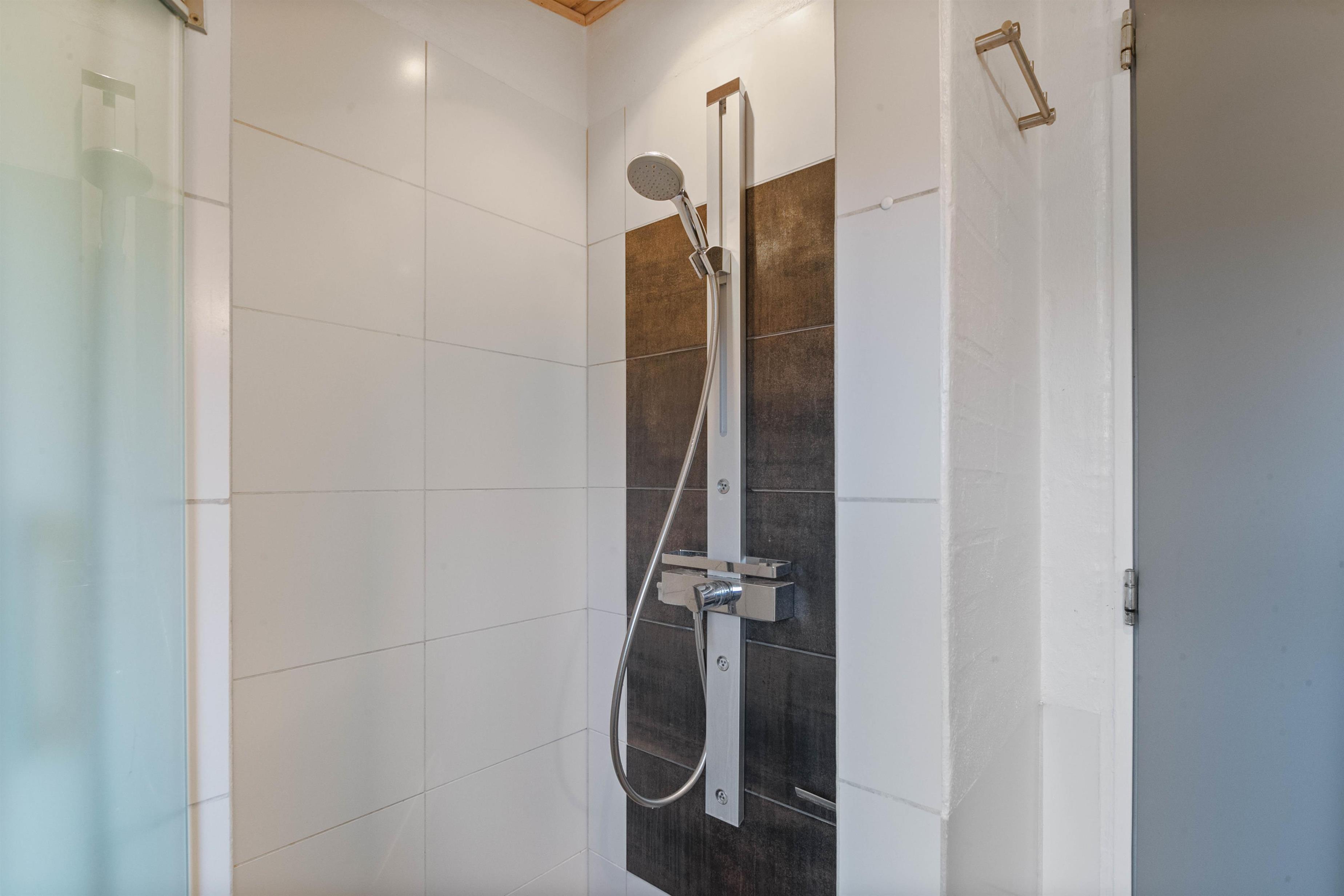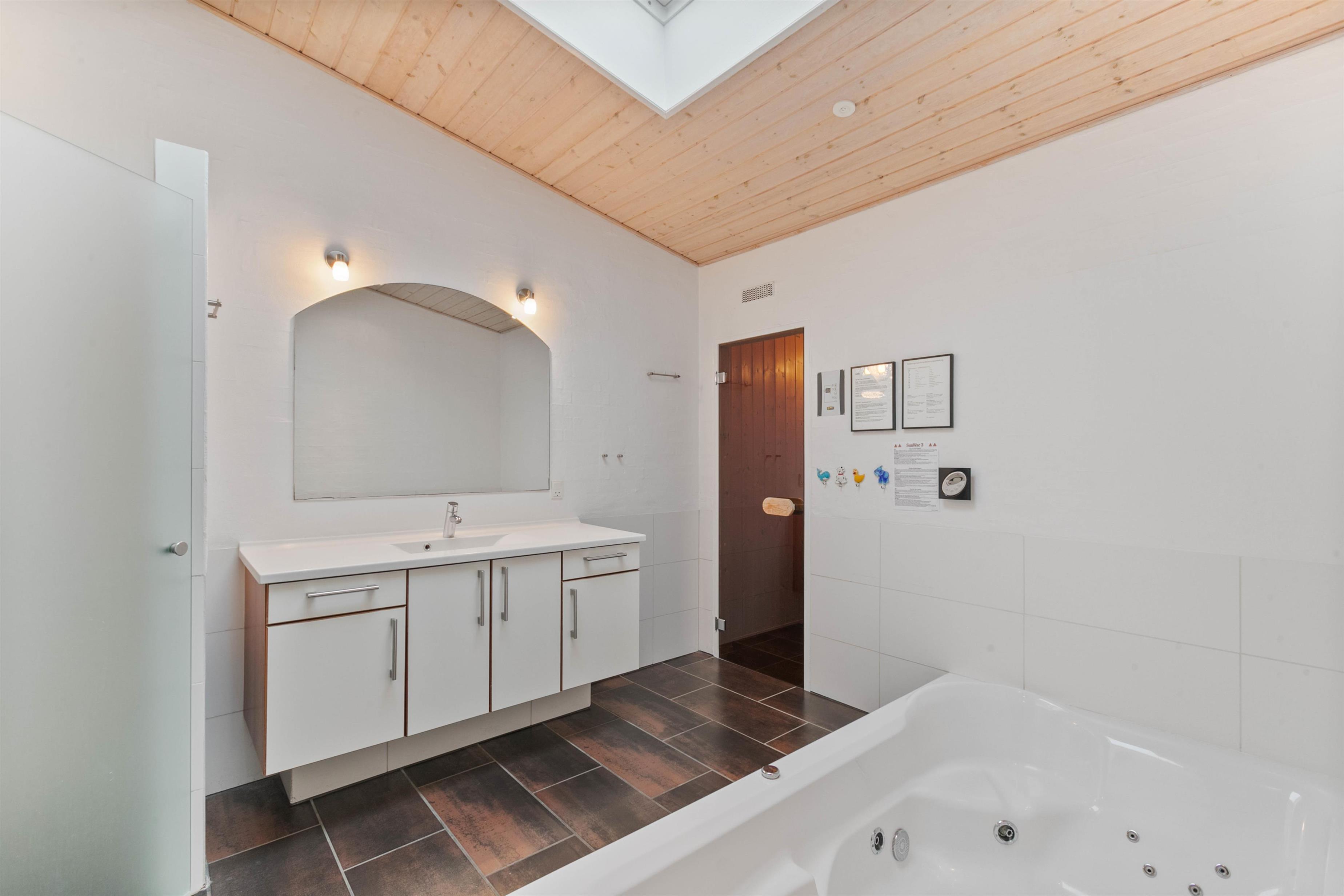 Sommerhusets indretning er både lys, venlig og moderne. Der er dejligt højt til loftet og feriehusets mange vinduer sørger for et flot lysindfald og en dejlig indbydende stemning i huset. Sommerhuset er et perfekt valg for jer, som gerne vil bo i moderne omgivelser med alt det, du forventer af et nyere feriehus, såsom spabad, sauna og alt i hårde hvidevarer. Det superflotte badeværelse er dejligt rummeligt. Det er også her, du finder feriehusets spabad, som er dejlig at hoppe i efter en lang og aktiv dag med familien.