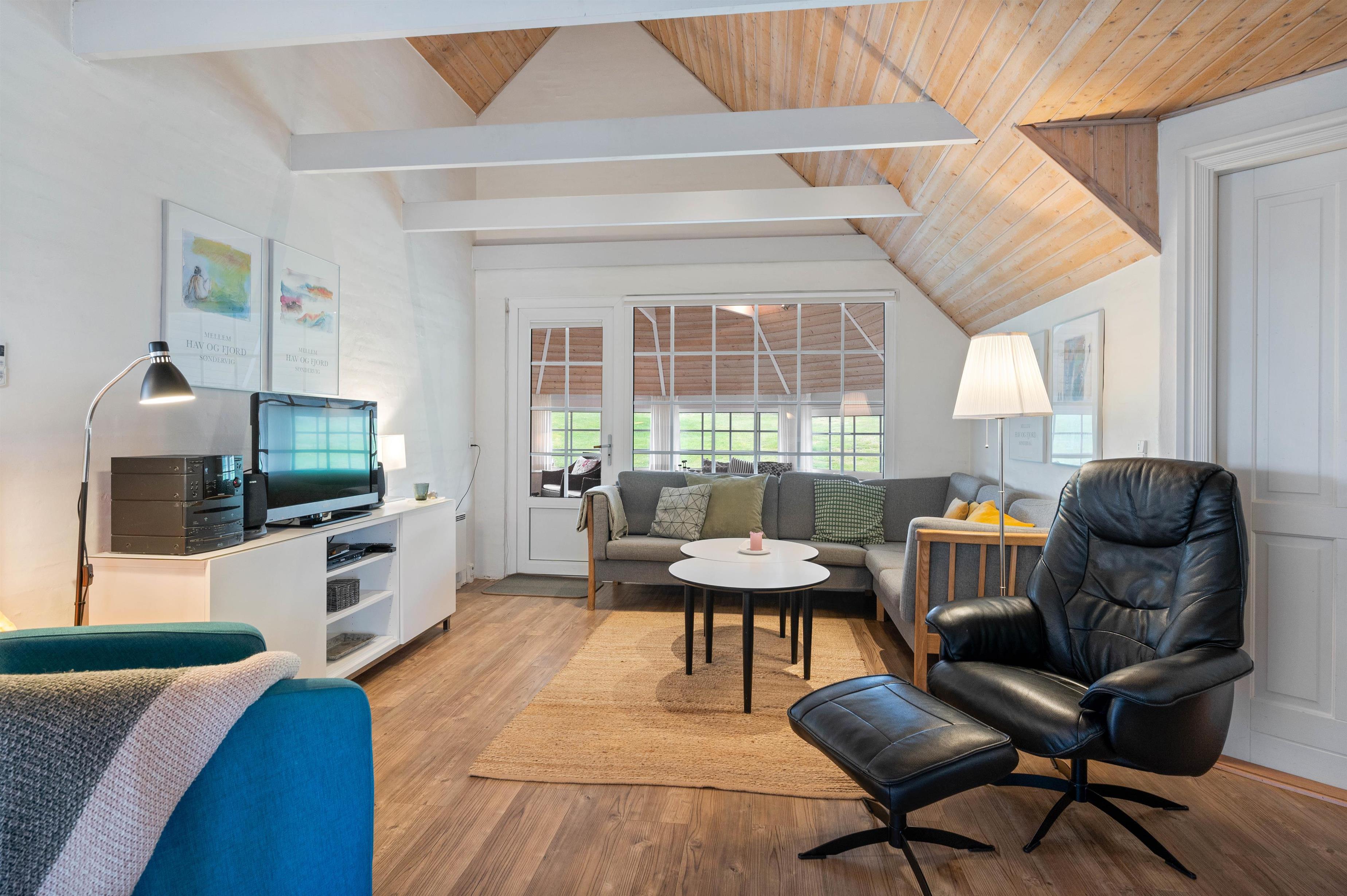 Indenfor bydes I velkommen af en pæn og lys indretning, hvor der synlige loftbjælker og træpaneler. Der er praktiske og rengøringsvenlige gulve i huset, og er man mange, er det skønt med 2 badeværelser. Børn vil nyde den store runde spa. Der er den store Boxer-TV-pakke i huset, med mange danske kanaler. Sommerhuset er på 117 m2 og fordeler sig på 4 soverum, hvoraf de 3 har dobbeltsenge.