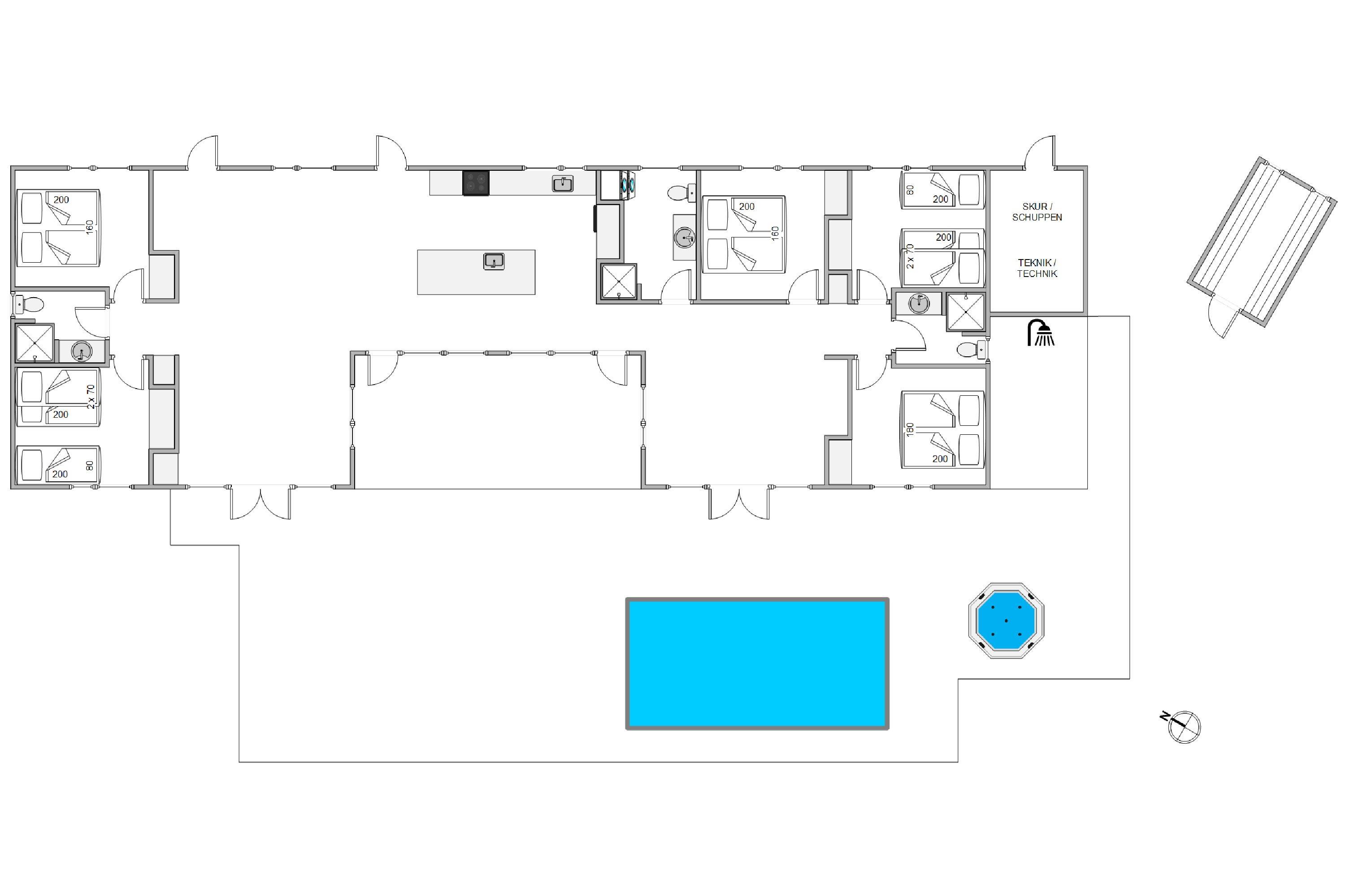 Det 180 m2 store feriehus midt i Søndervig har plads til op til 12 feriegæster, så I kan nye hele familiens selskab. Der er rig mulighed for masser af underholdning i aktivitetsrummet, hvor I kan konkurrere i et spil billiard.