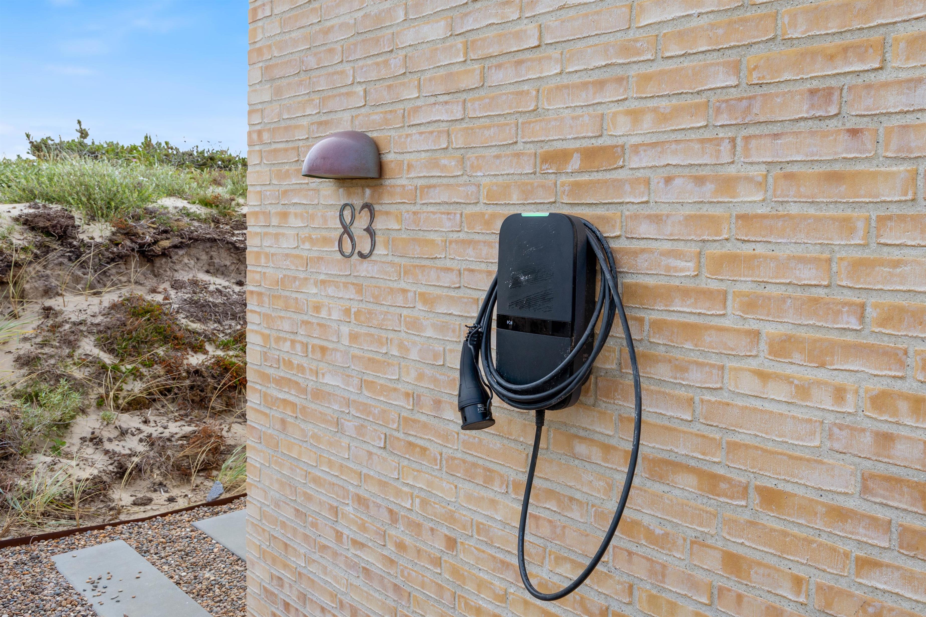 Hvis I rejser med elbil, er der en ladestander lige ved feriehuset. Medbring selv et lade kabel og en adapter.