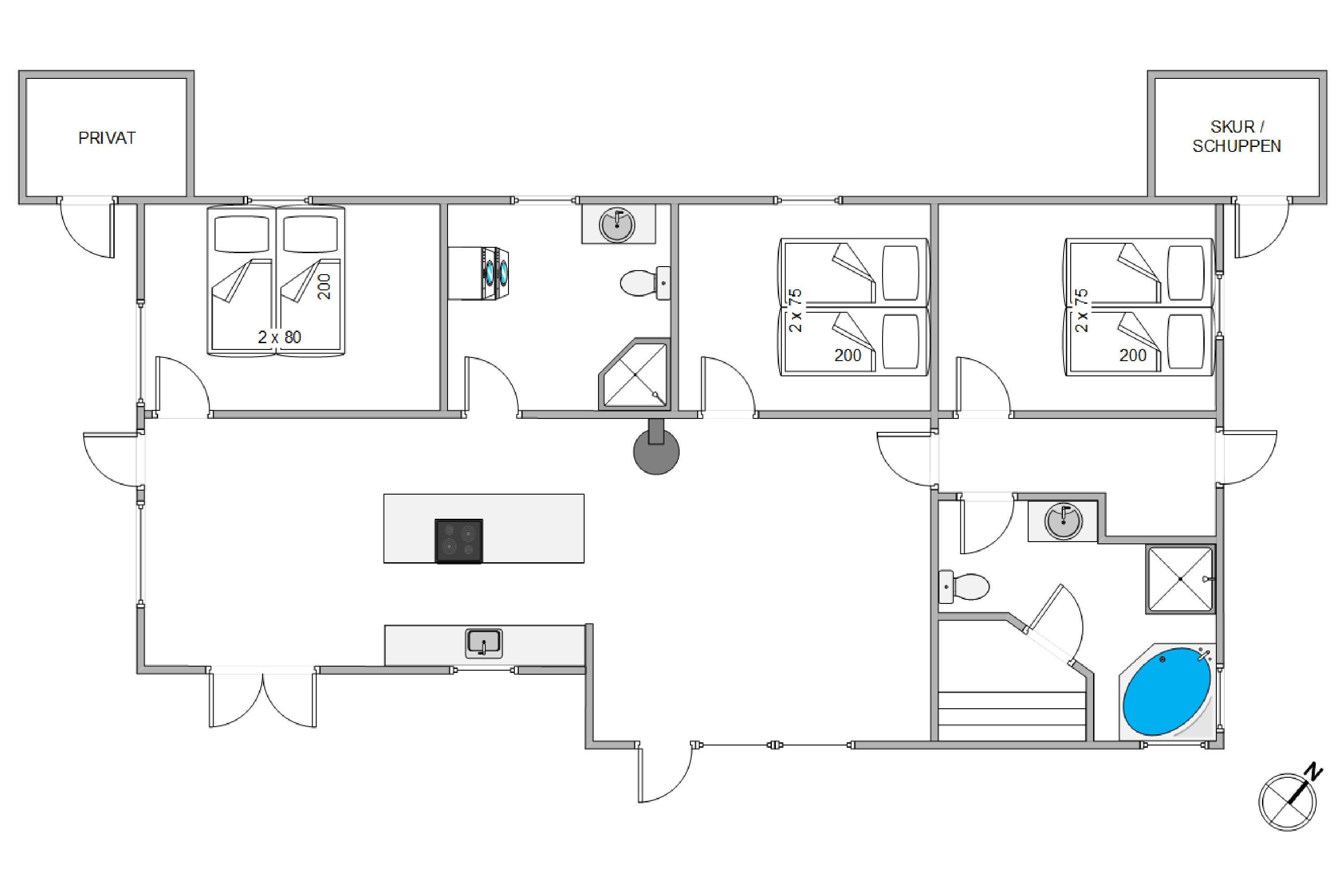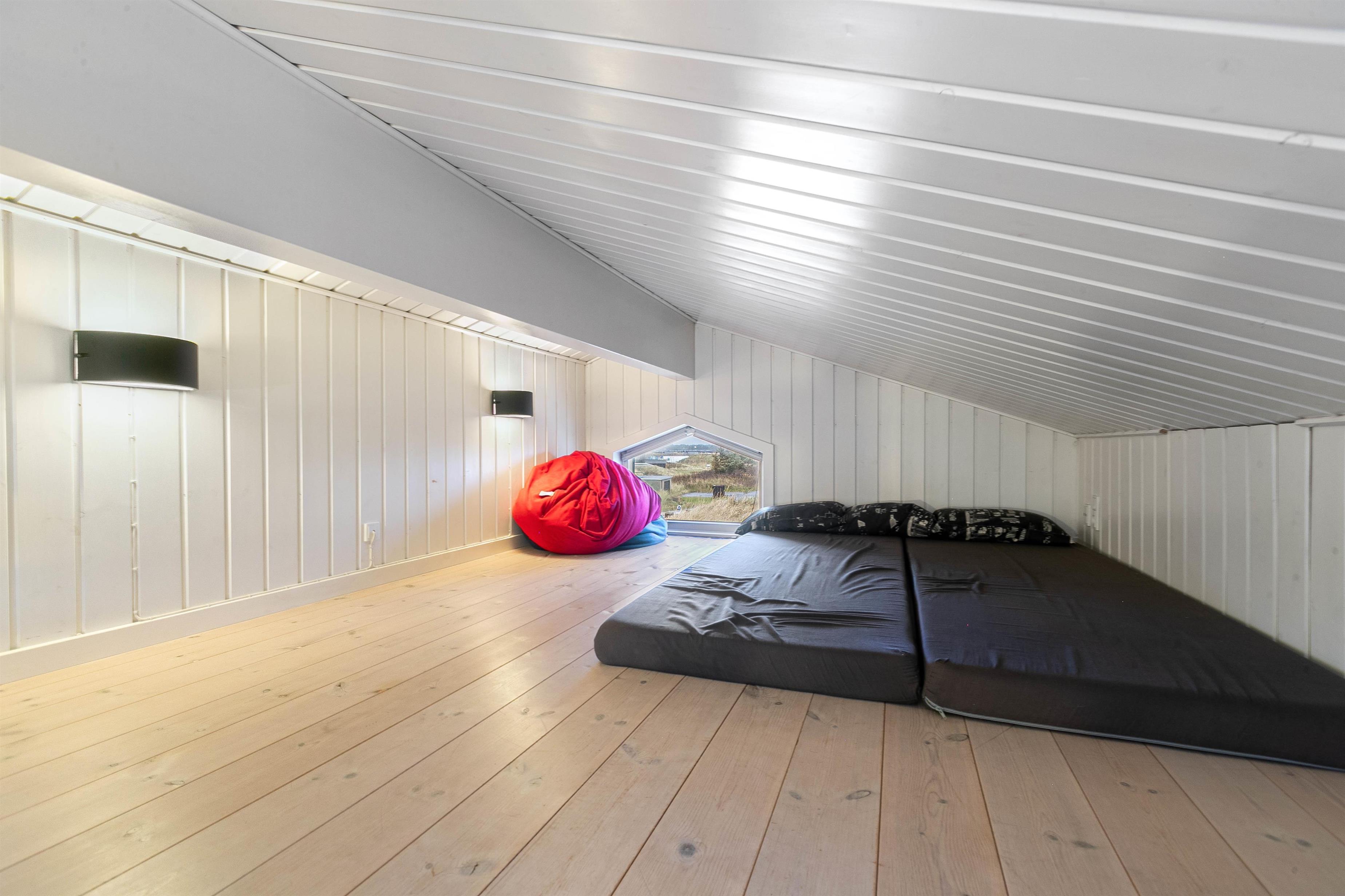 Det flotte hus på lodbergsvej 375 har tre soveværelser, med plads til i alt seks personer og en hems med to ekstra sovepladser. Alle soveværelser er indrettet med gode boksmadrasser og skabe. Alle værelserne har trægulve. Huset har to flotte badeværelser med gulvvarme. Her er sauna og et af badeværelserne har desuden boblebad.