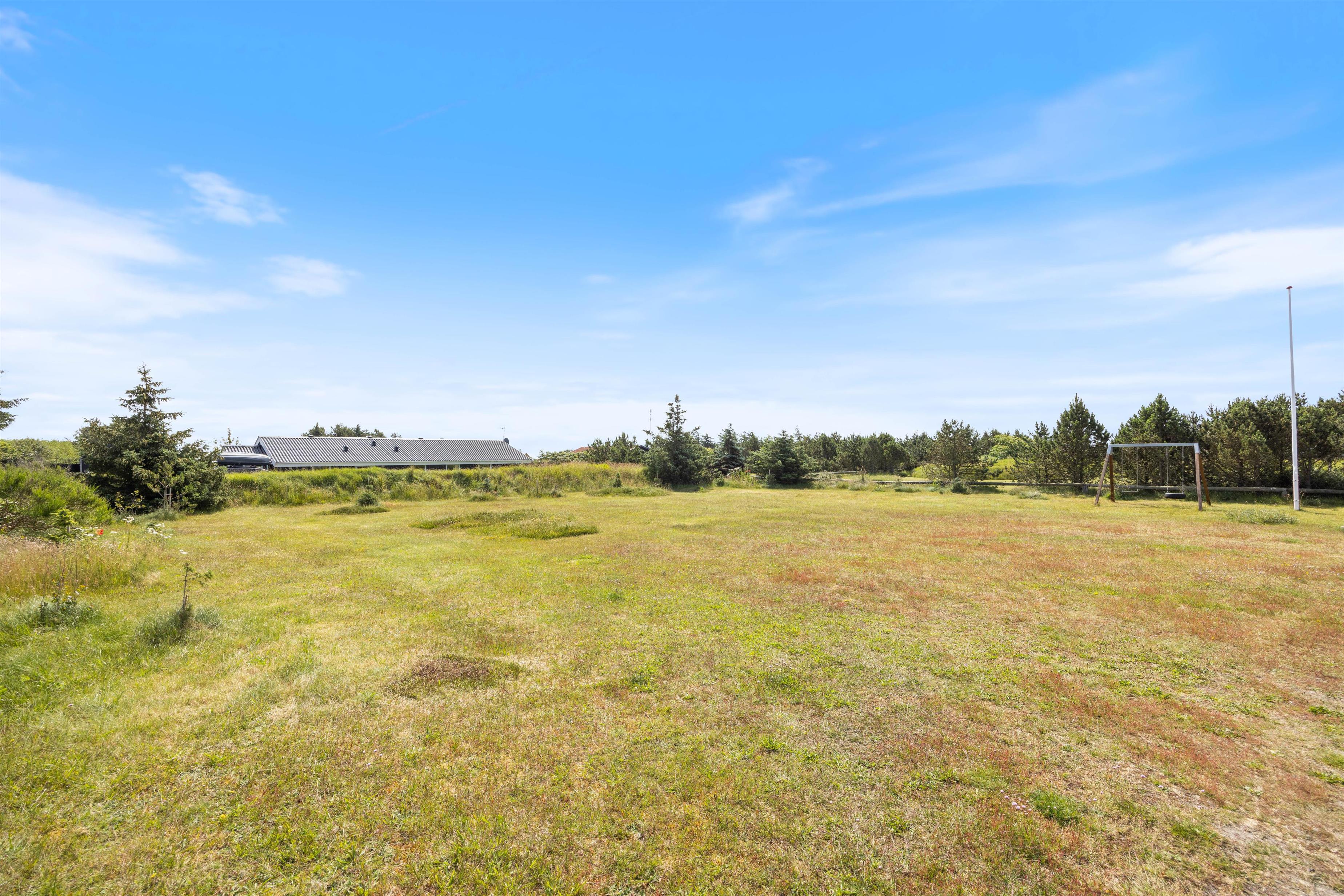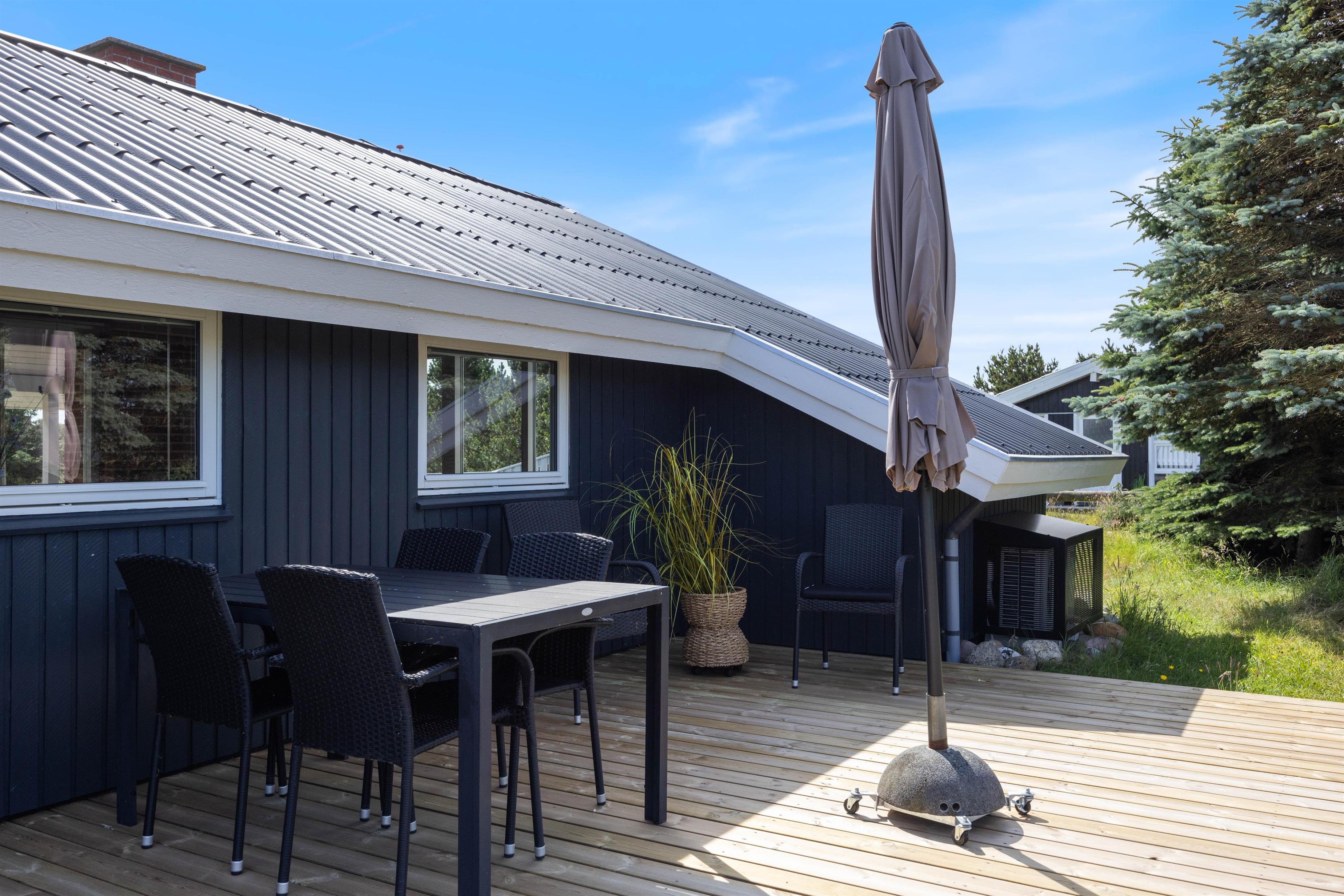 Sommerhuset har en rigtig dejlig træterrasse. Det er her sommerlivet leves. Der er mulighed for at sidde på flere sider af huset, så I kan følge solens gang på himlen. En del af terrassen er også let overdækket. Her kan I søge skygge på en hed sommerdag og søge læ på tidlige forårsdage. Sommerhuset ligger på en dejlig plænegrund, og der er derfor et stort, dejligt udeareal, som børnene kan boltre sig på. Hertil hører der desuden både sandkasse, gynge og trampolin.