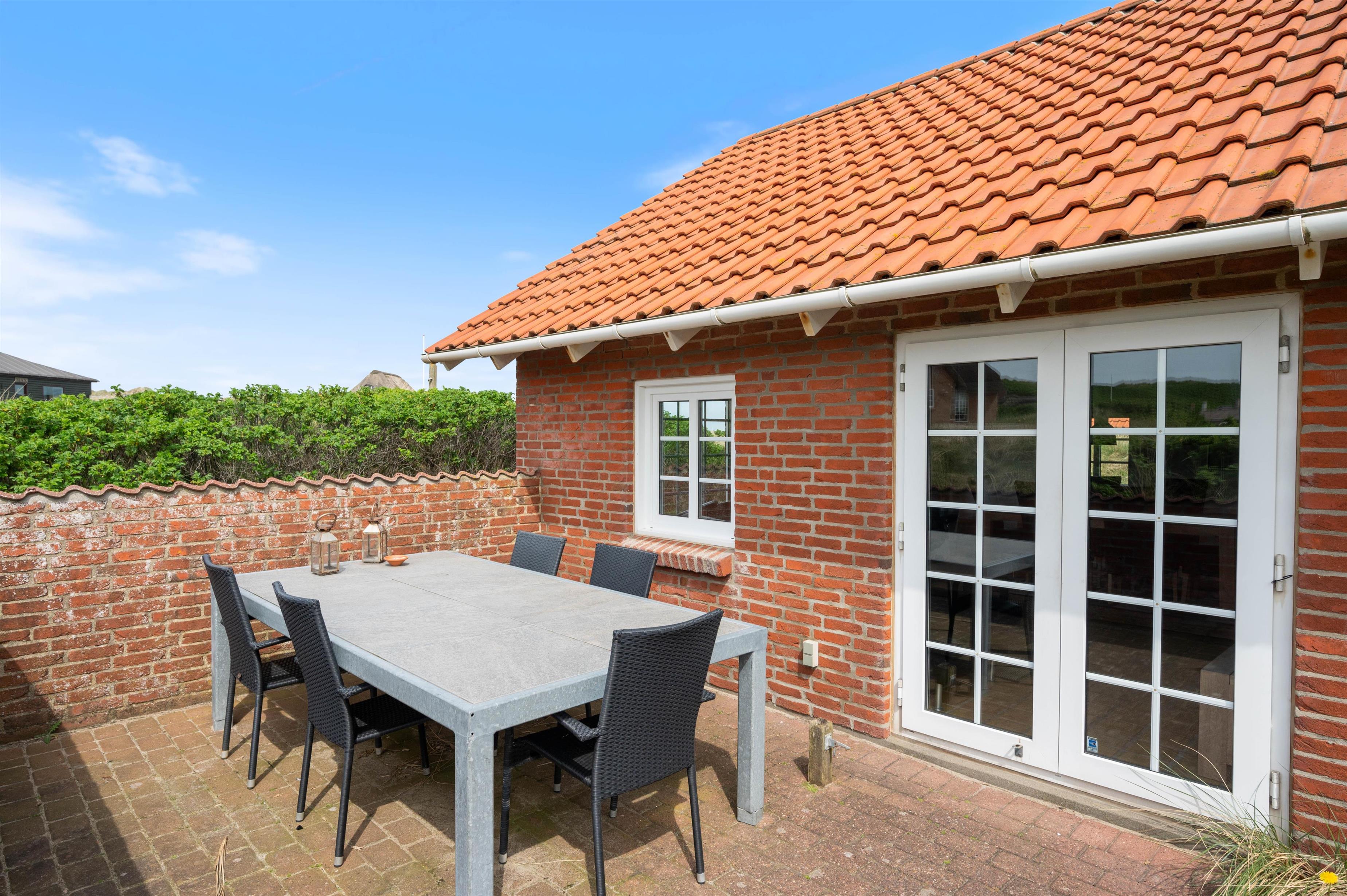 Derudover har sommerhuset en dejlig lukket terrasse, som sikrer, at I kan lufte jeres hunde, uden at de går på opdagelse i nærområdet. På denne sydvendte terrasse kan I roligt læne jer tilbage på sommerhusets liggestole og nyde det gode vejr. Yderligere kan I hive grillen frem og tilberede et dejligt måltid, mens I nyder de naturskønne omgivelser.